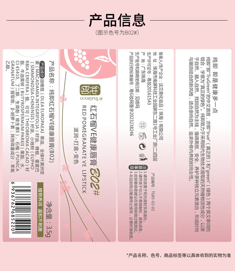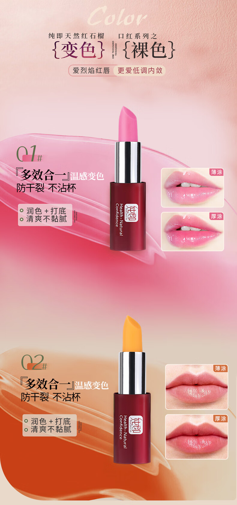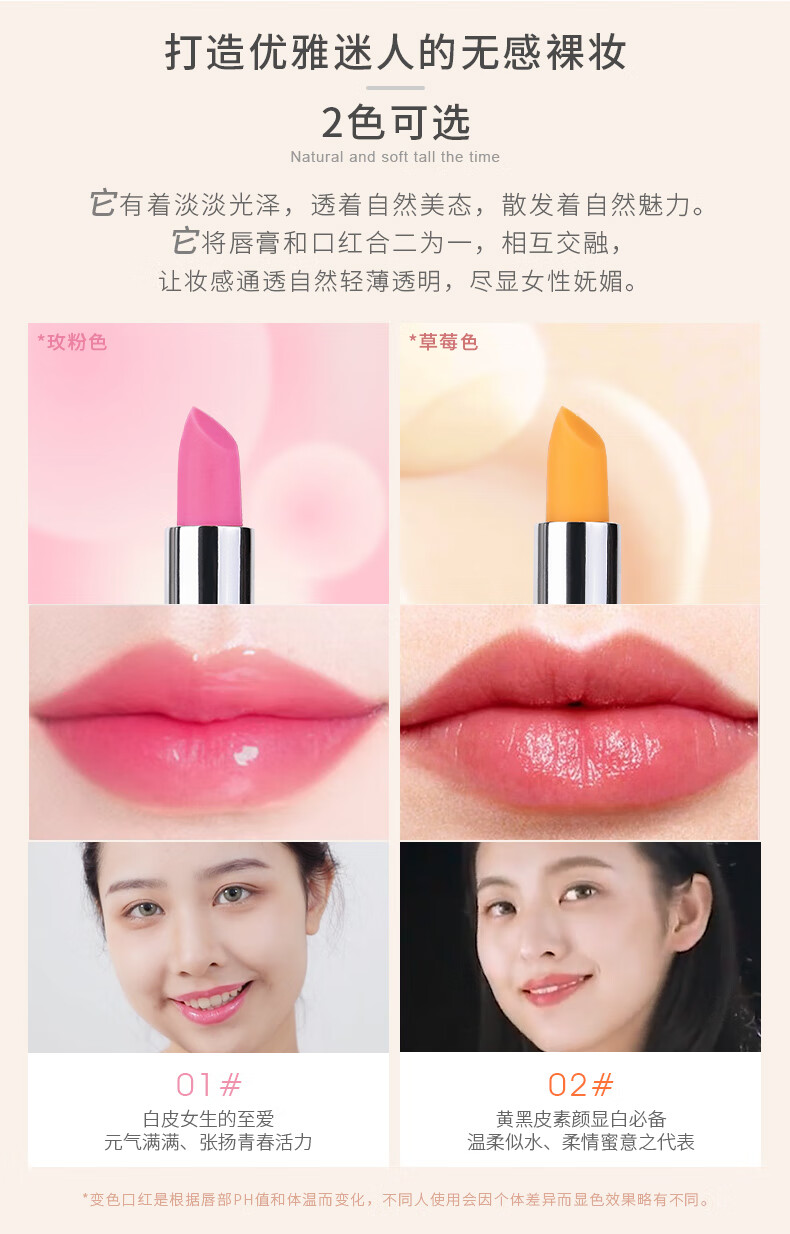纯即红石榴变色润唇膏女口红淡色素颜自然防水保湿滋润防干裂千人千色