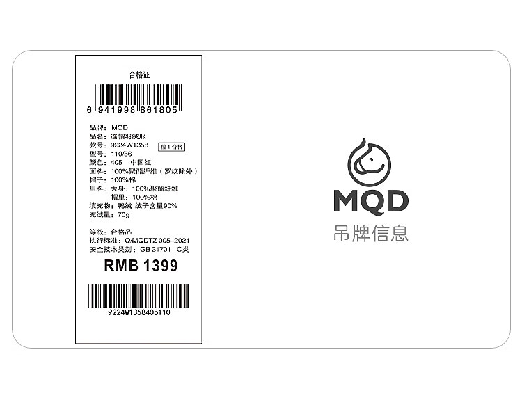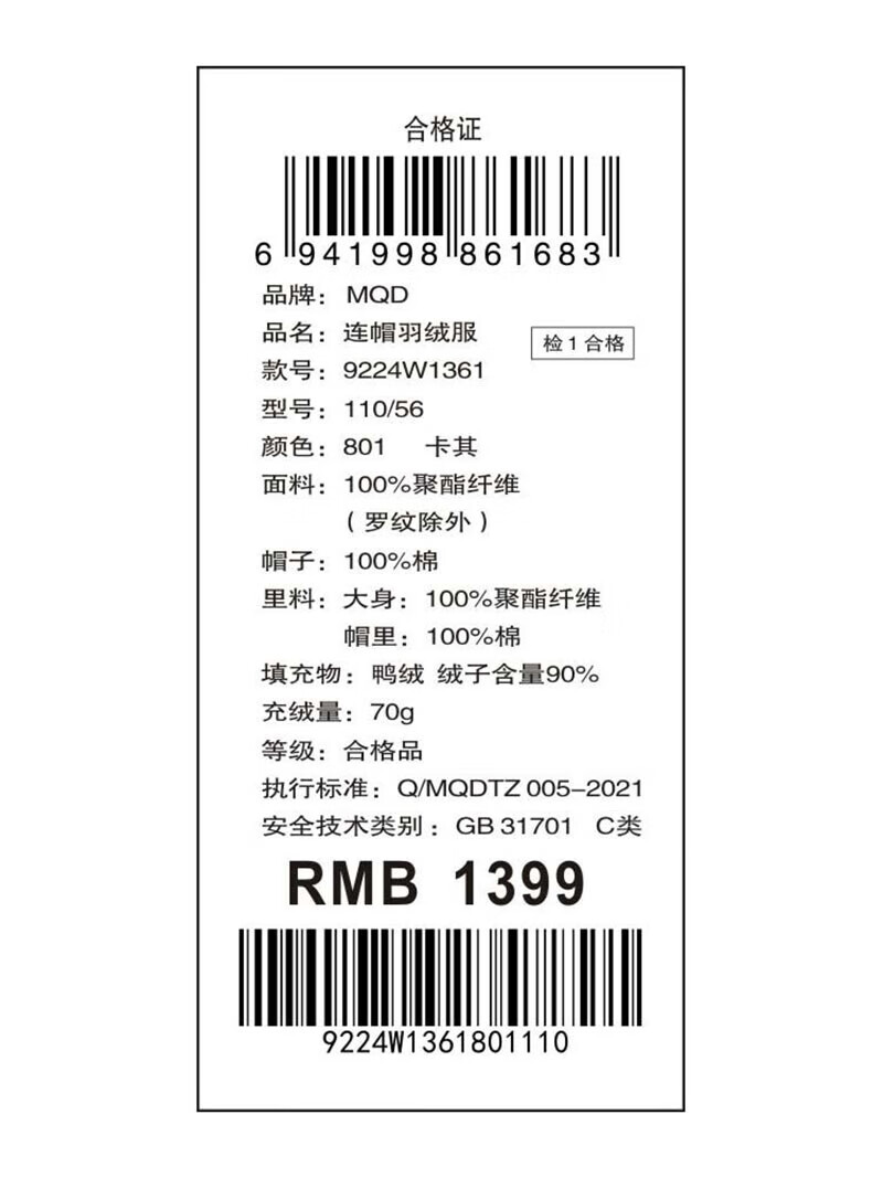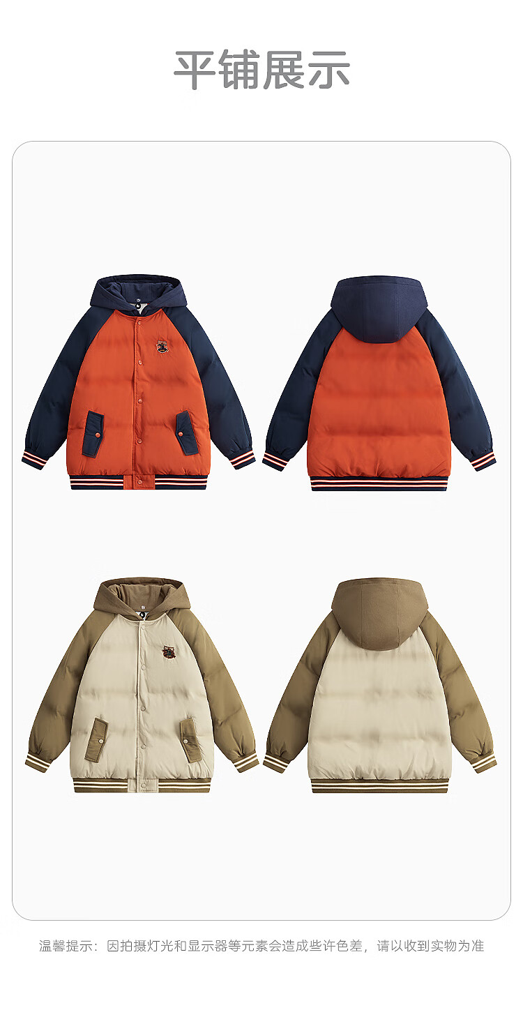 马骑顿MQD童装男大童年冬季潮酷休闲保暖连帽羽绒服 卡其色 130
