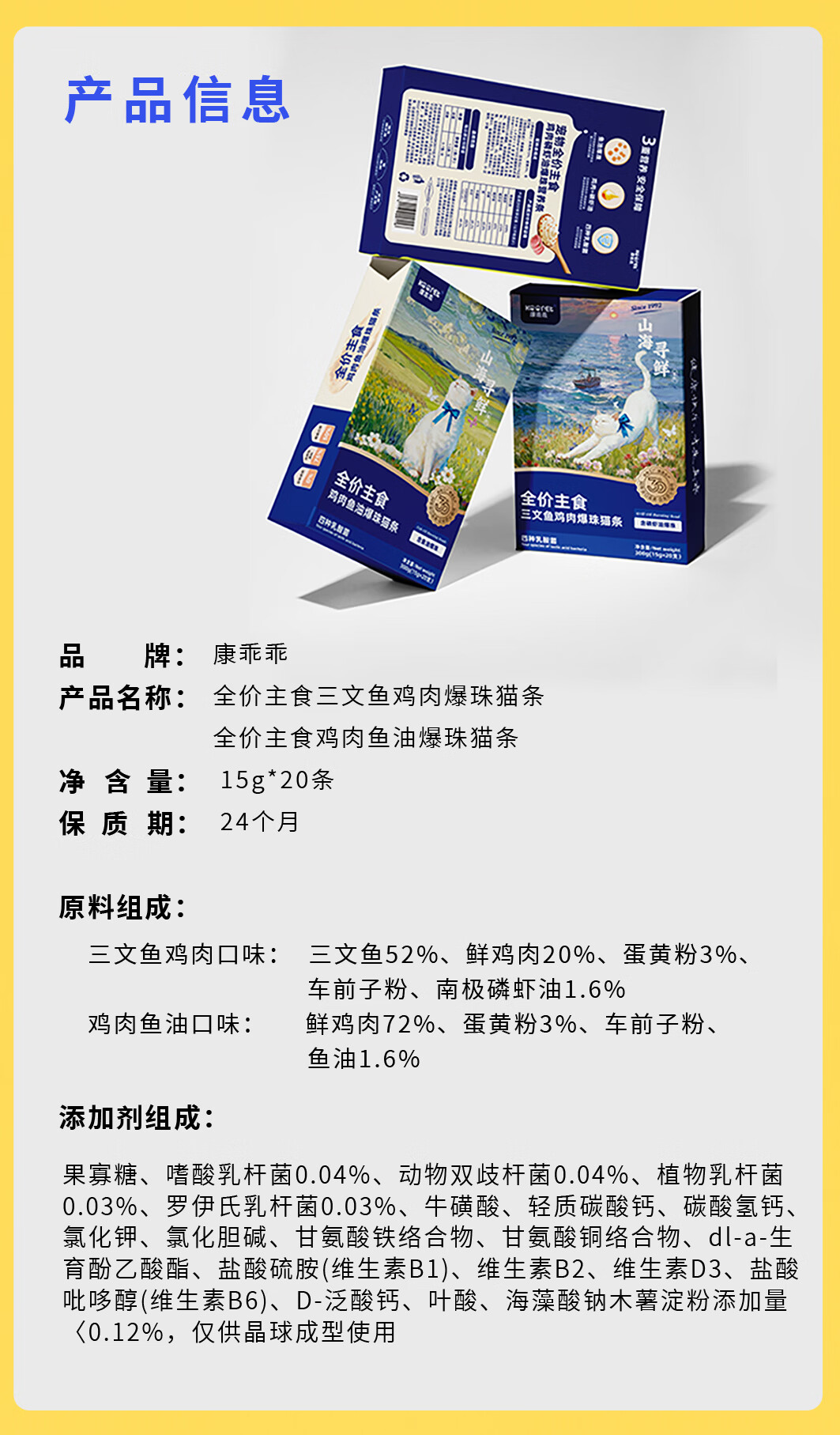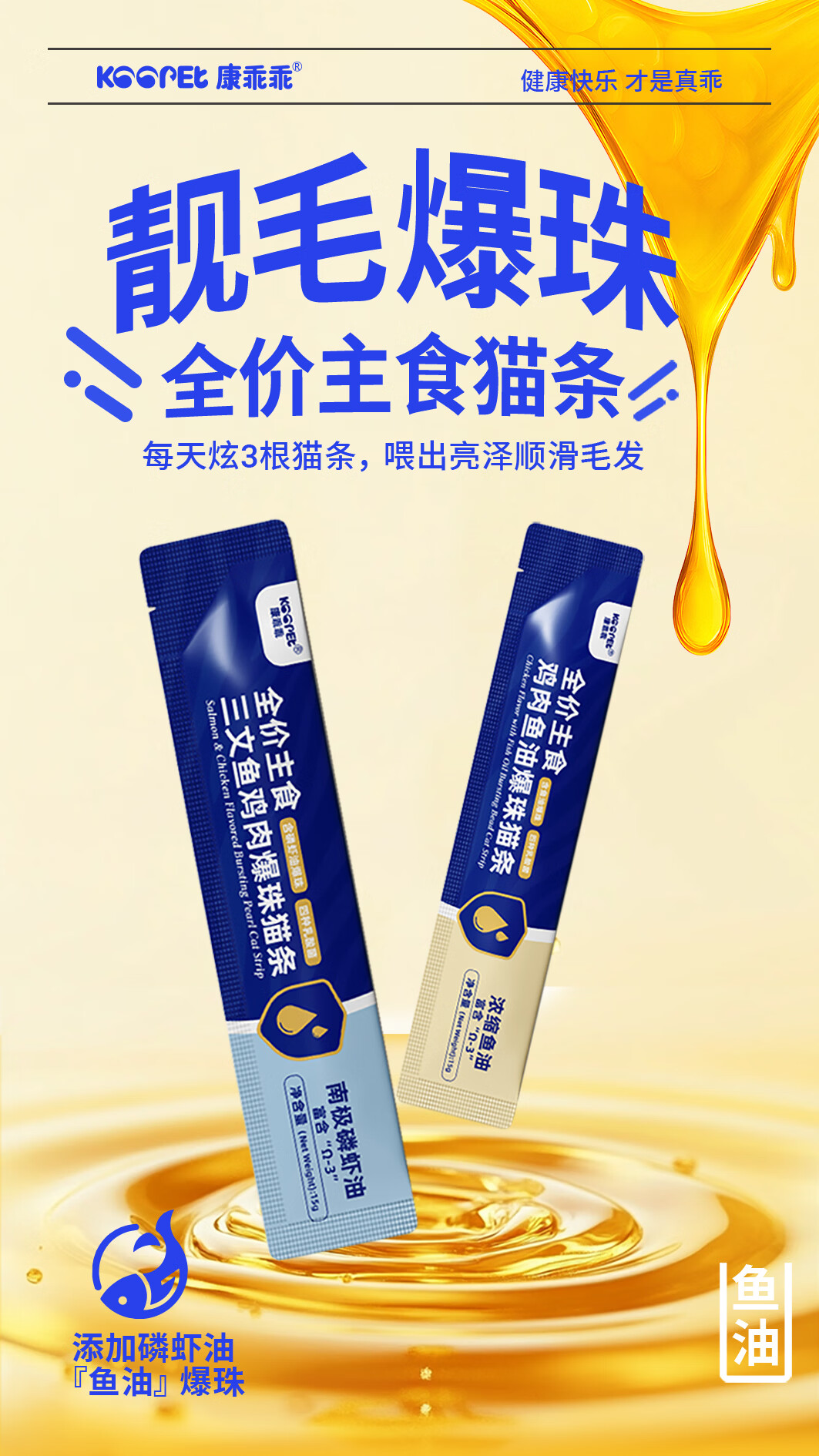 康乖乖鱼油爆珠全价主食猫条美毛磷虾油爆珠猫条成猫幼猫零食营养猫湿粮 山海寻鲜新品特惠尝鲜