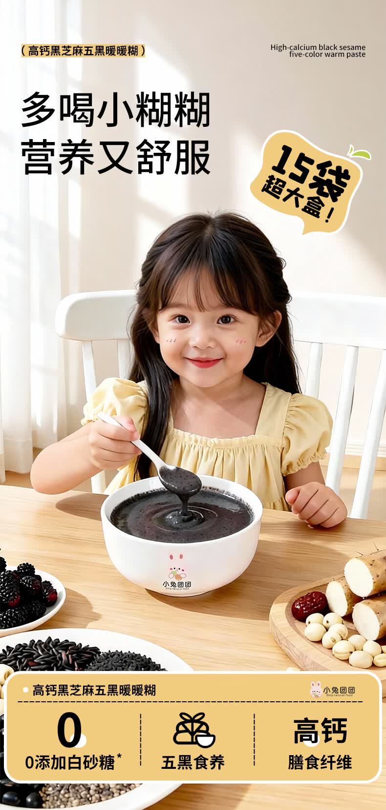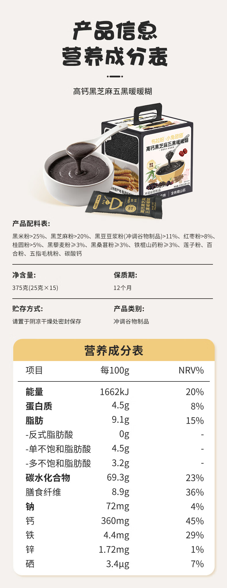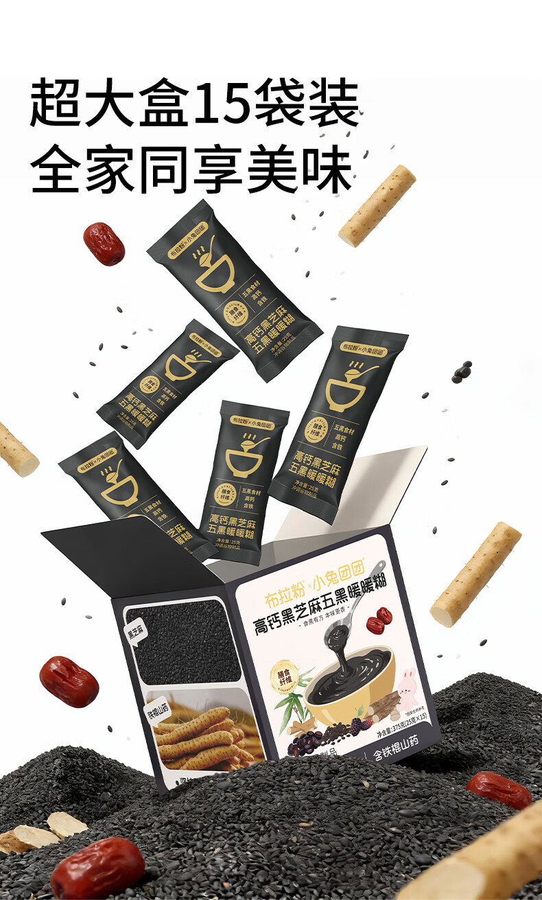 布拉粉小兔团团高钙五黑芝麻糊儿童营养早餐米糊米粉代餐冲饮375g