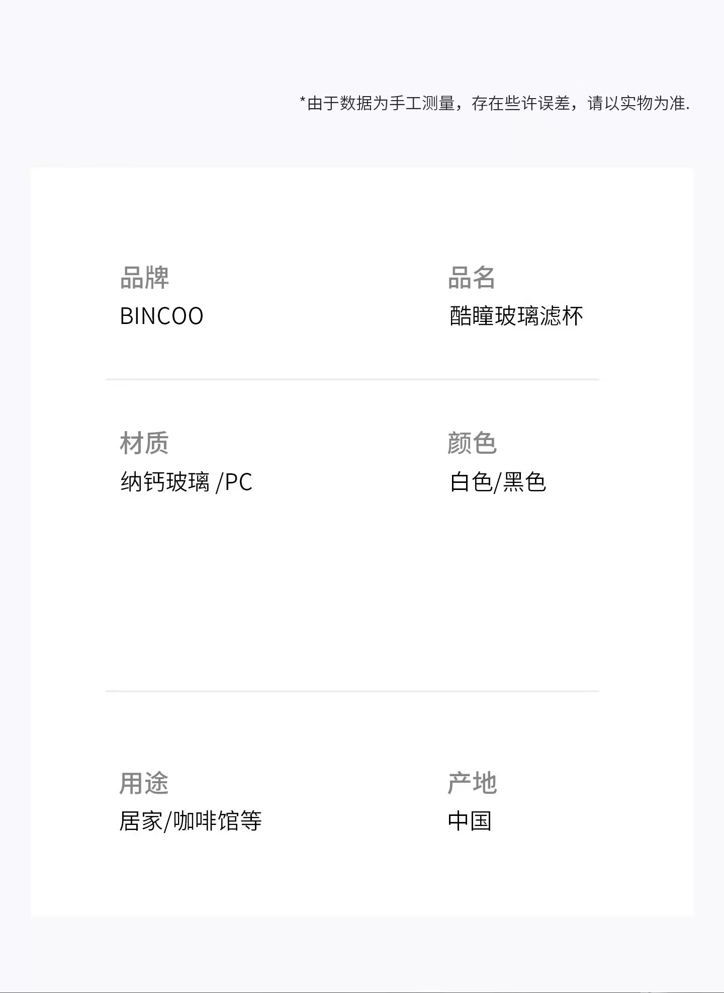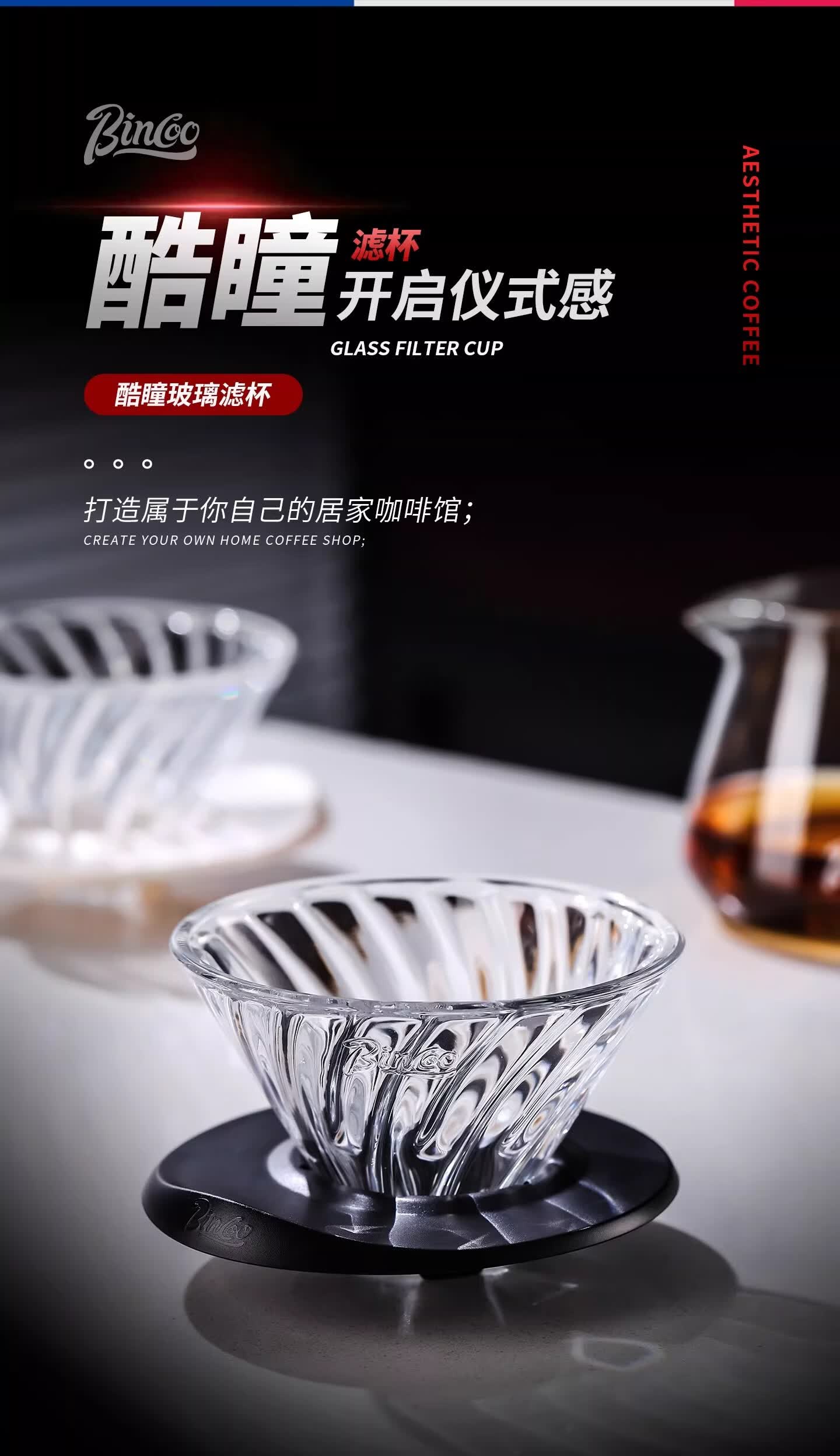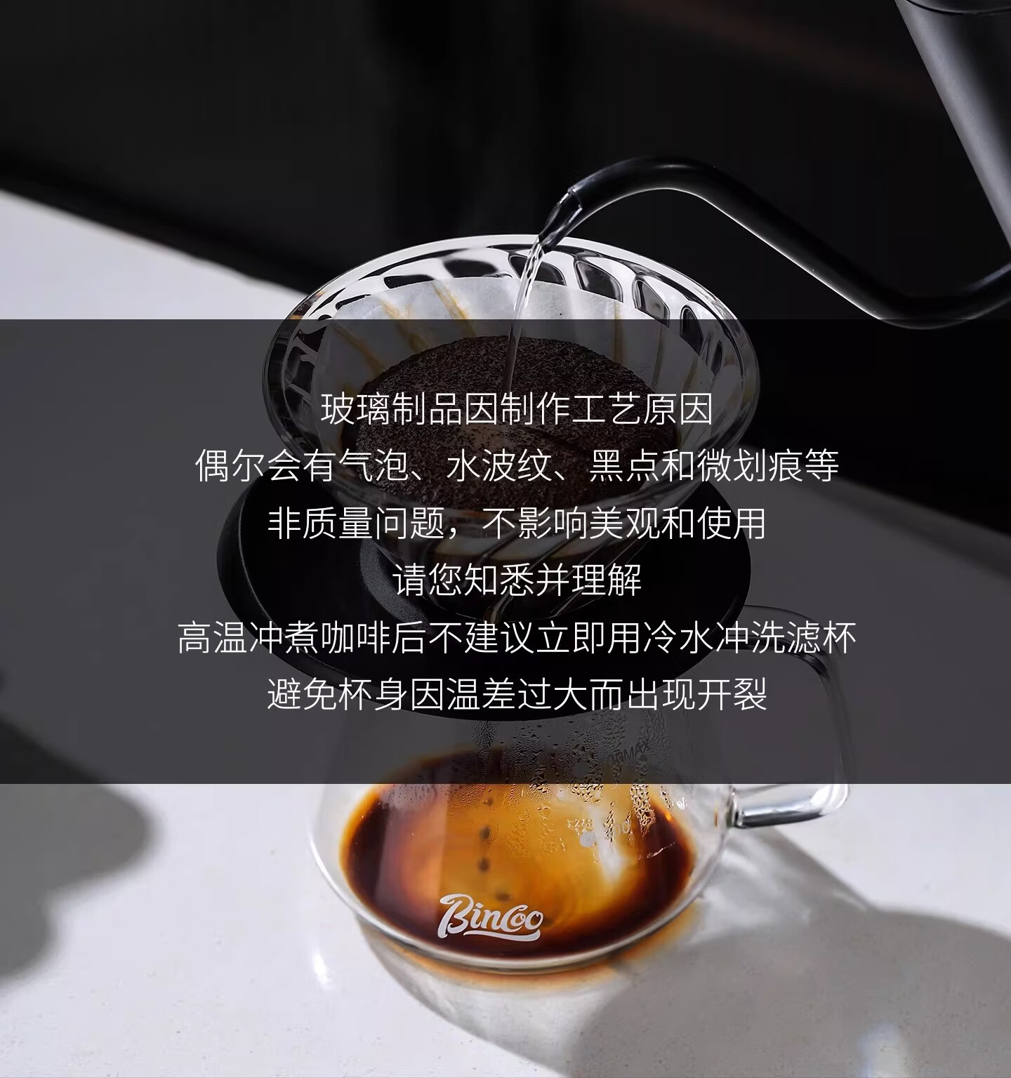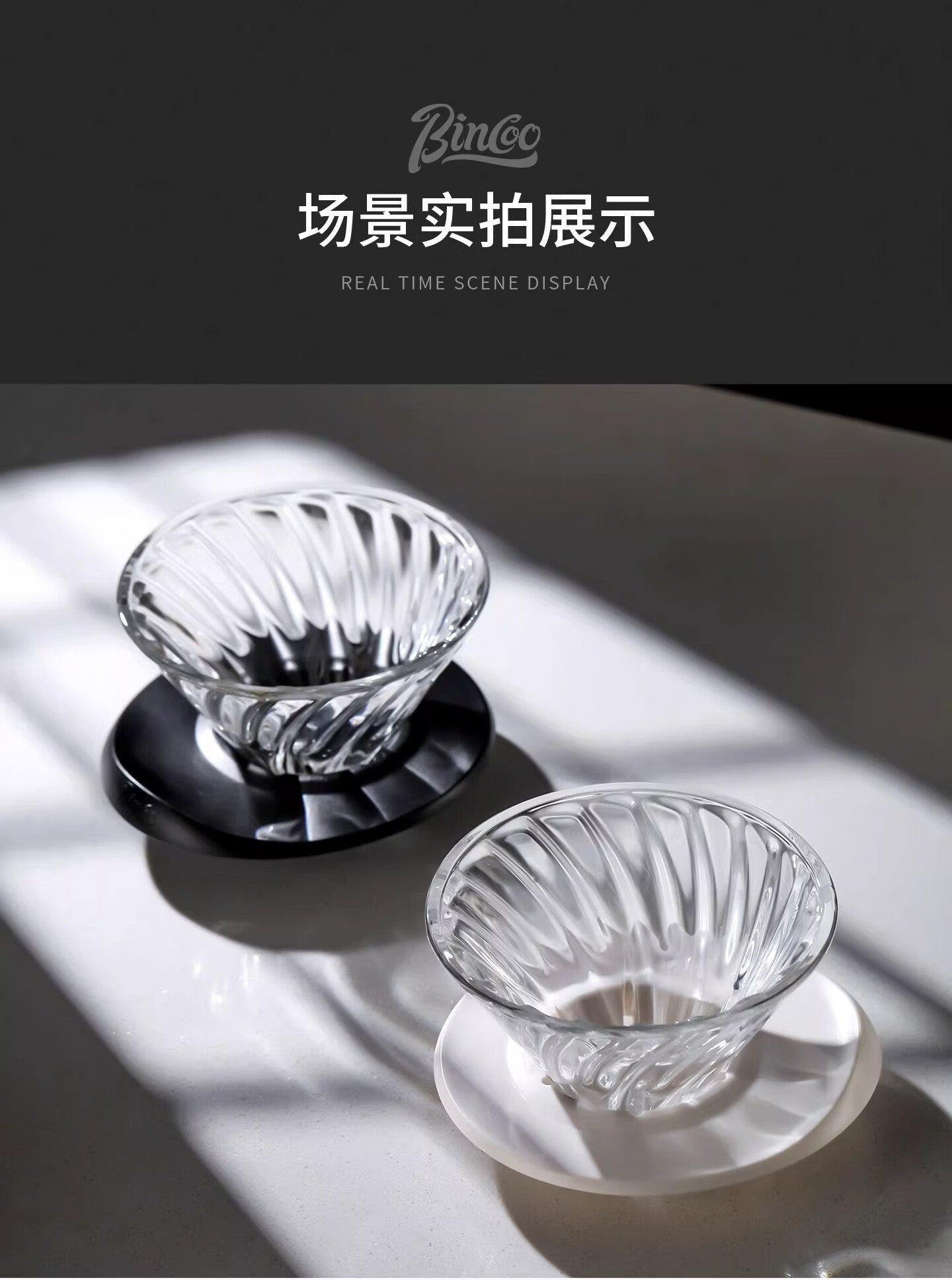 Bincoo酷瞳炫彩色手冲滤杯咖啡过滤器透明玻璃滴滤咖啡带V60小号 透明+白色杯托