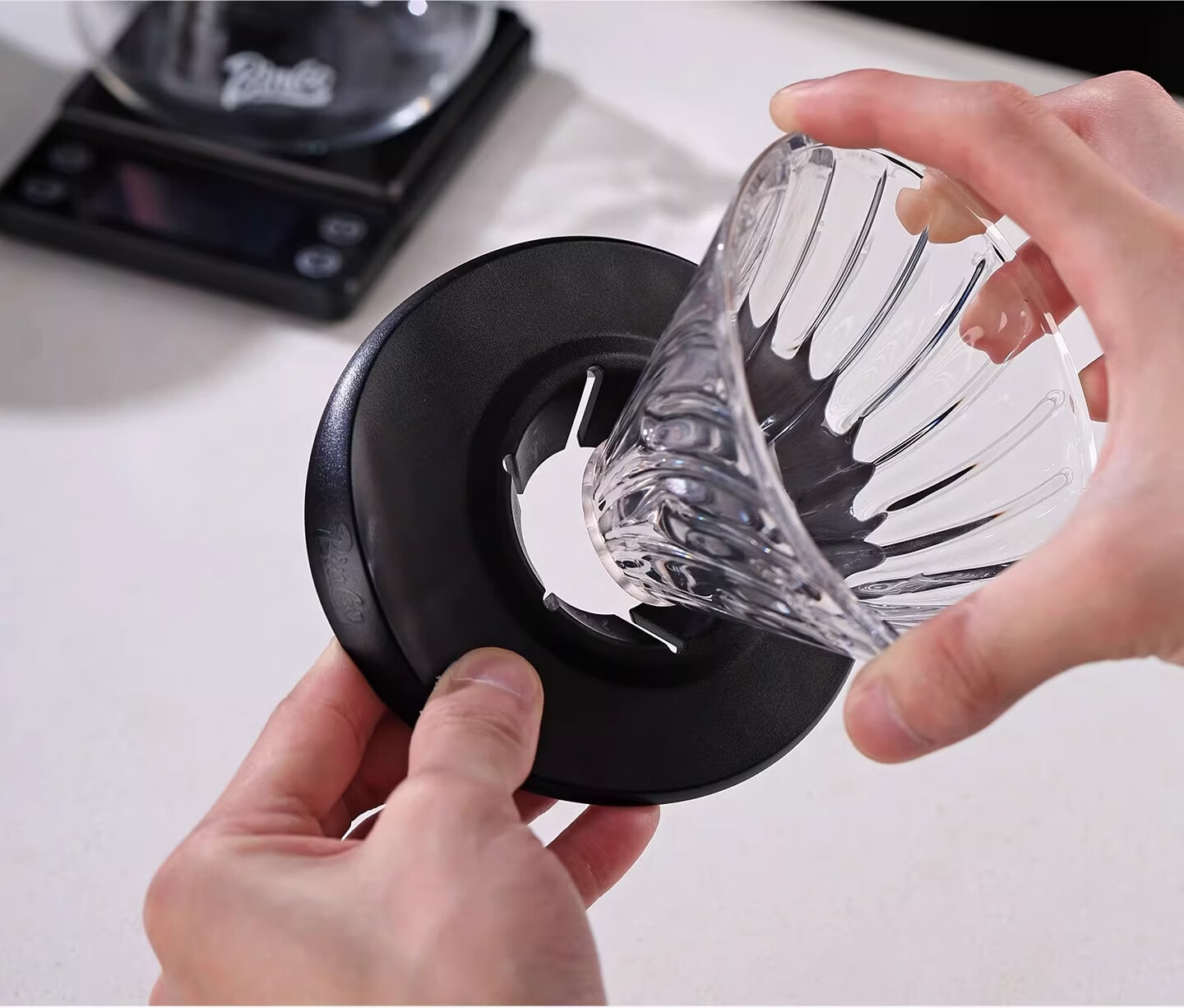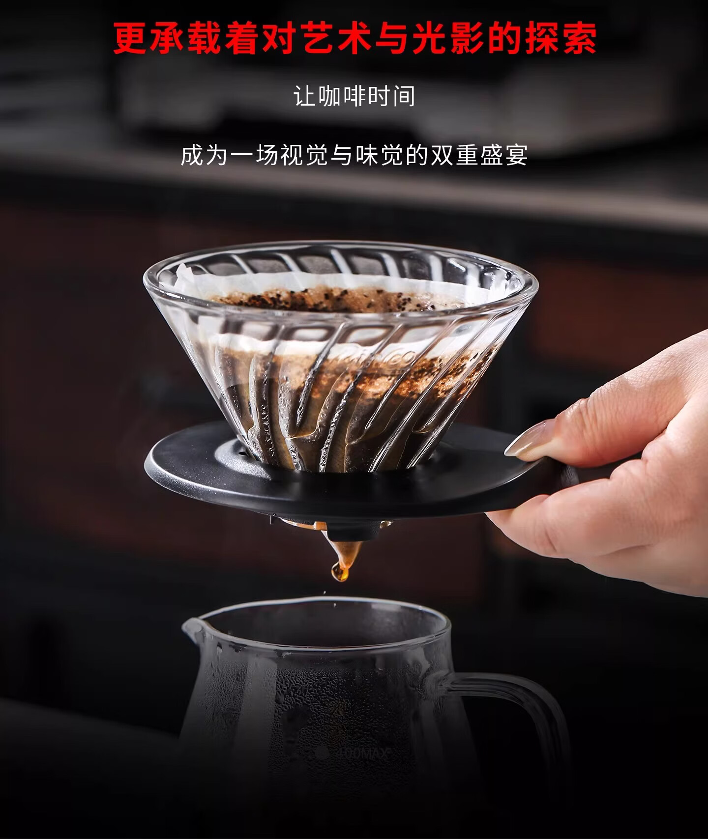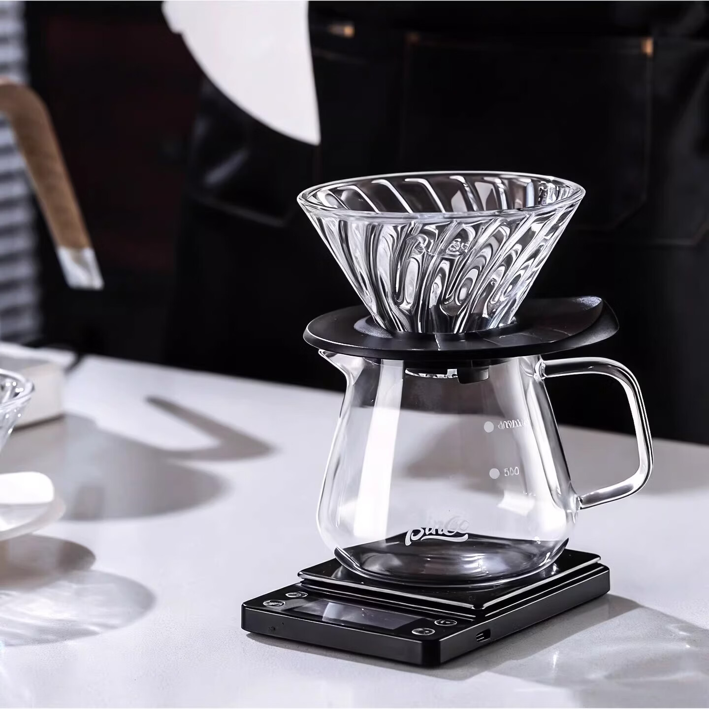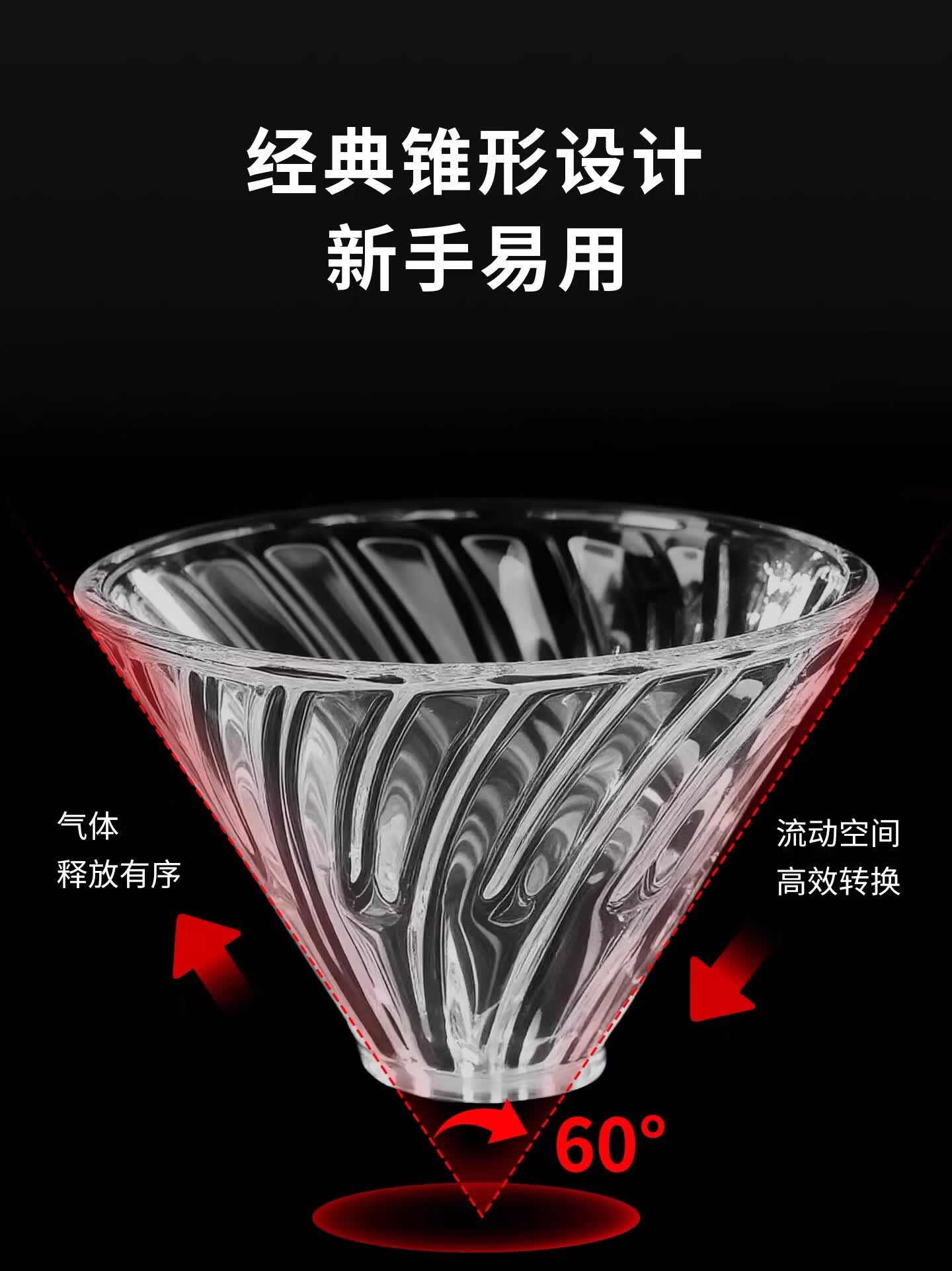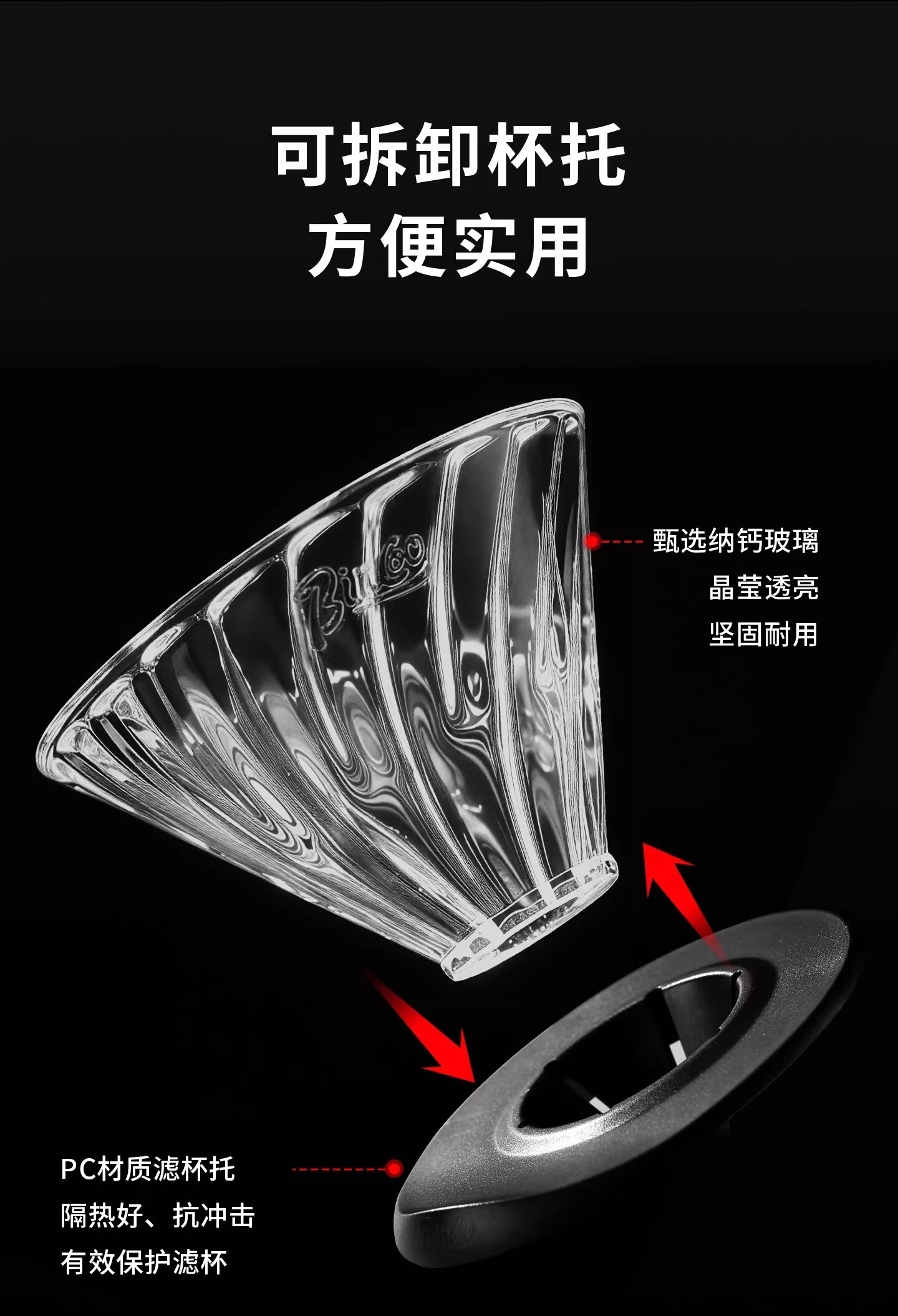 Bincoo酷瞳炫彩色手冲滤杯咖啡过滤器透明玻璃滴滤咖啡带V60小号 透明+白色杯托