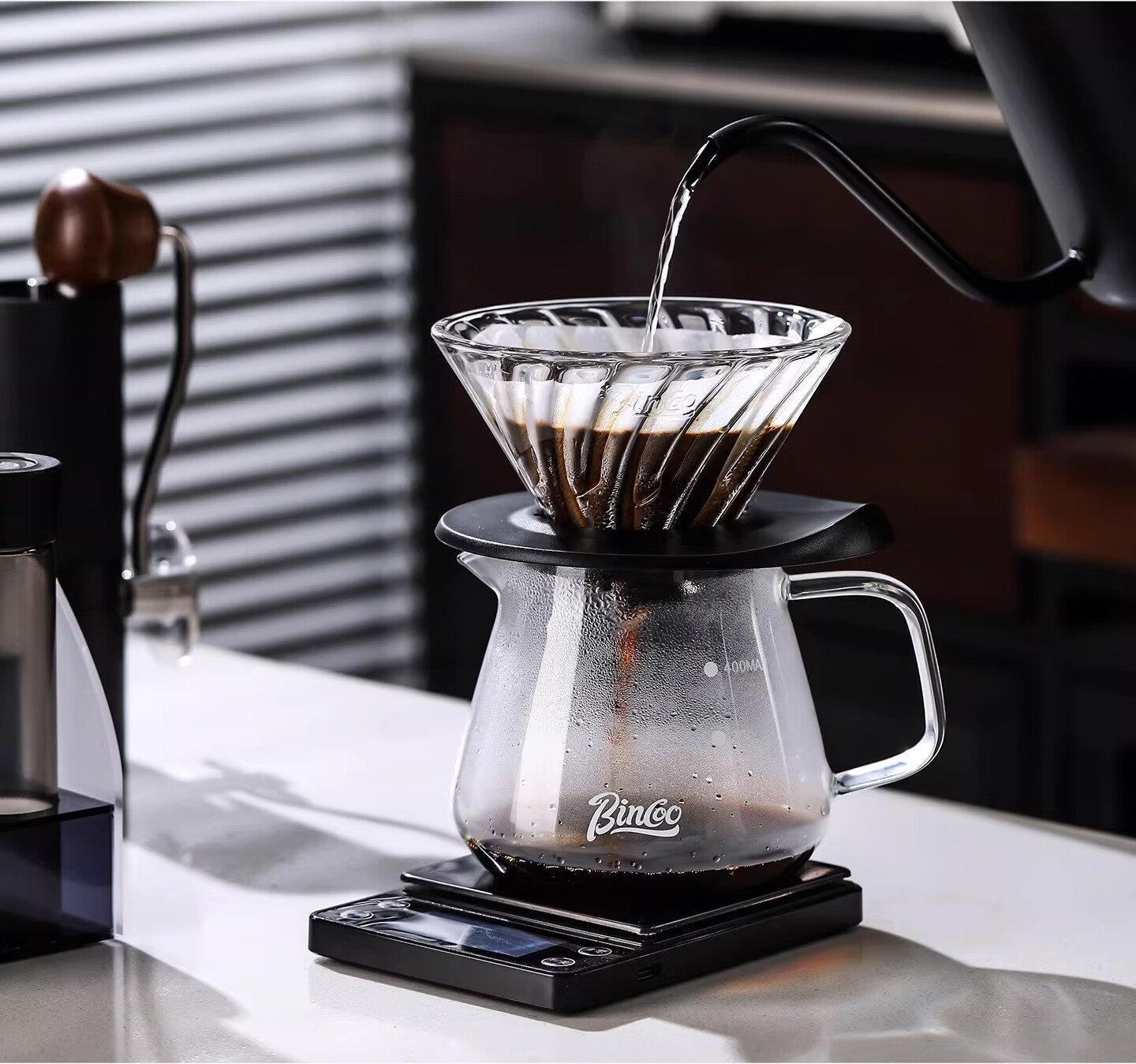 Bincoo手冲咖啡壶套装过滤分享壶陶瓷滤杯手磨咖啡磨豆机家用便携 渐变粉-两件套