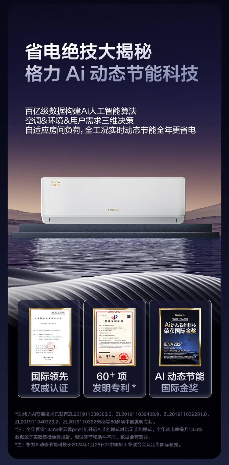格力空调 云锦pro/云锦三代 1.5匹 新一级能效 变频冷暖 纯铜管 节能省电 壁挂式空调挂机 家电补贴 1.5匹 云锦pro AI省电 国家补贴 凉之夏二代同款