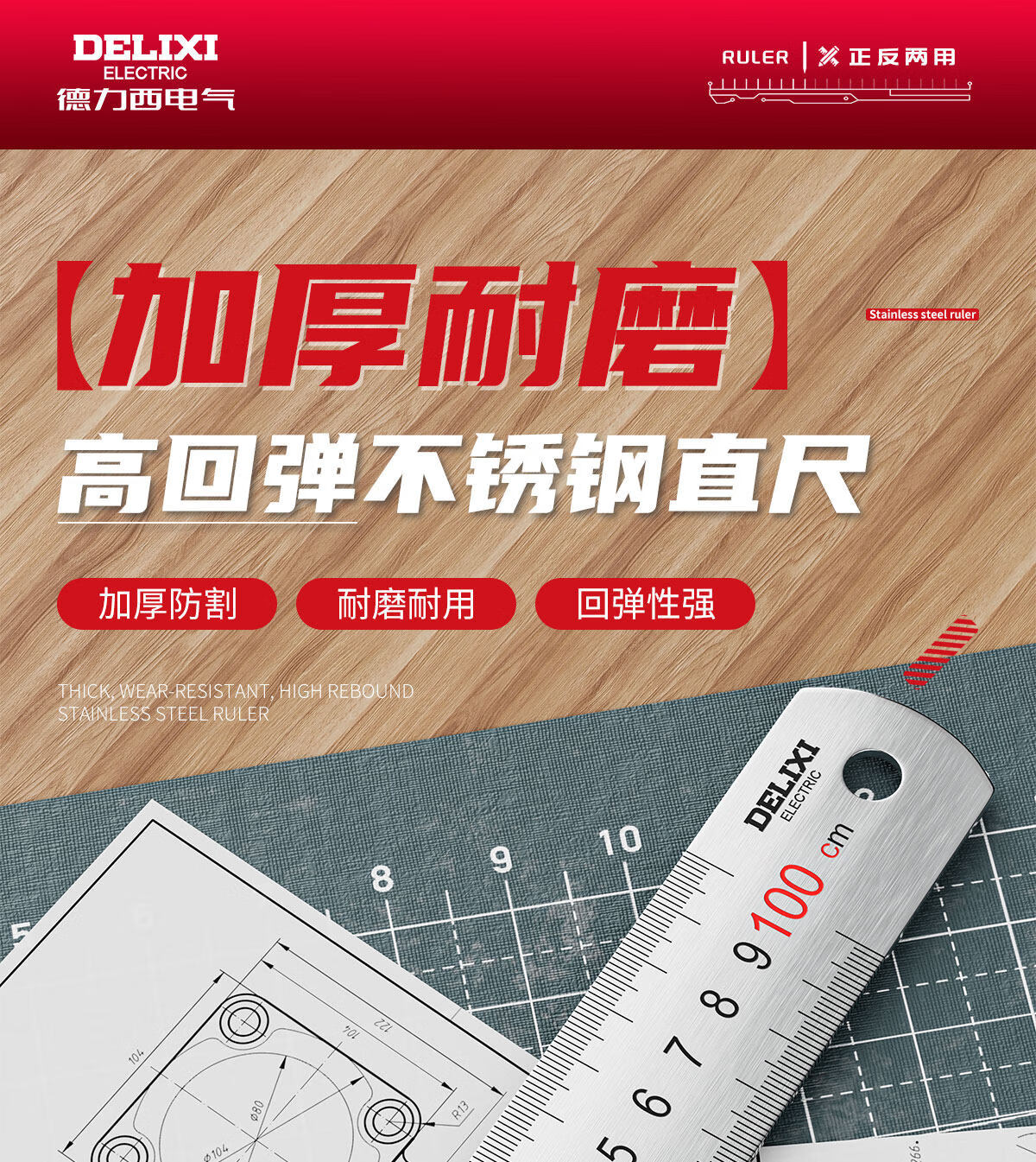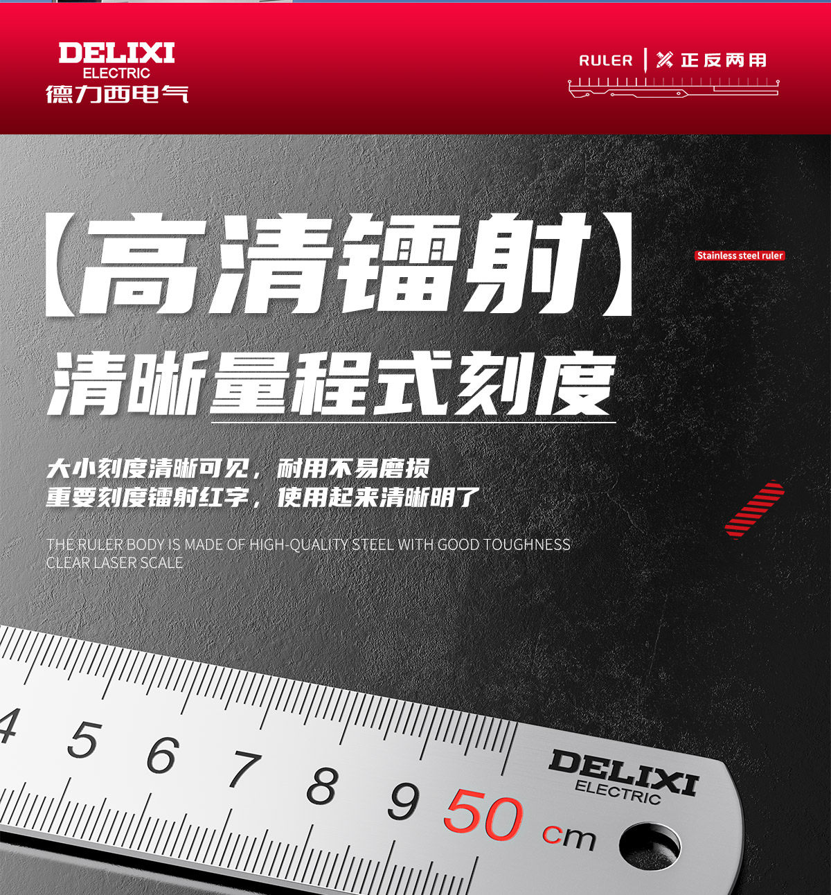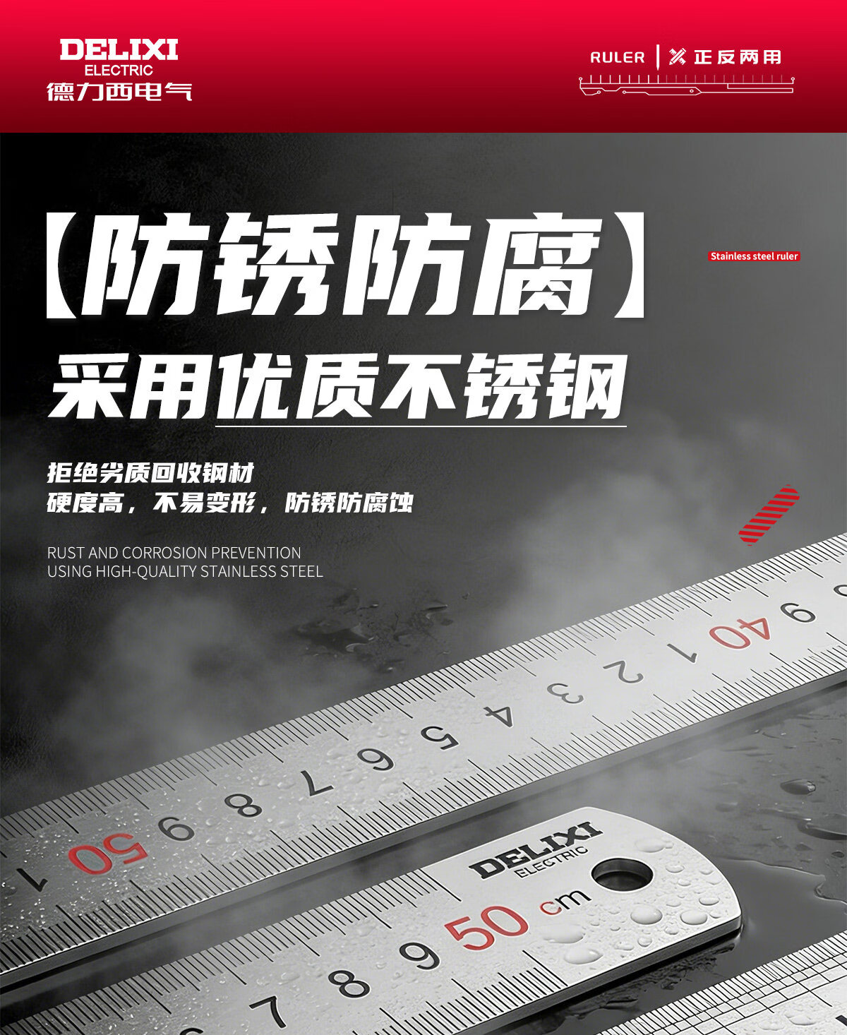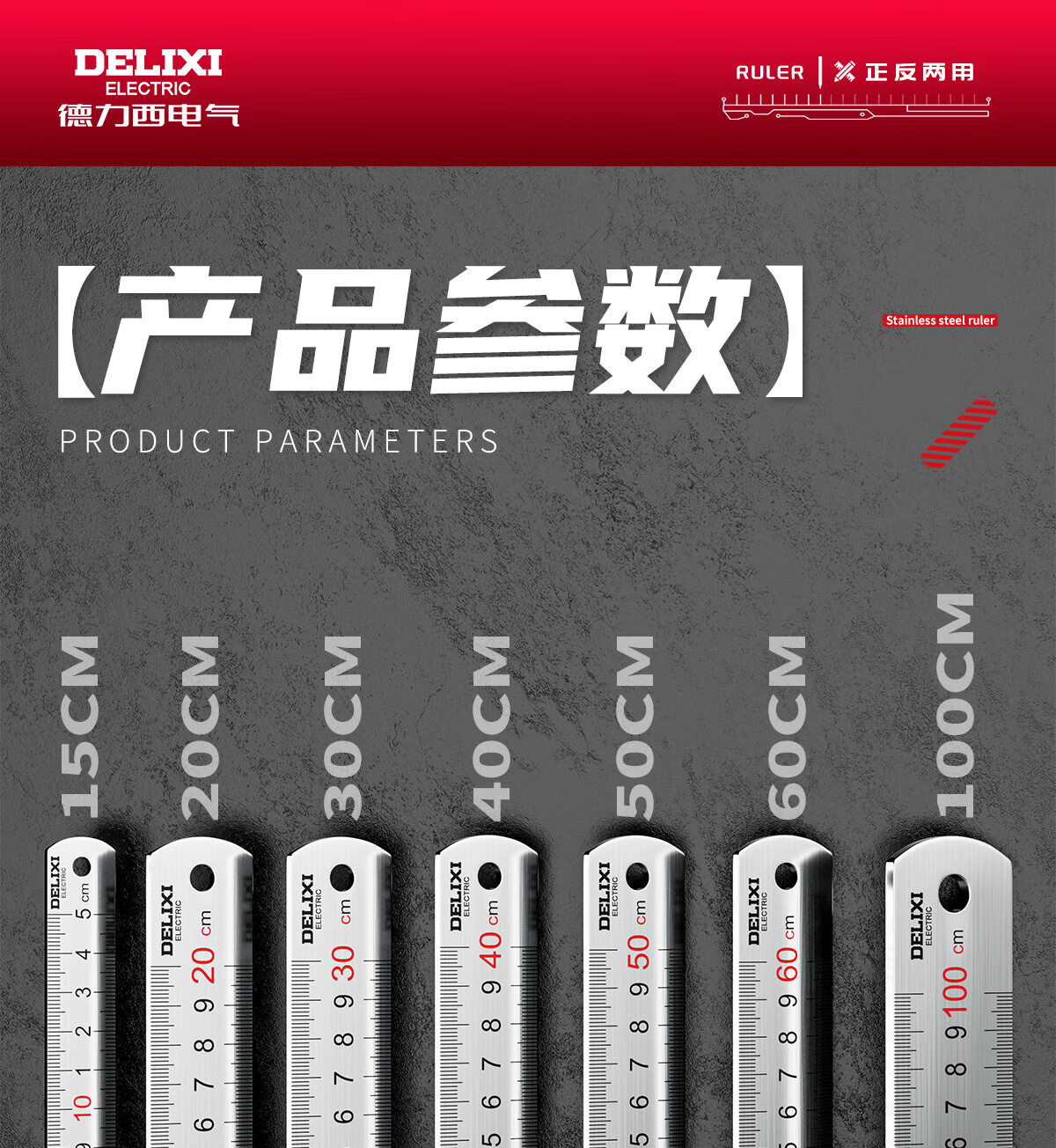 德力西电气钢尺加厚15cm20cm30cm50cm不锈钢直尺耐磨刻度尺钢板靠山防水防锈 30厘米-不锈钢直尺【加厚尺身/公英制刻度】 高精度不锈钢尺【2把装】