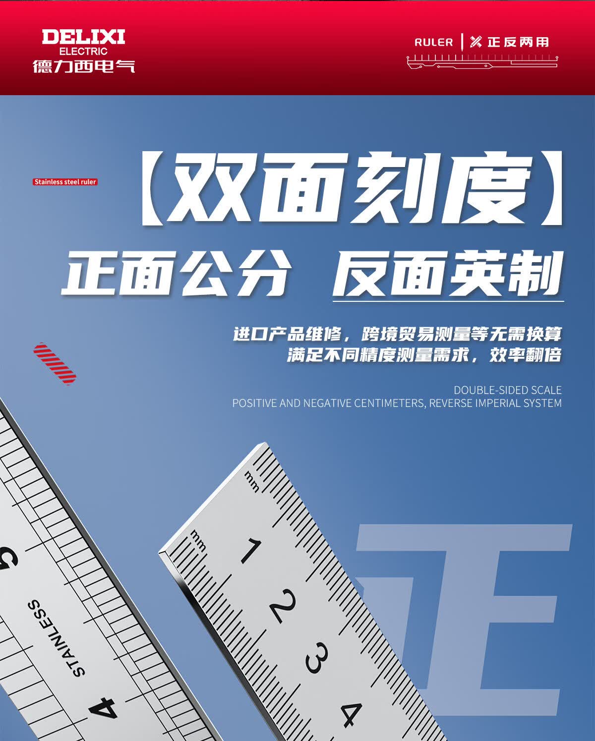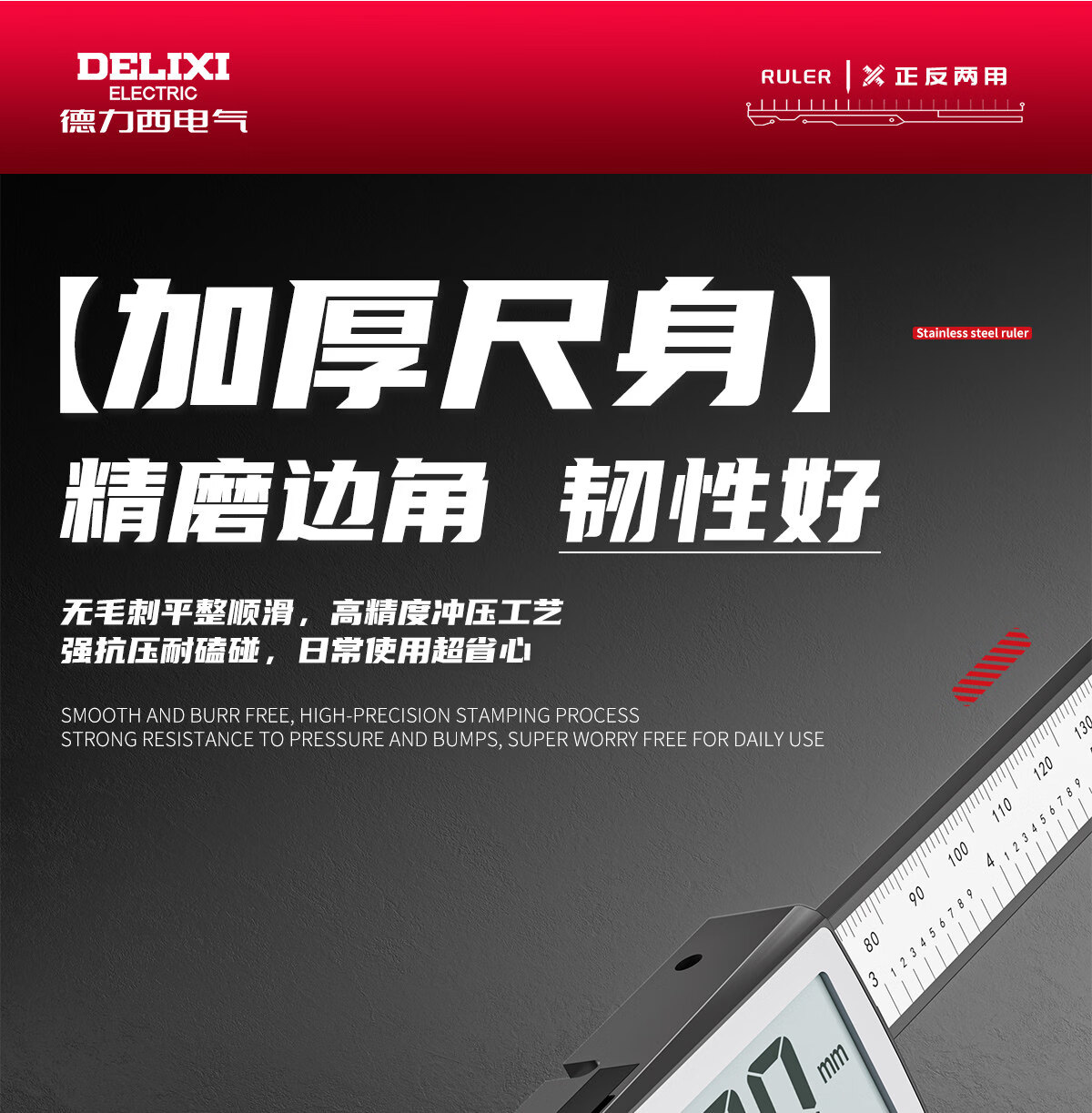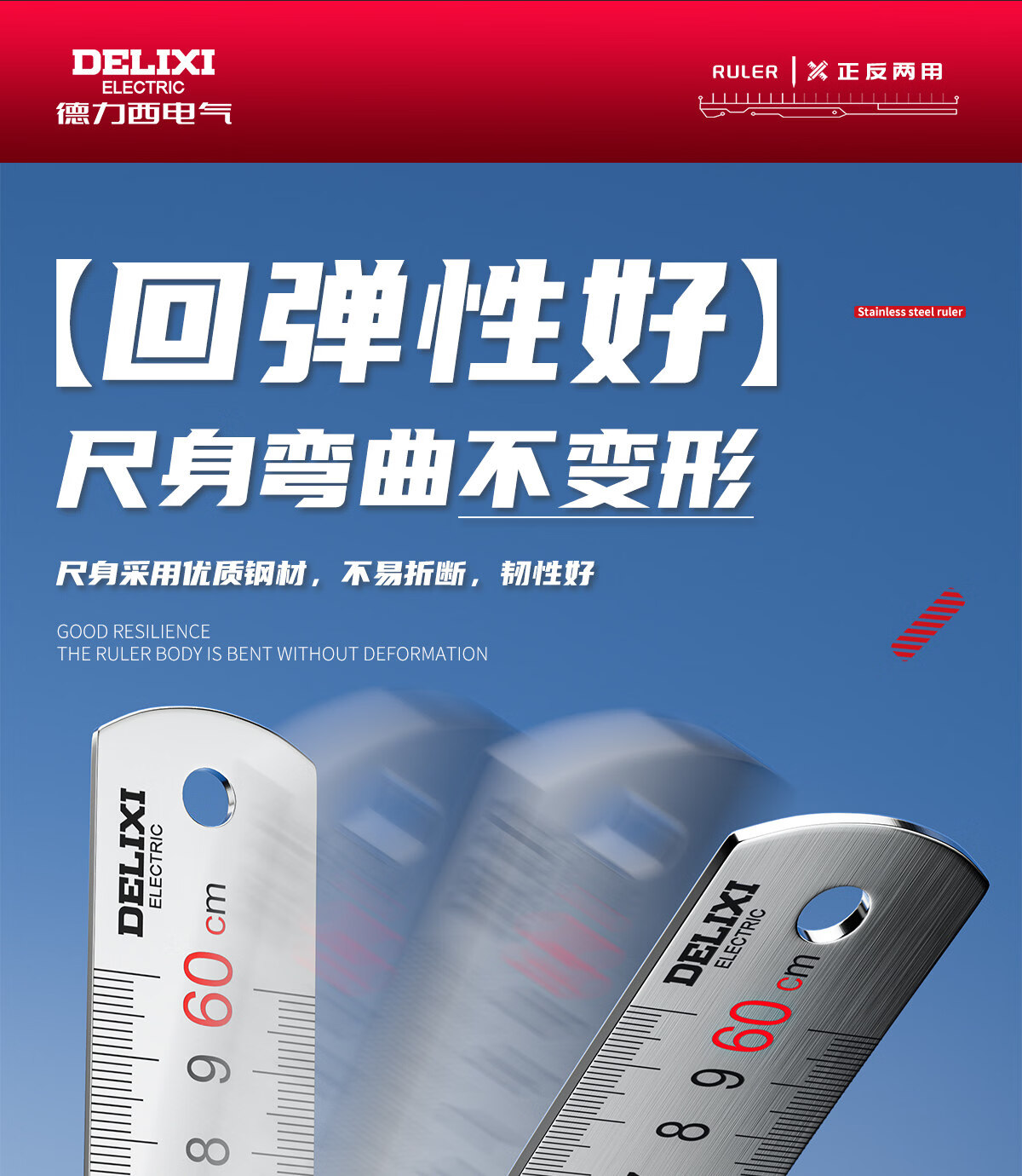 德力西电气钢尺加厚15cm20cm30cm50cm不锈钢直尺耐磨刻度尺钢板靠山防水防锈 30厘米-不锈钢直尺【加厚尺身/公英制刻度】 高精度不锈钢尺【2把装】