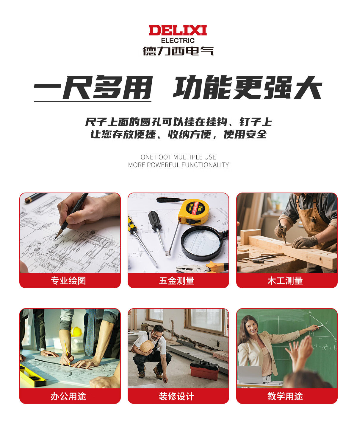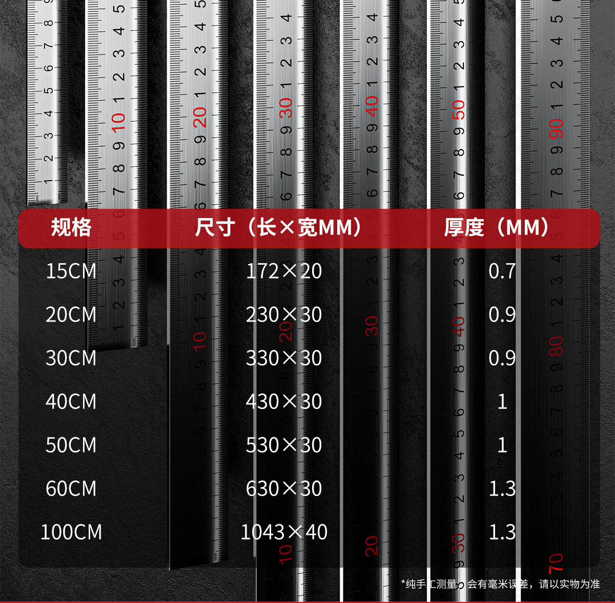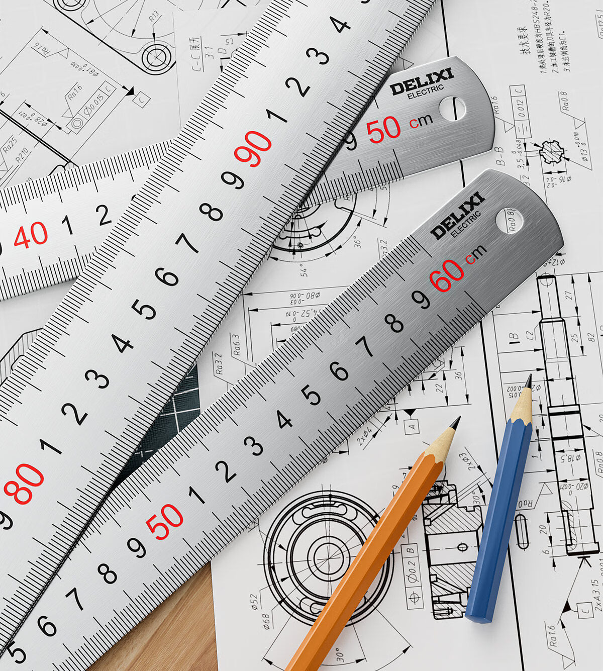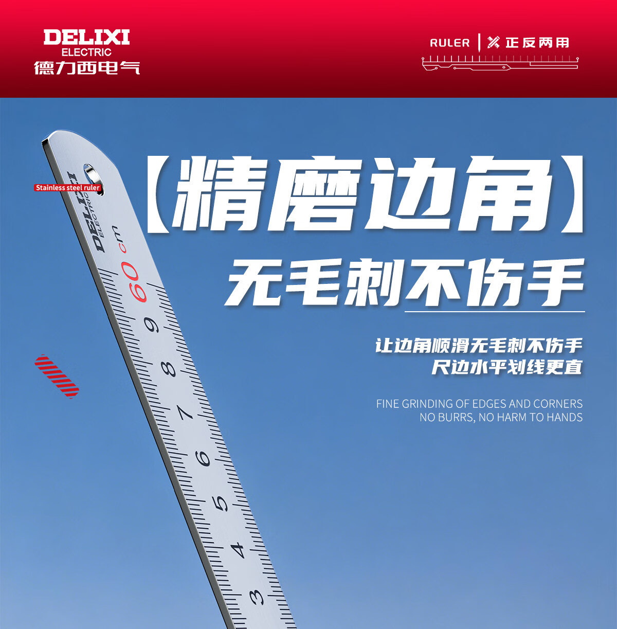 德力西电气钢尺加厚15cm20cm30cm50cm不锈钢直尺耐磨刻度尺钢板靠山防水防锈 30厘米-不锈钢直尺【加厚尺身/公英制刻度】 高精度不锈钢尺【2把装】