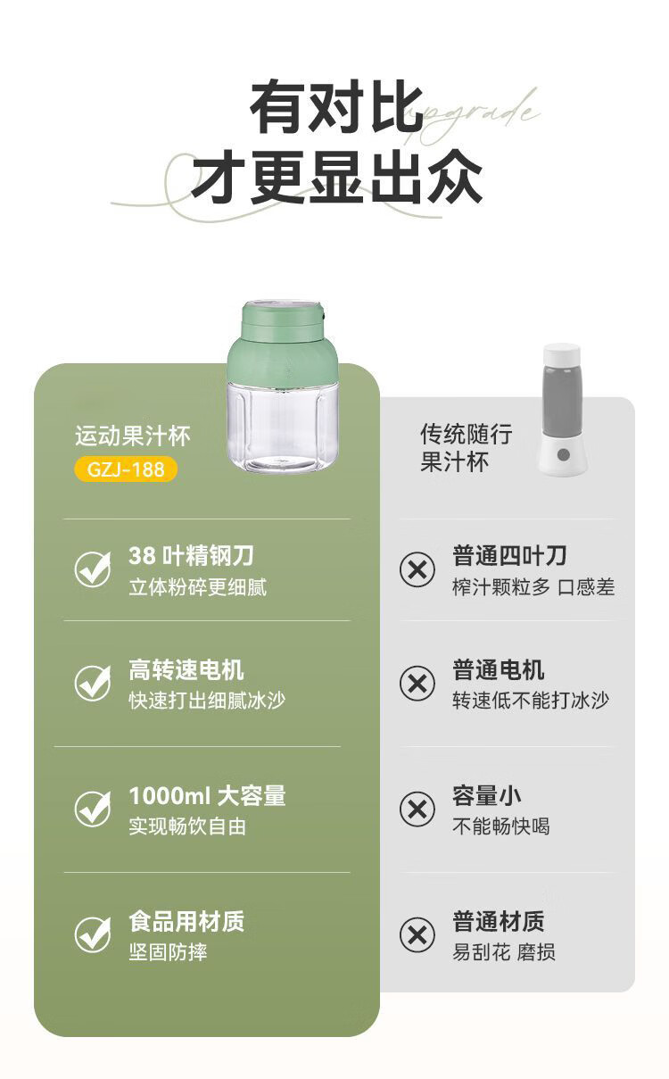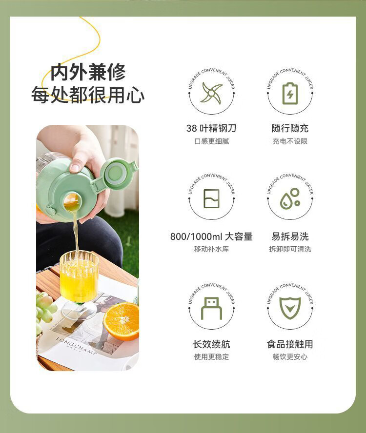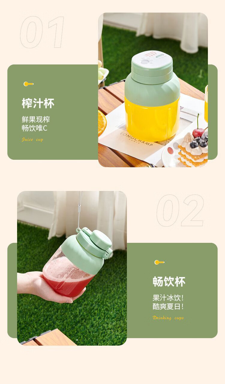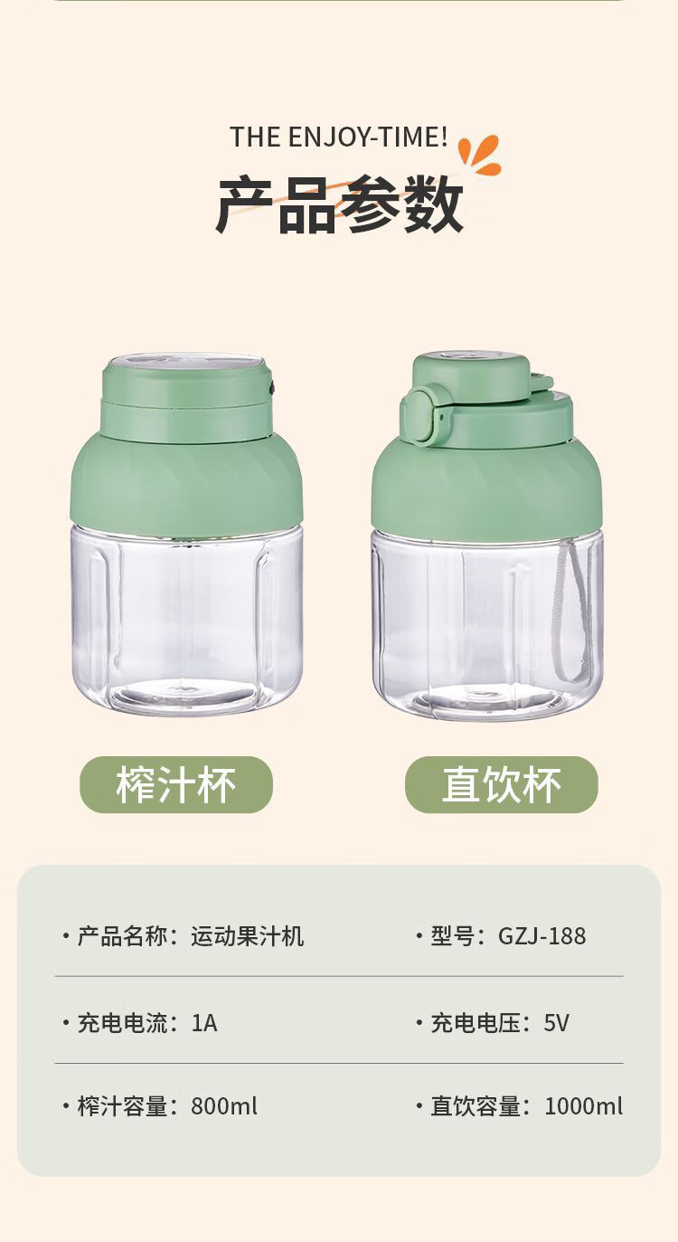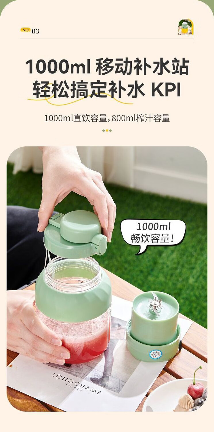 SUPUSR苏泊便携榨汁机家用小型吨吨桶多功能2026年新款水果杯按键随身迷你冰沙搅拌杯果汁旅行健身德国 1000ML一杯双盖【可碎冰+镇店爆款】 德国进口