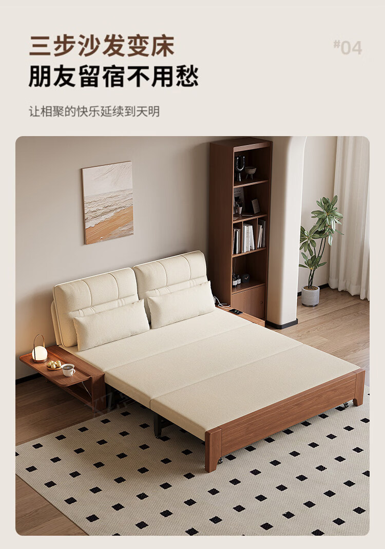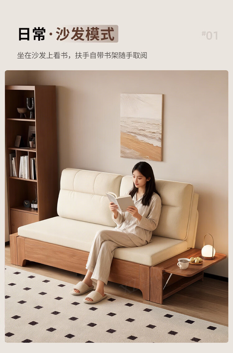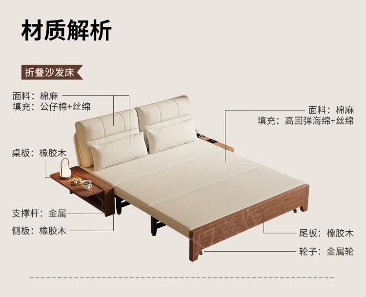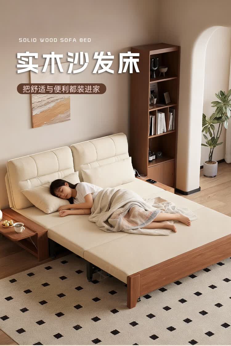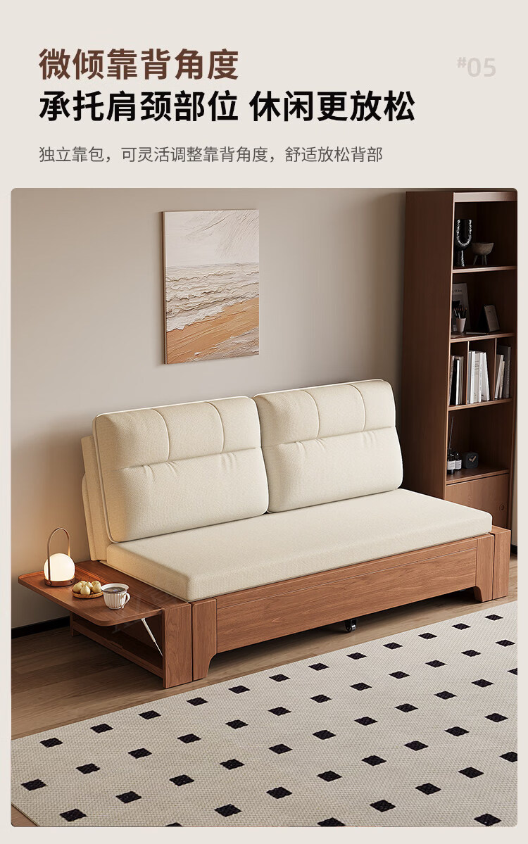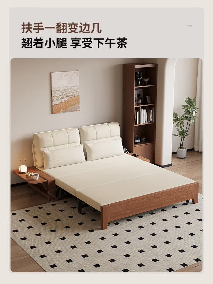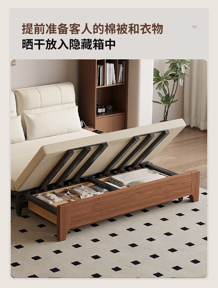 沙发床简约现代多功能两用可折叠小户型客厅家用新款折叠沙发 带储物箱1.5米(乳胶款_米白)原木色