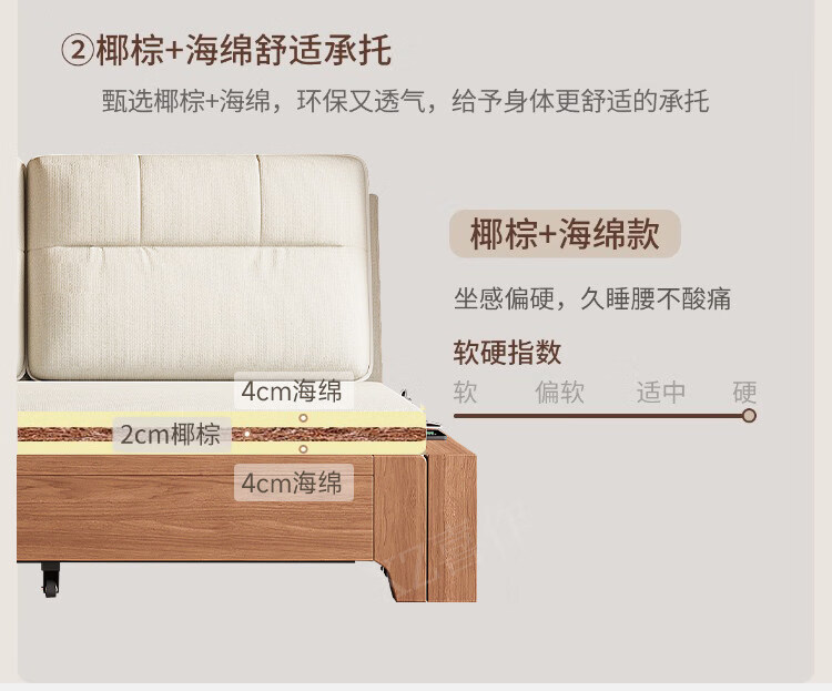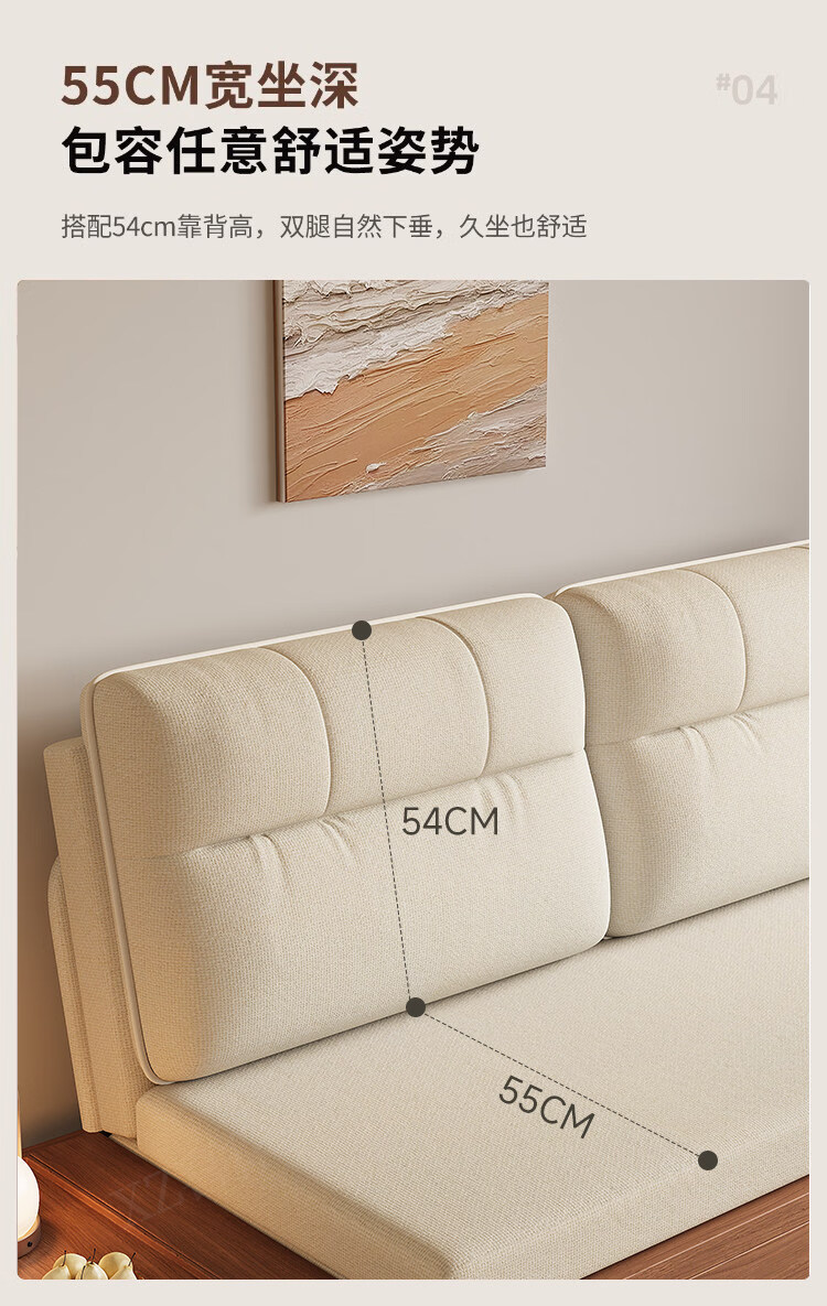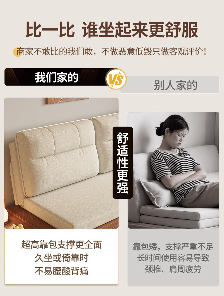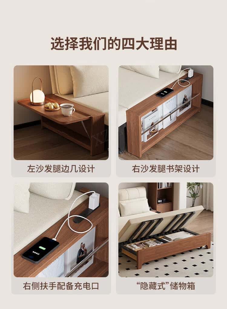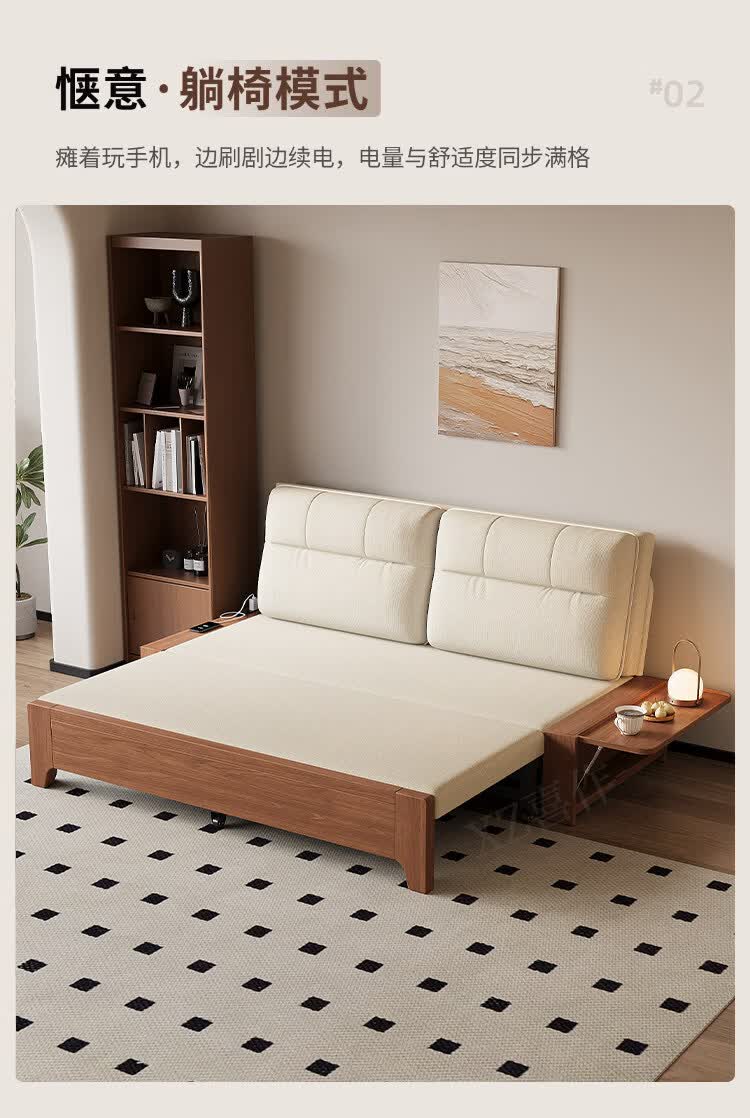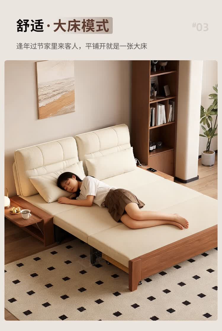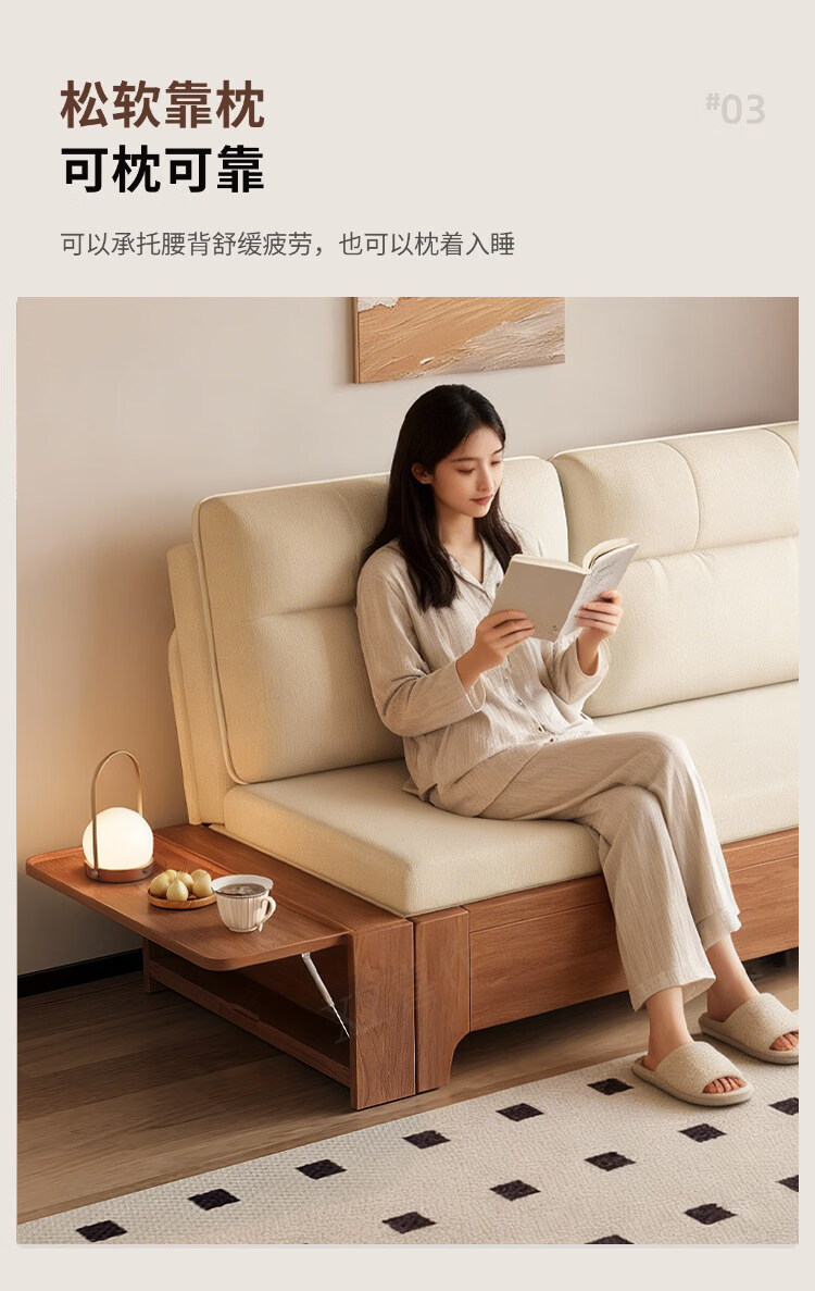 沙发床简约现代多功能两用可折叠小户型客厅家用新款折叠沙发 带储物箱1.5米(乳胶款_米白)原木色
