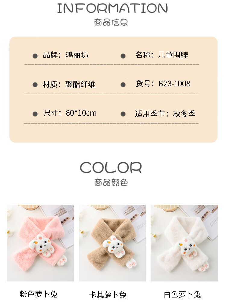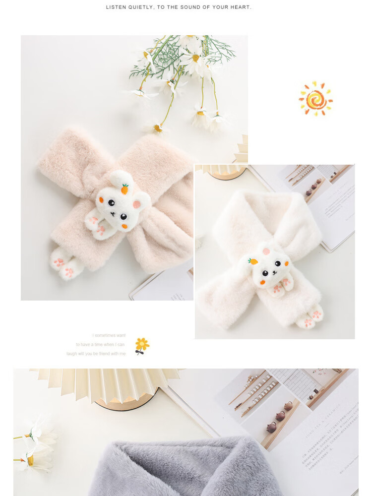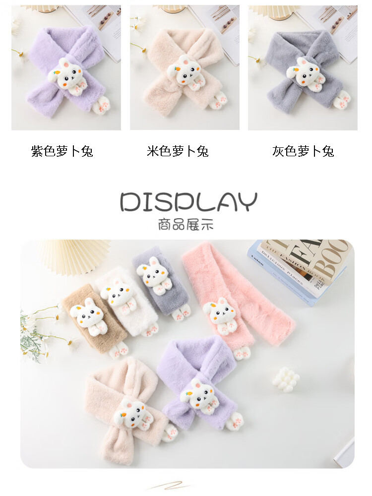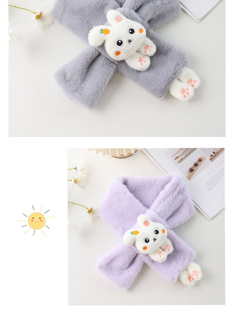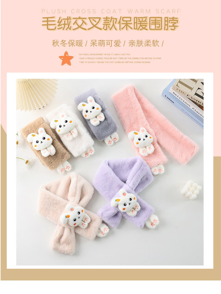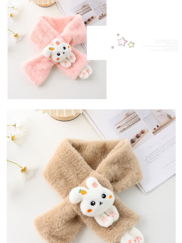 【严选】儿童围巾秋冬季保暖宝宝毛绒围脖韩版女童男童幼儿柔软舒 白色萝卜兔围巾 80-100cm