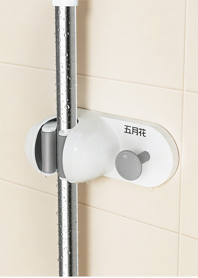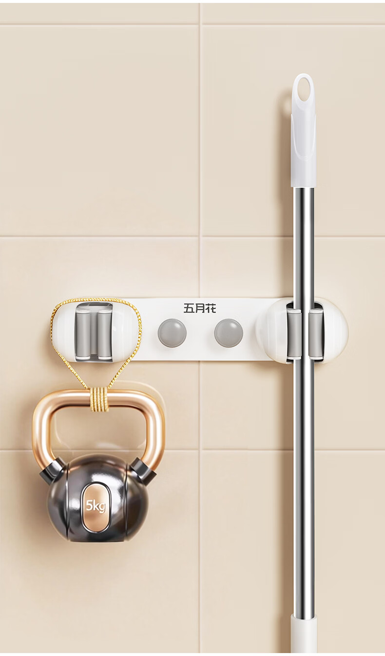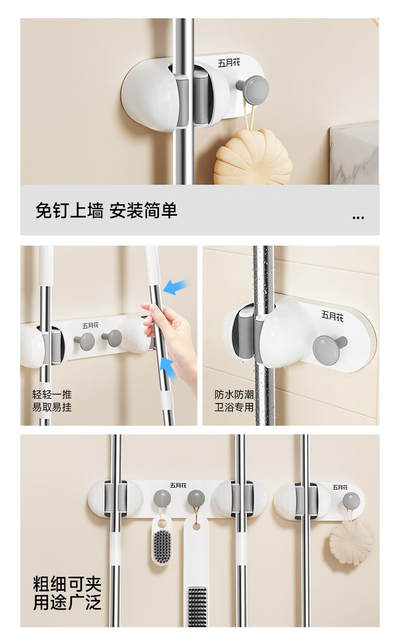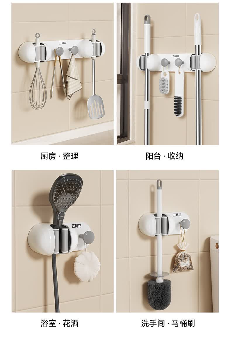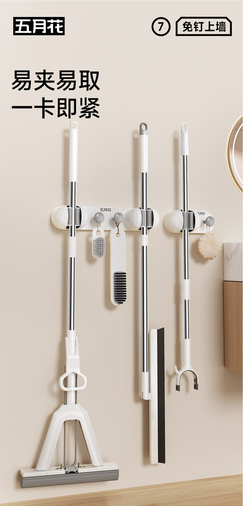五月花拖把挂钩免打孔扫把固定收纳架胶粘壁挂式挂架墙上卫生间拖把夹 免打孔【壁挂1夹1钩】拖把夹