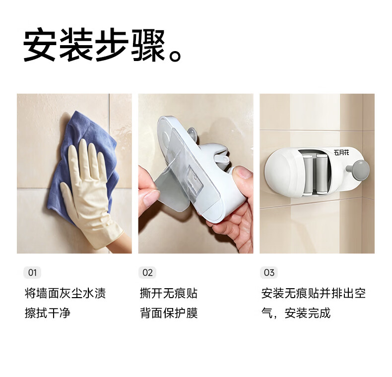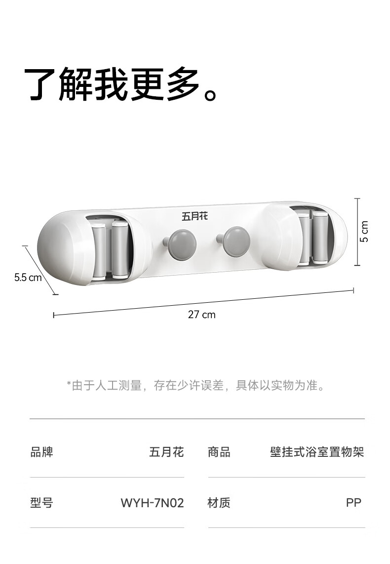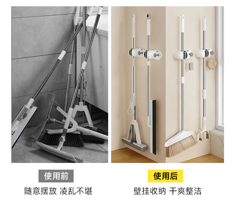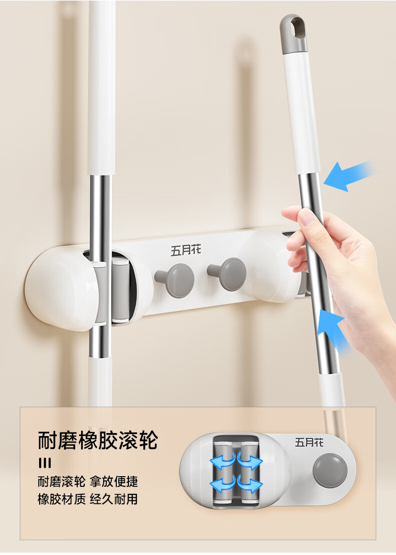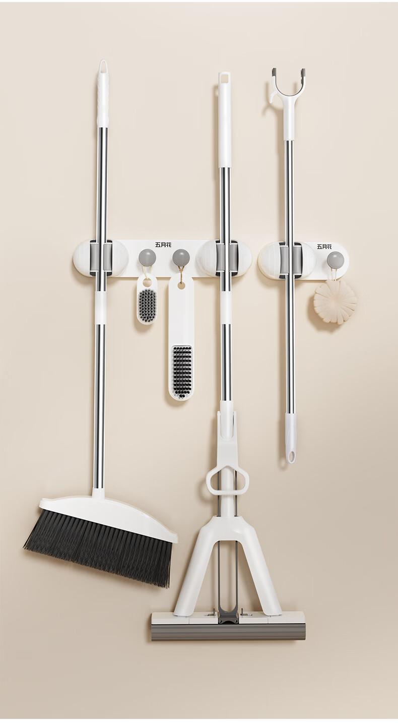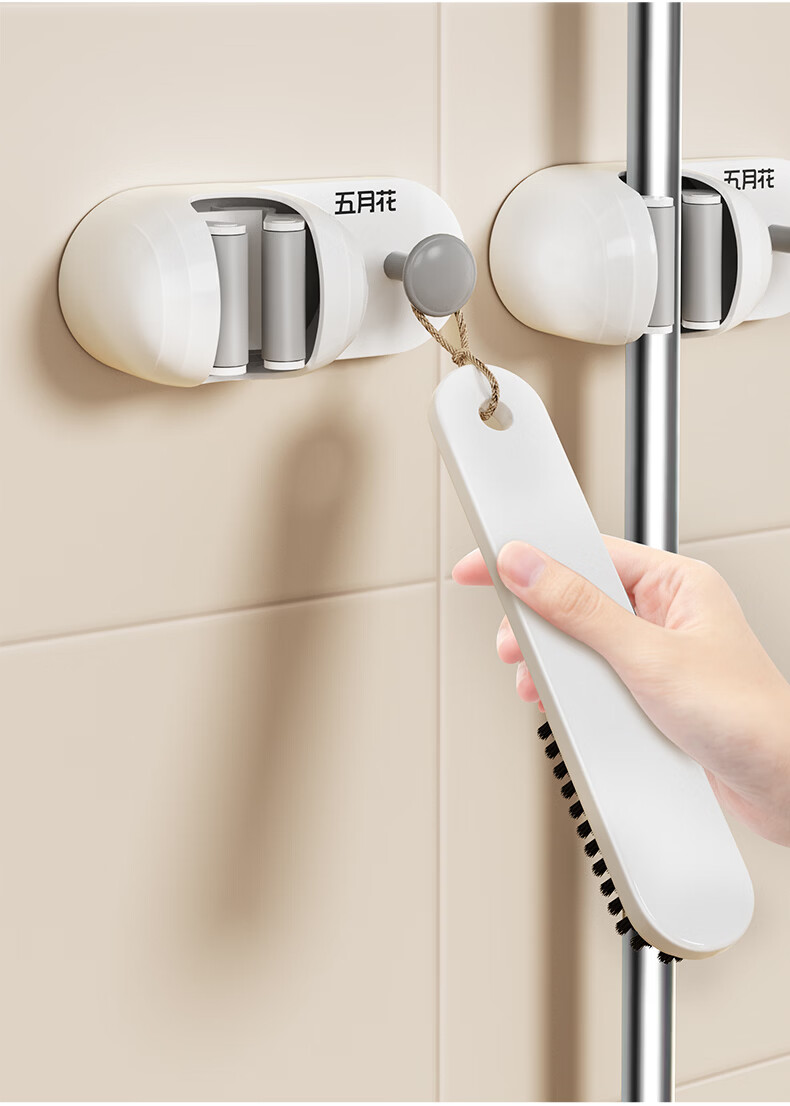 五月花拖把挂钩免打孔扫把固定收纳架胶粘壁挂式挂架墙上卫生间拖把夹 免打孔【壁挂1夹1钩】拖把夹