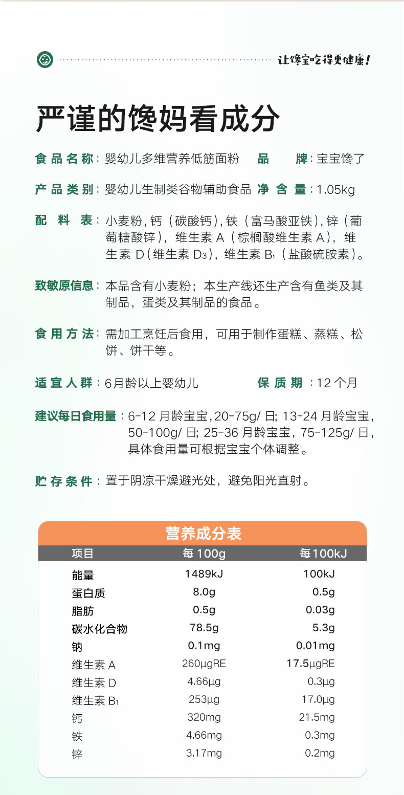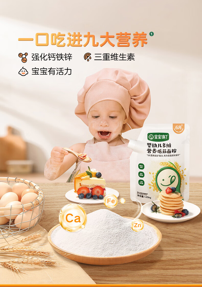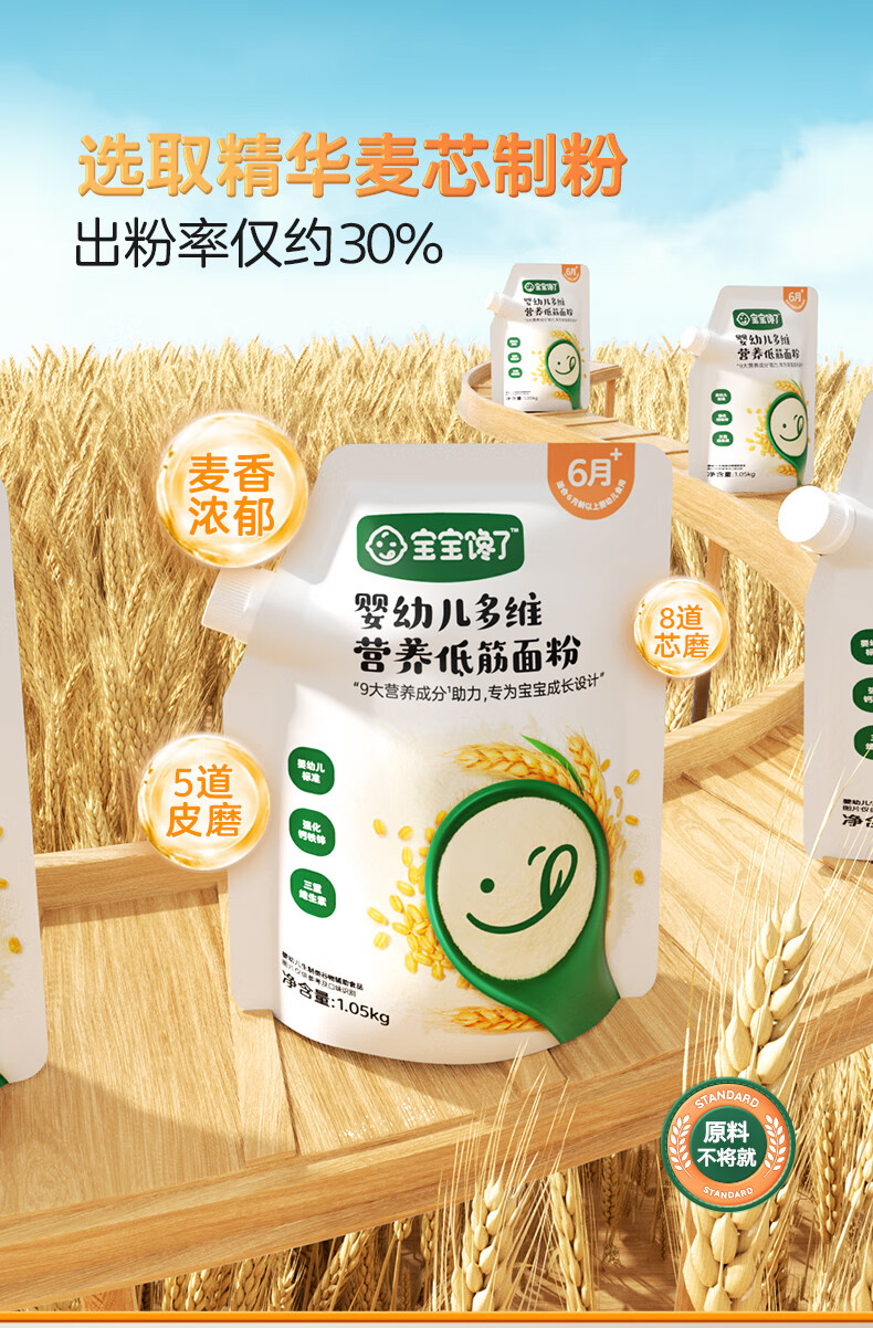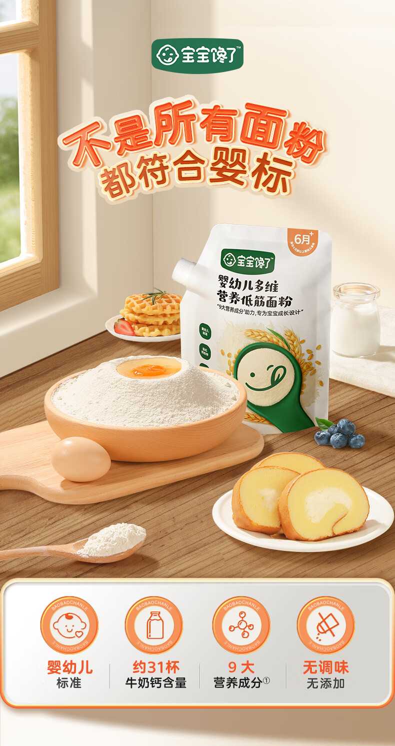 宝宝馋了婴儿低筋面粉1.05kg婴标营养自制辅食面粉烘焙蛋糕松饼粉 6月+