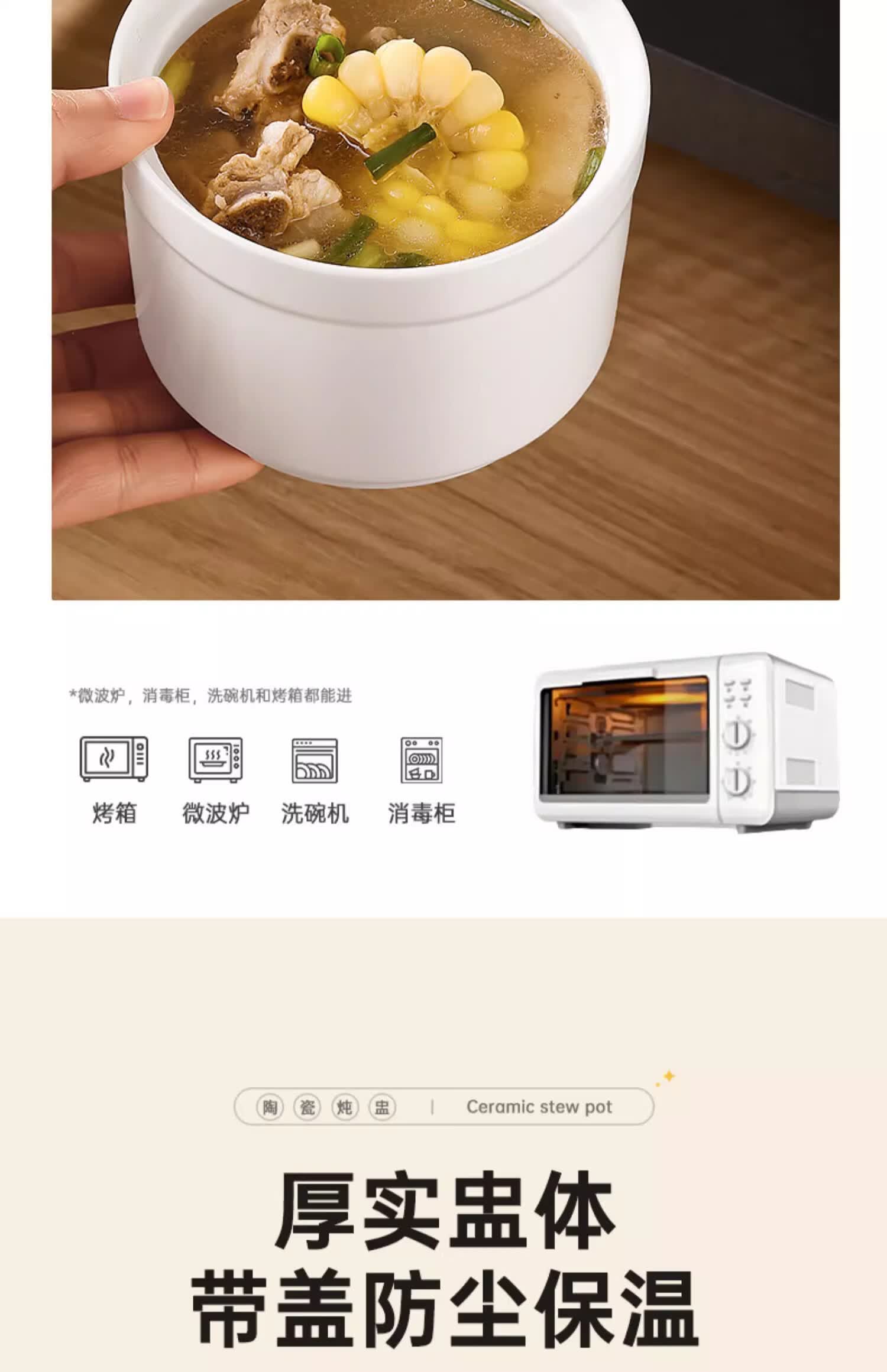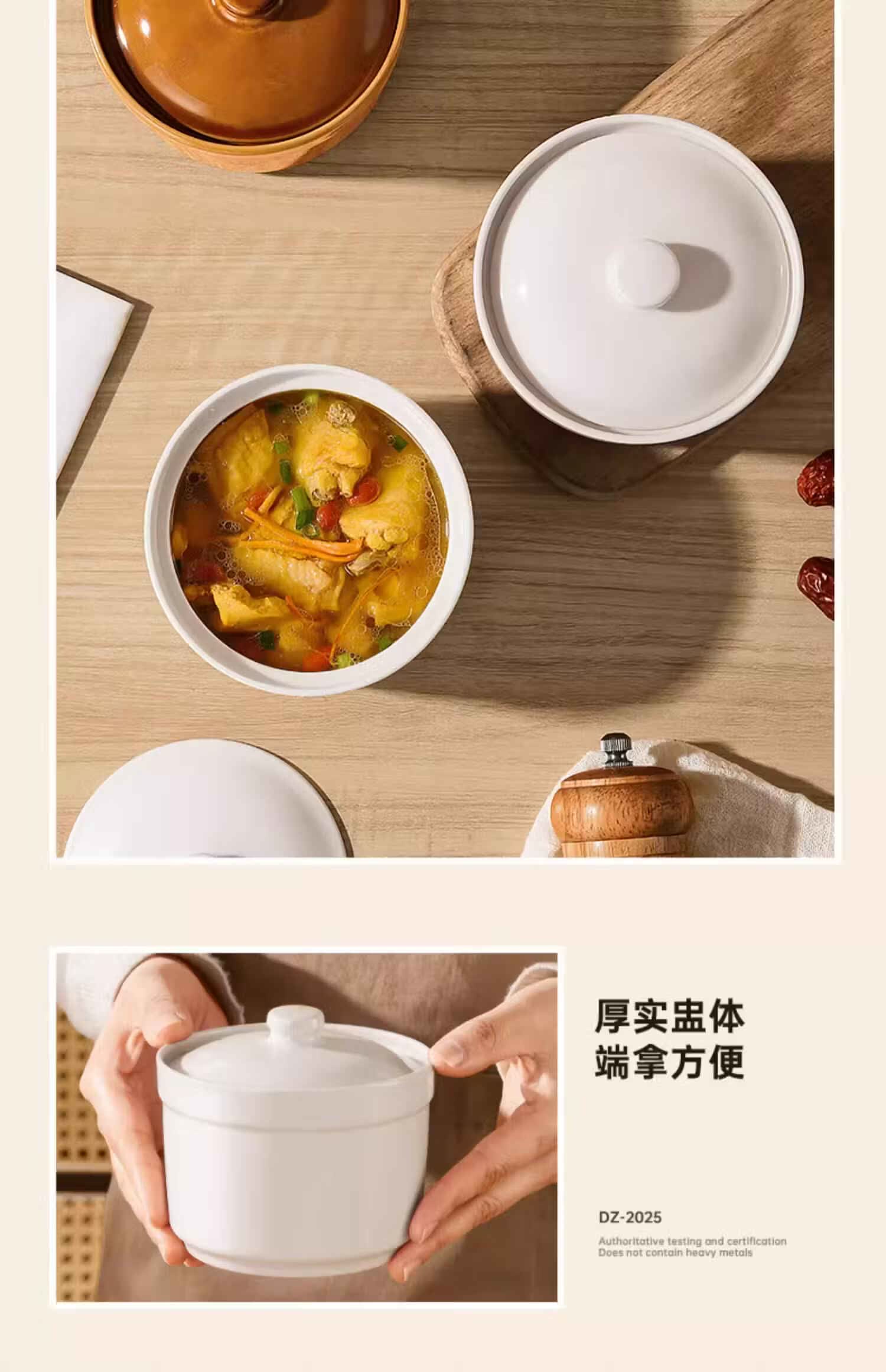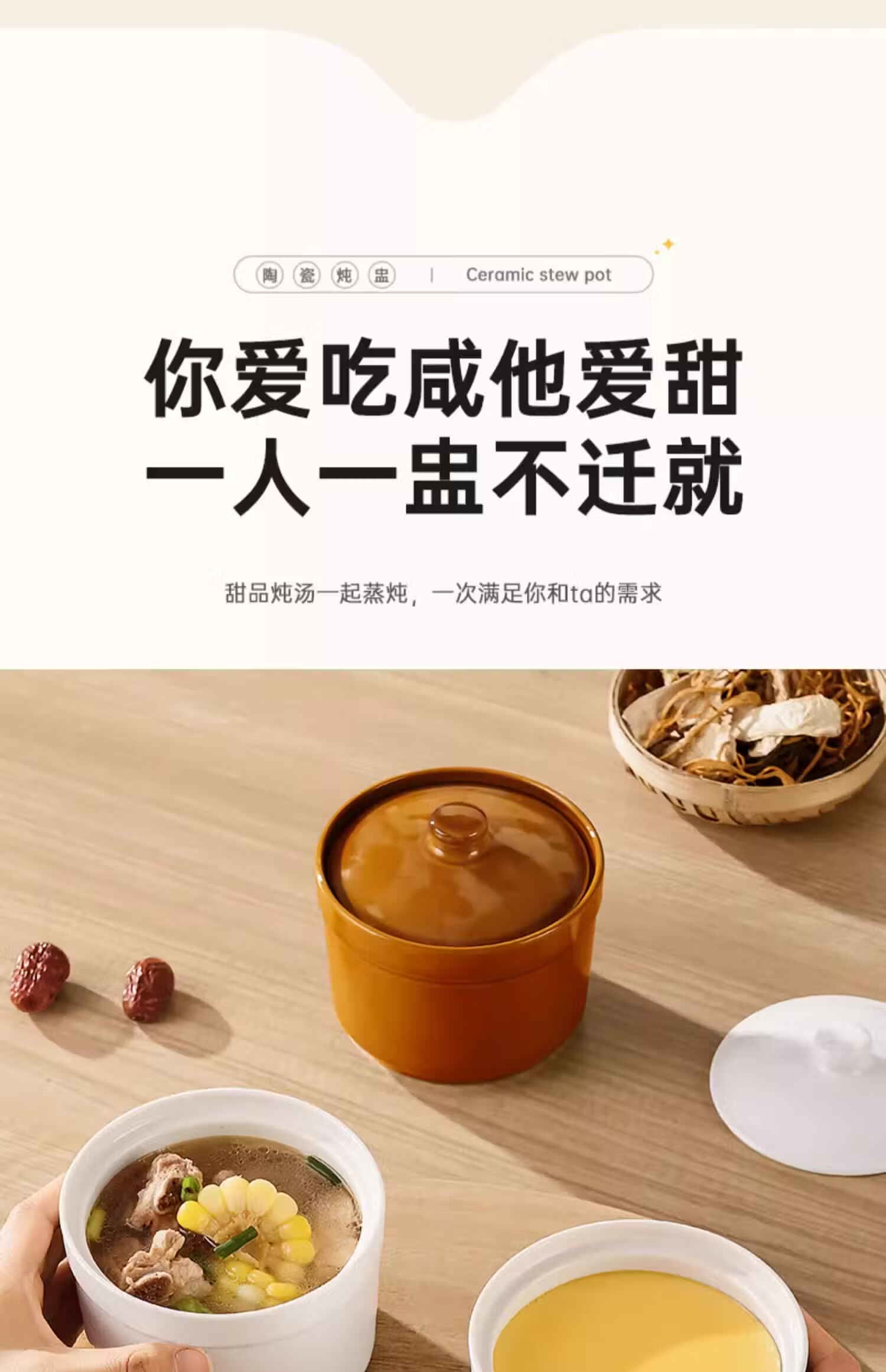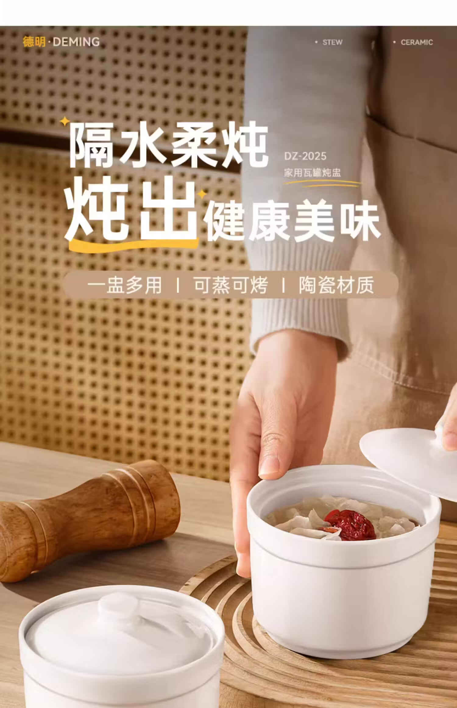 德明陶瓷炖盅瓦罐汤碗隔水小炖盅内胆蒸蛋粥燕窝食品级盅罐带盖