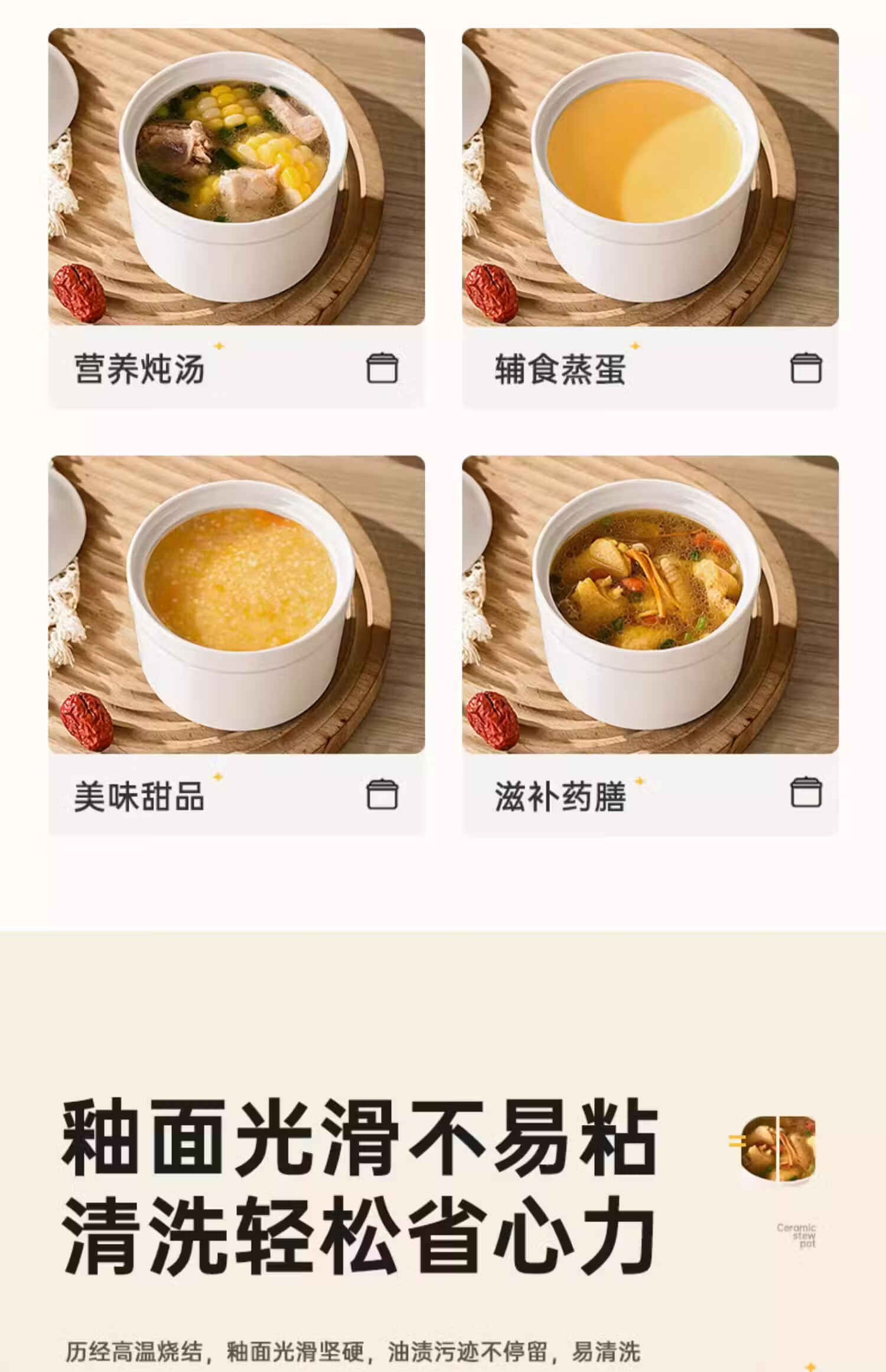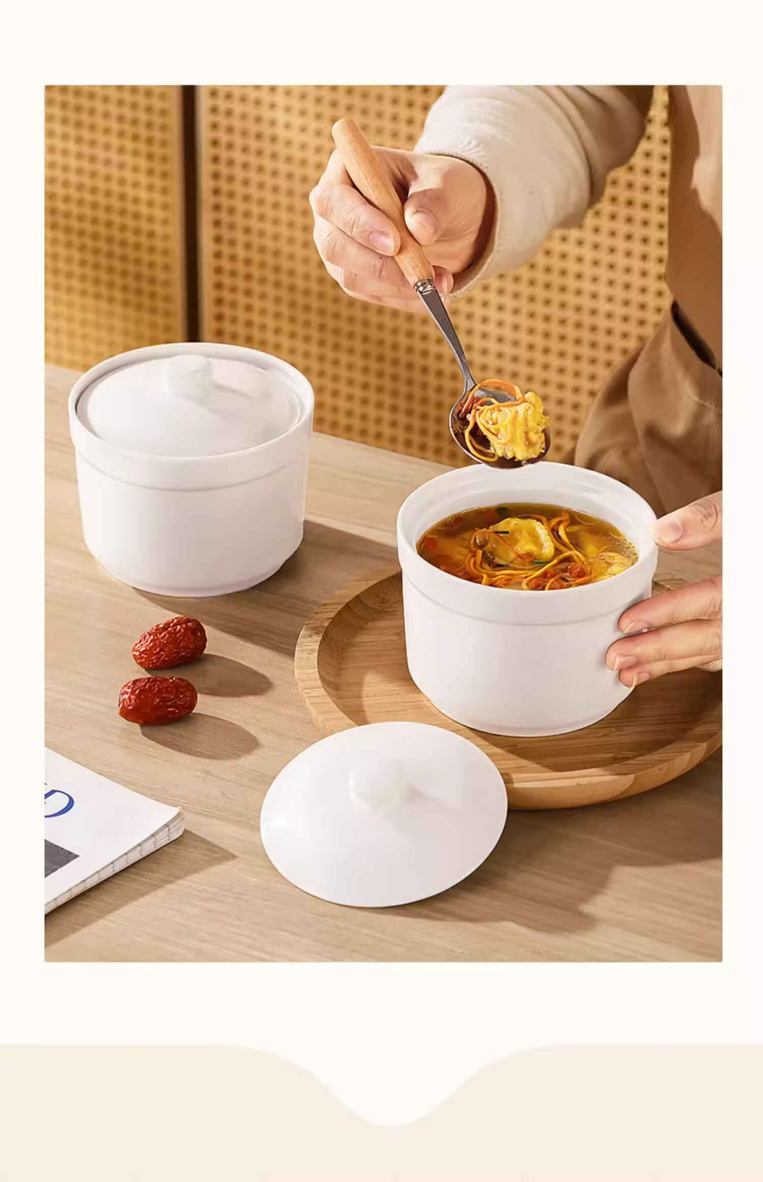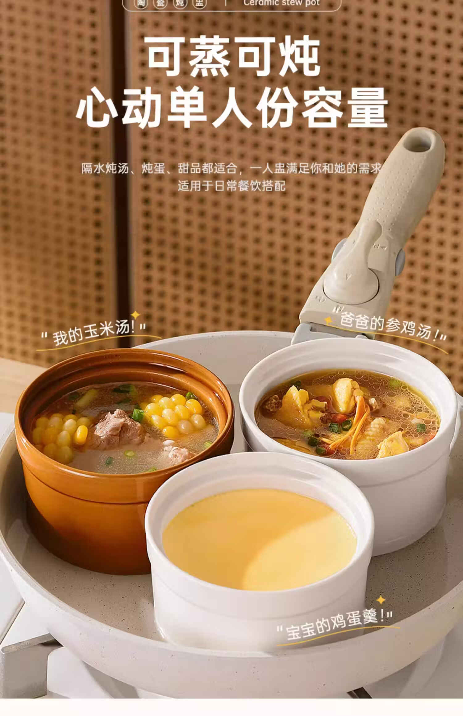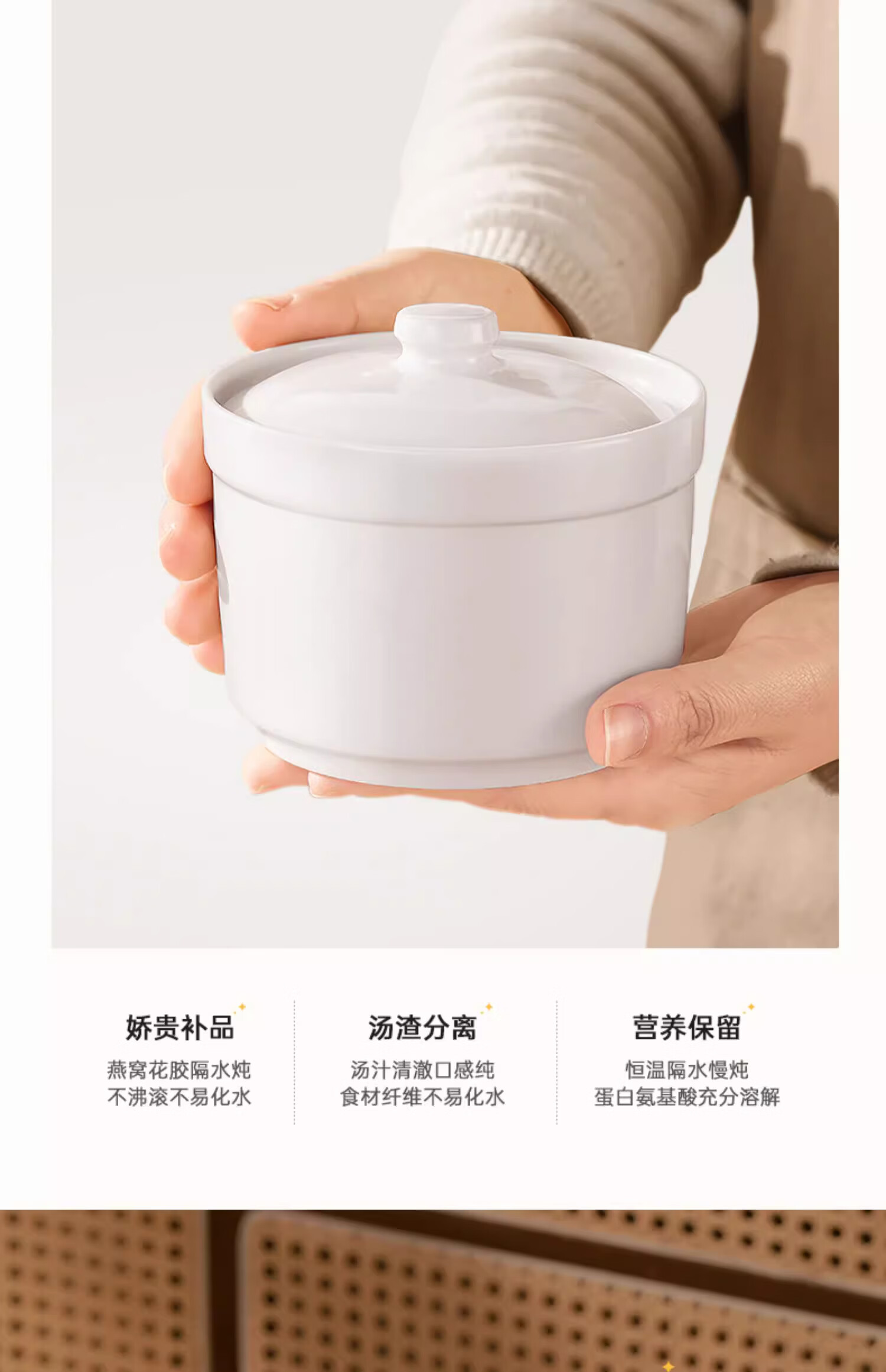 德明陶瓷炖盅瓦罐汤碗隔水小炖盅内胆蒸蛋粥燕窝食品级盅罐带盖