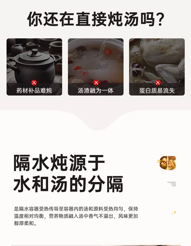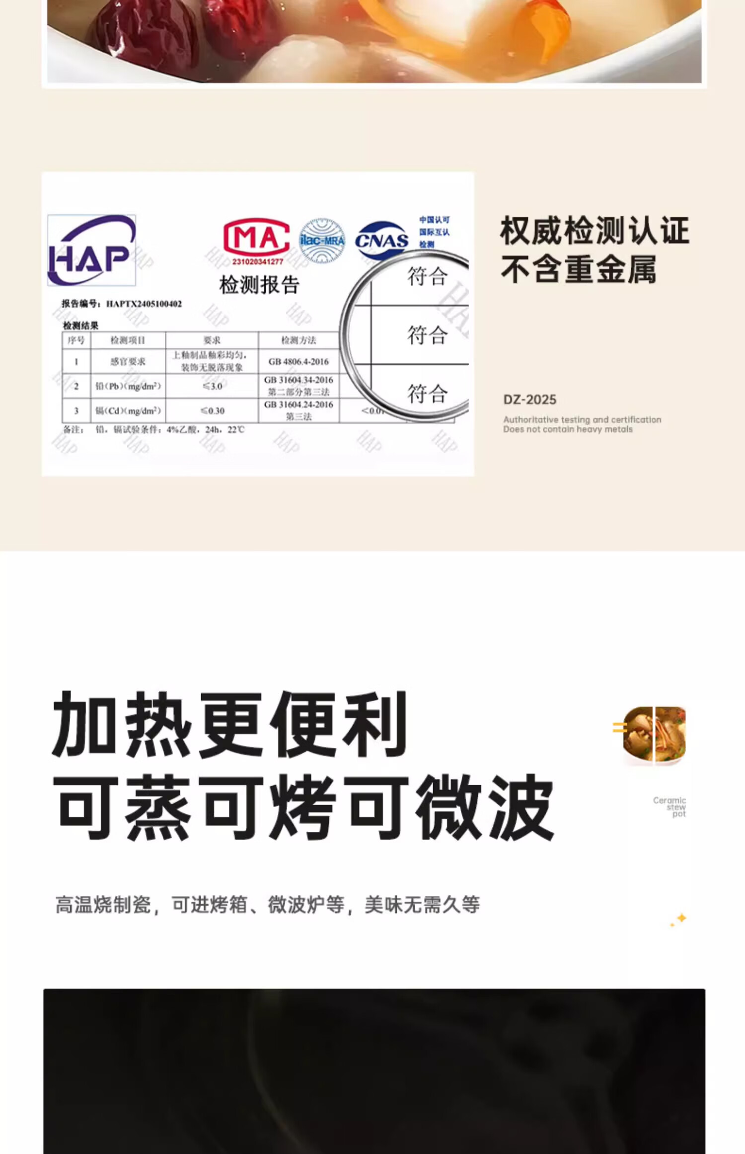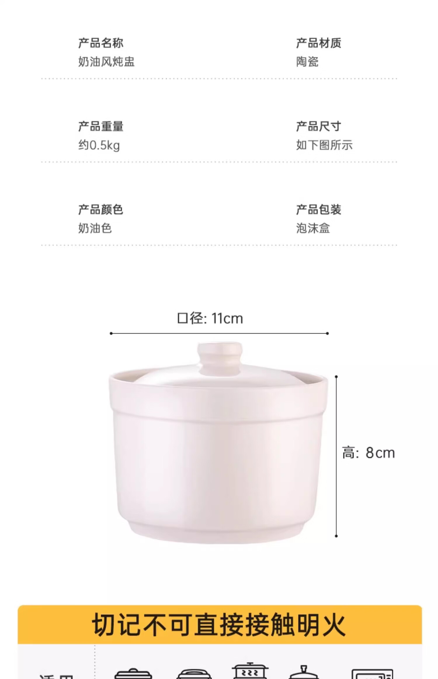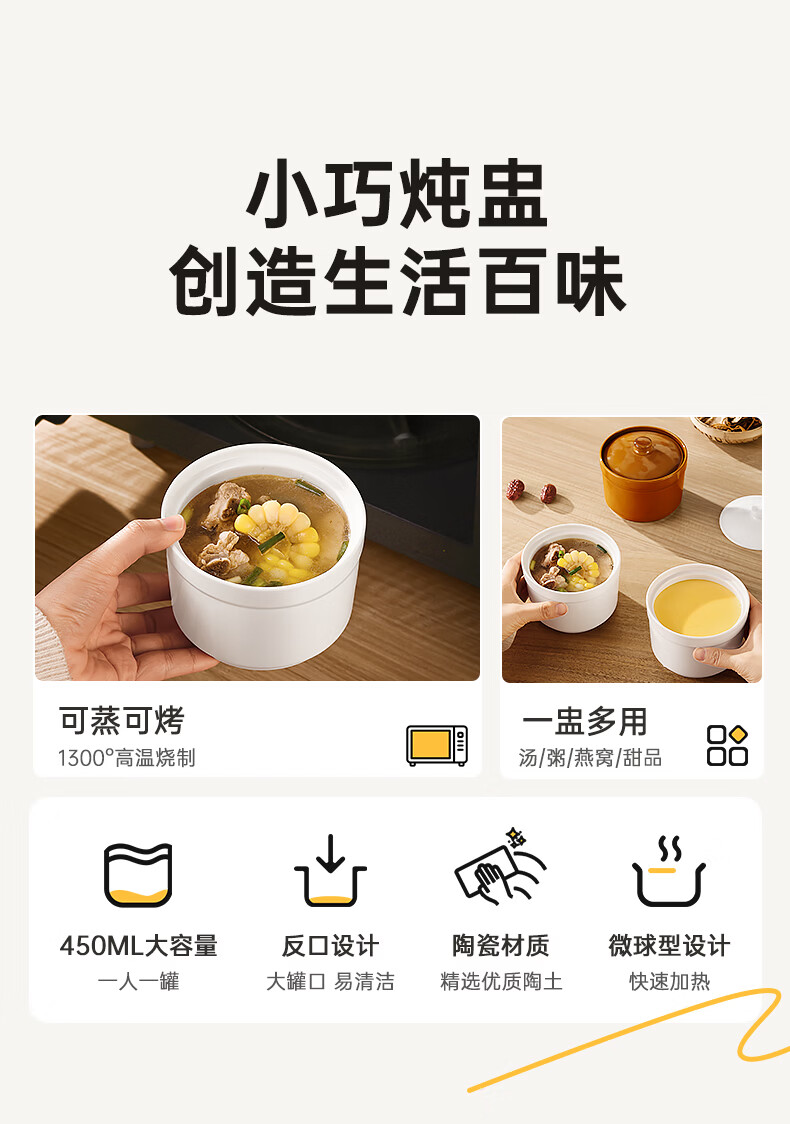 德明陶瓷炖盅瓦罐汤碗隔水小炖盅内胆蒸蛋粥燕窝食品级盅罐带盖