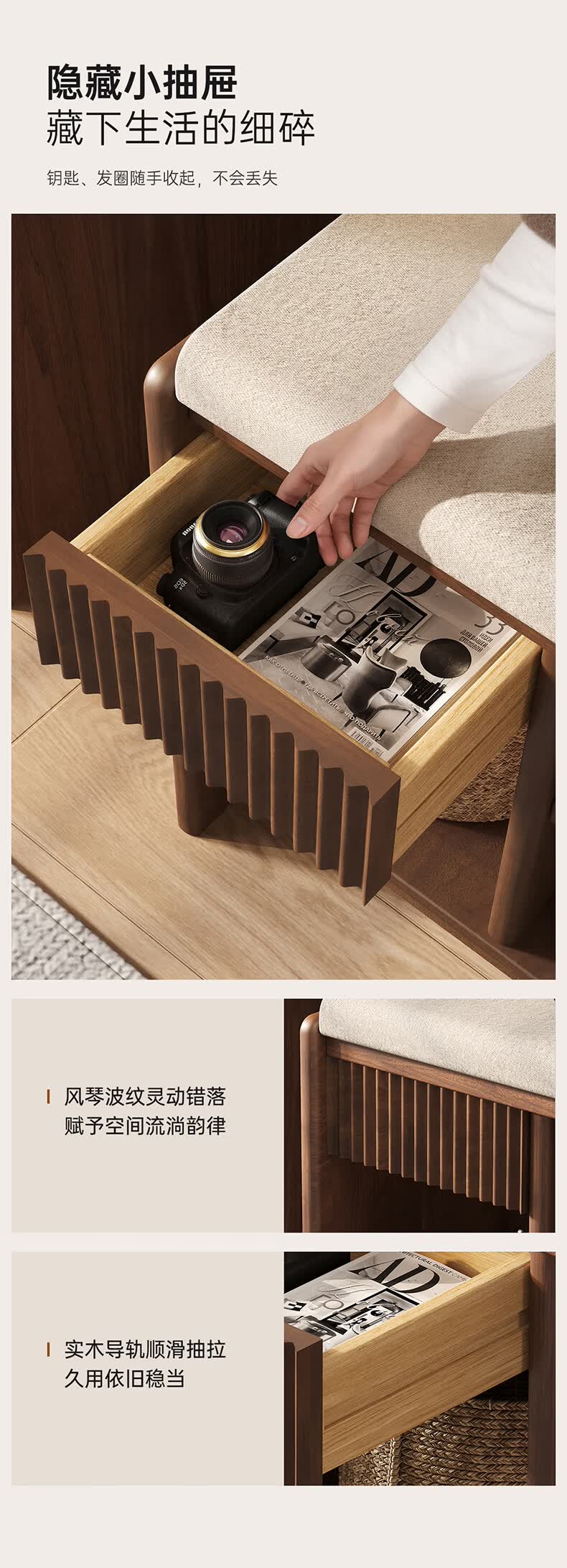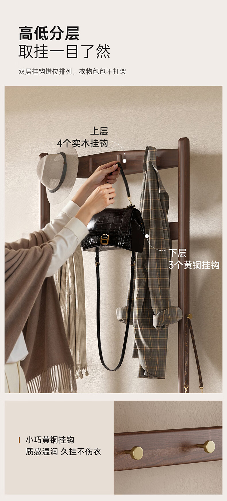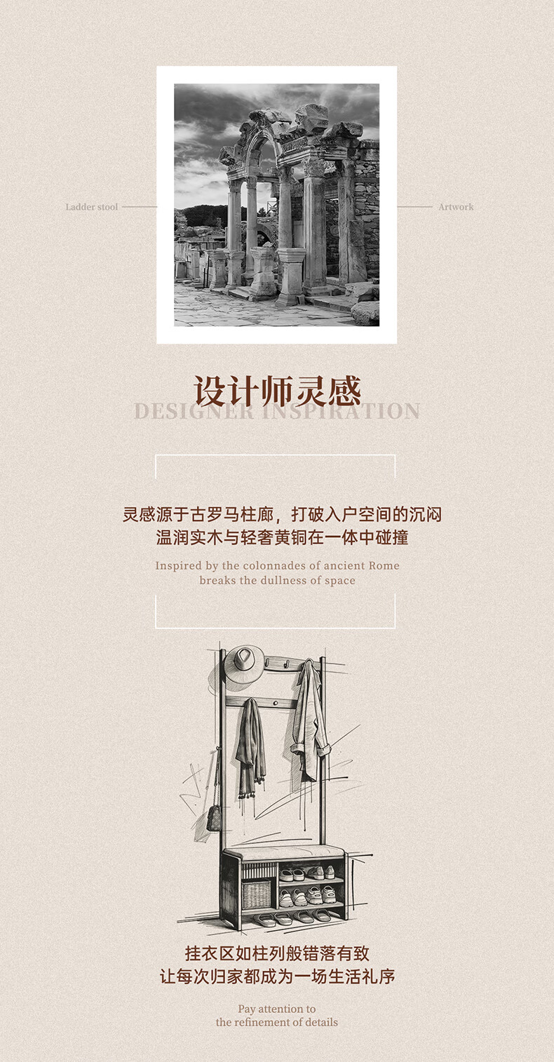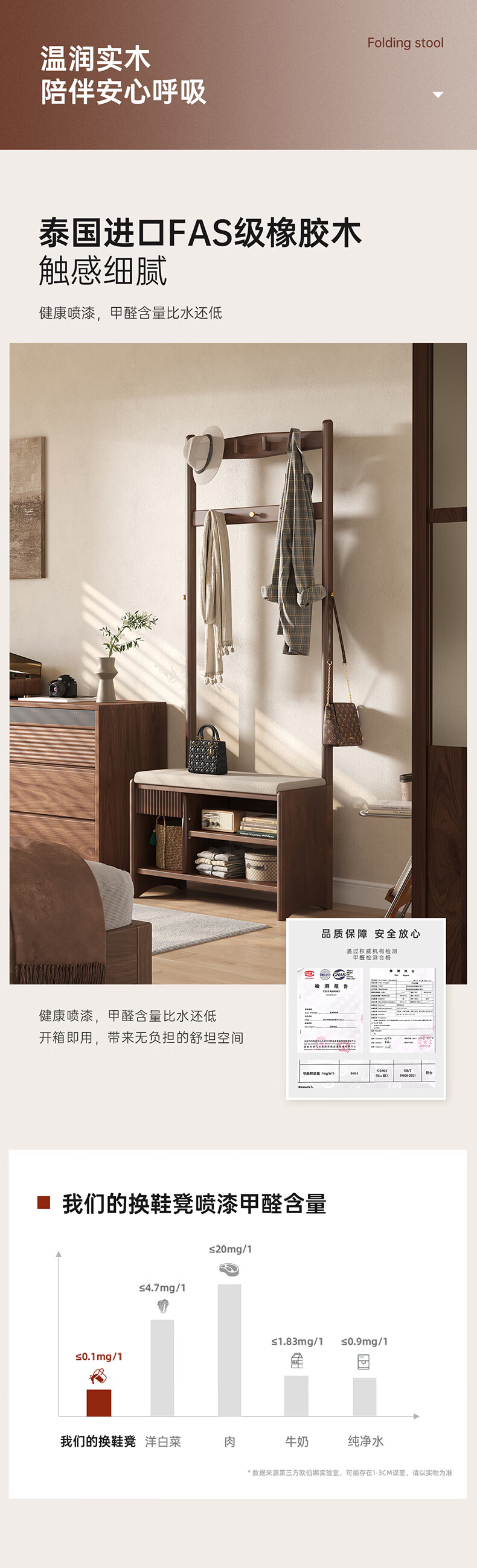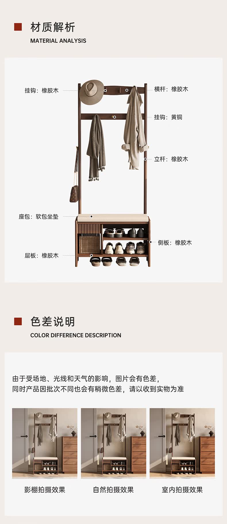 朴美实木入户门换鞋凳高级落地室内玄关软包换鞋凳挂衣架一体不占空间