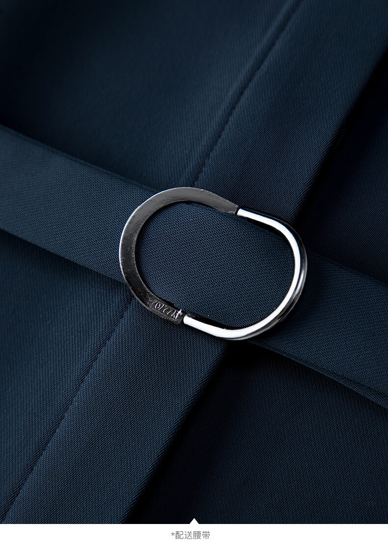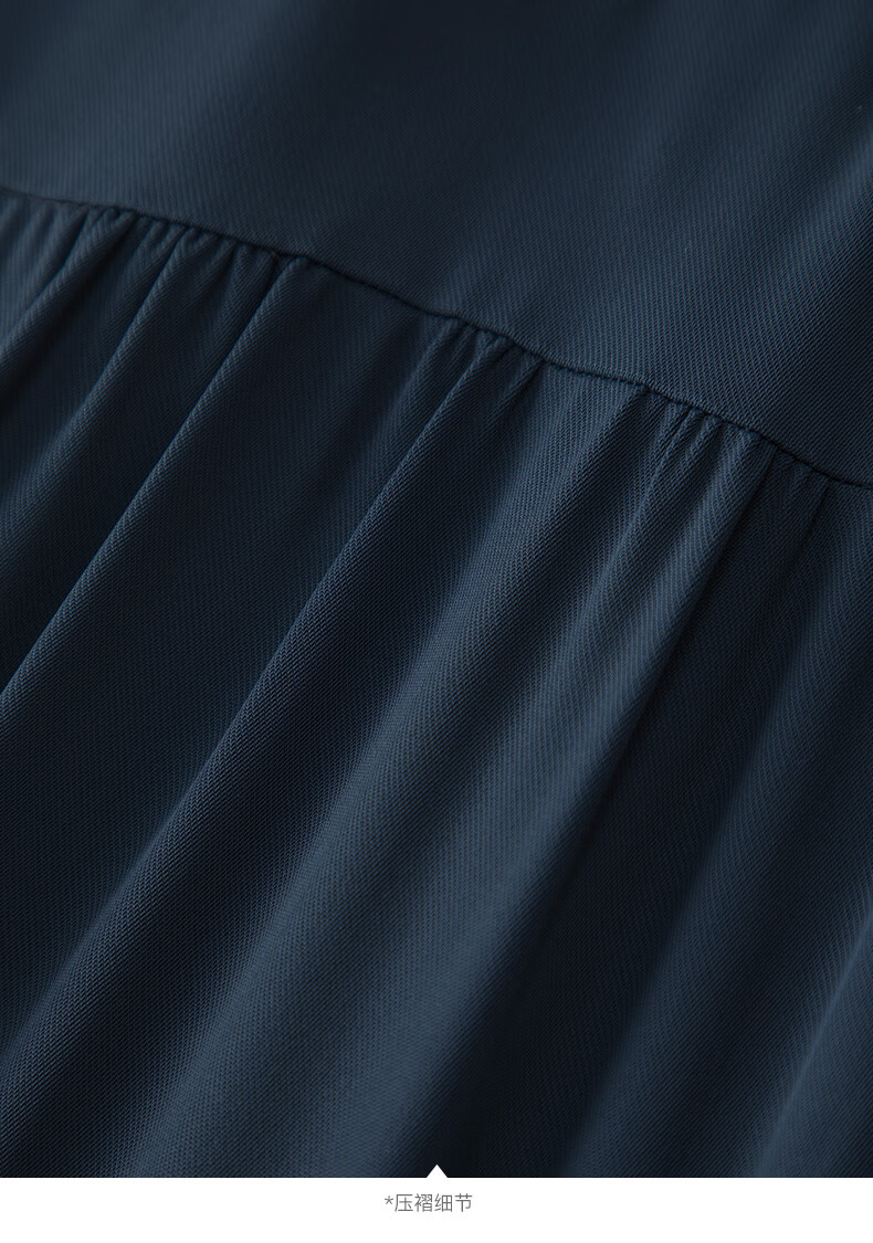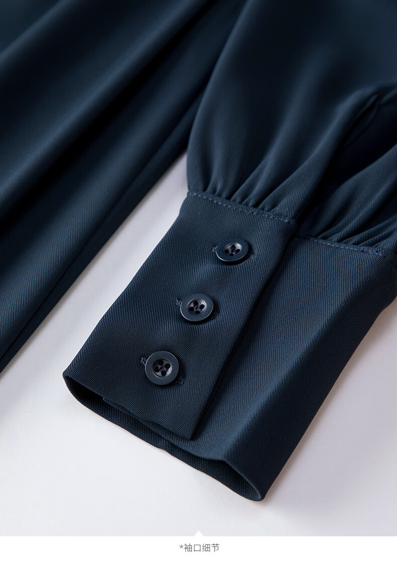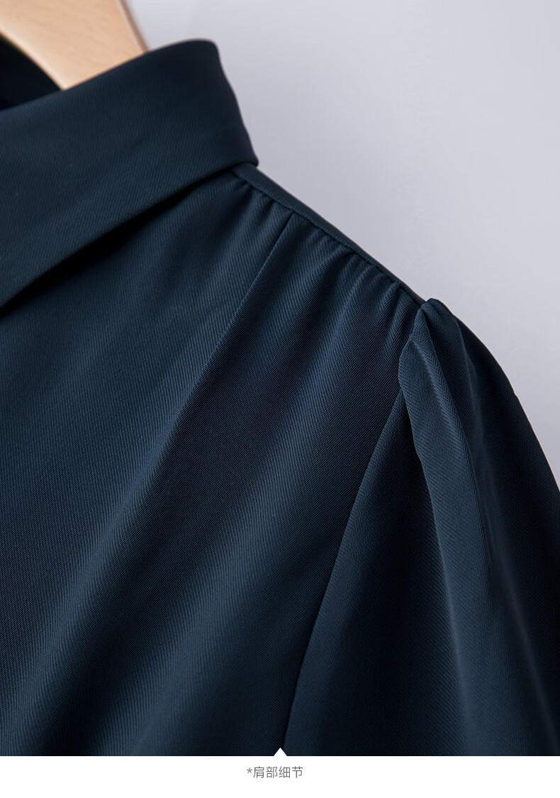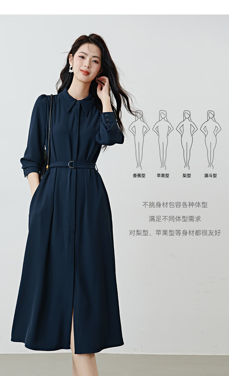 晚白2026春款经典翻领行政蓝正式场合裙子系带收腰垂坠抗皱衬衫连衣裙 深蓝色 L