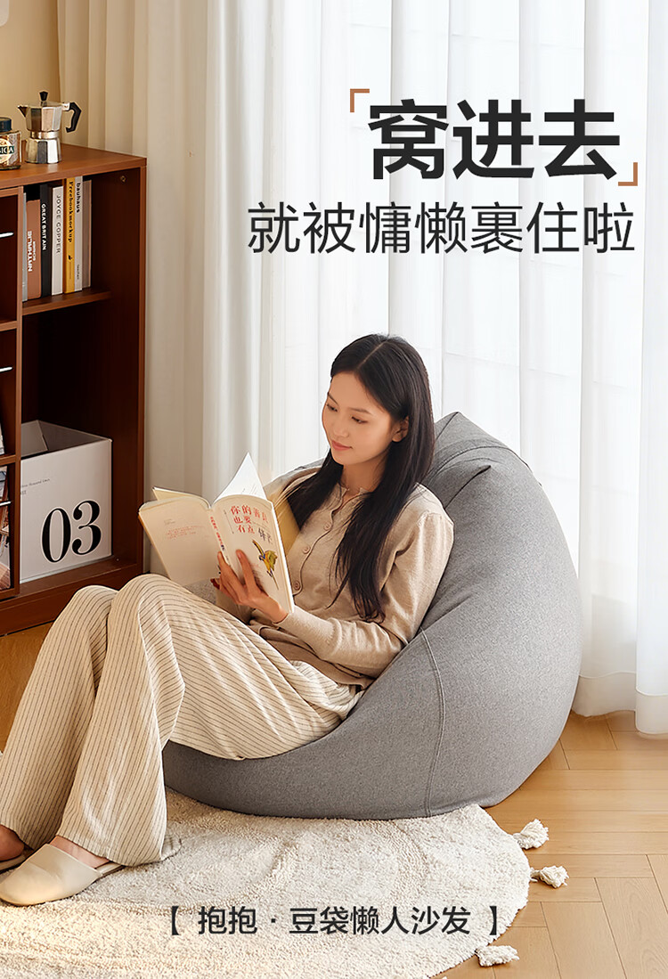 全友家居现代简约豆袋懒人沙发客厅卧室小户型单人沙发阳台简易沙发KS 【柿子橙|细麻】豆袋沙发 100×120cm