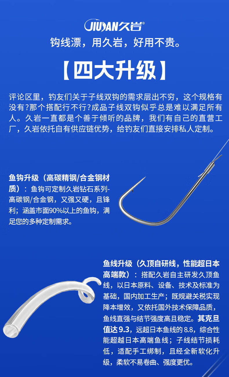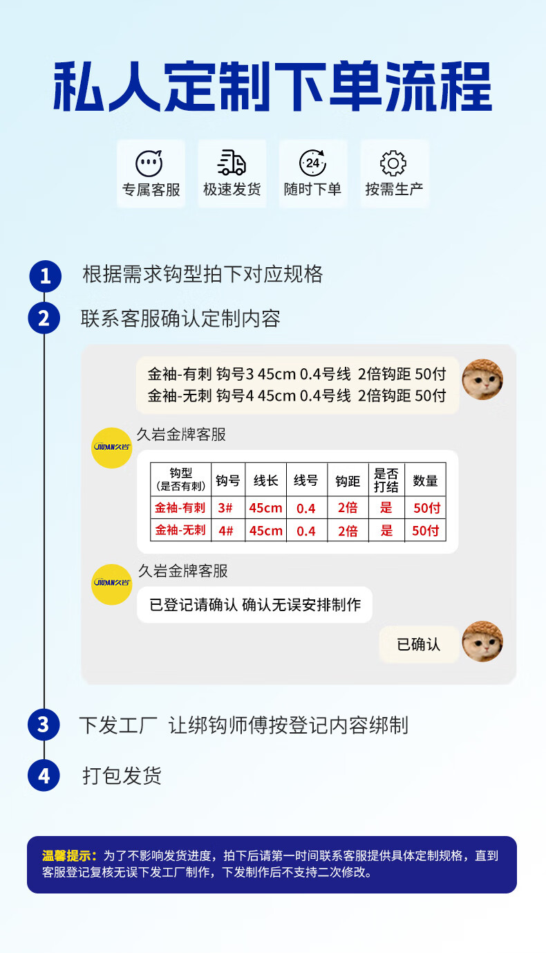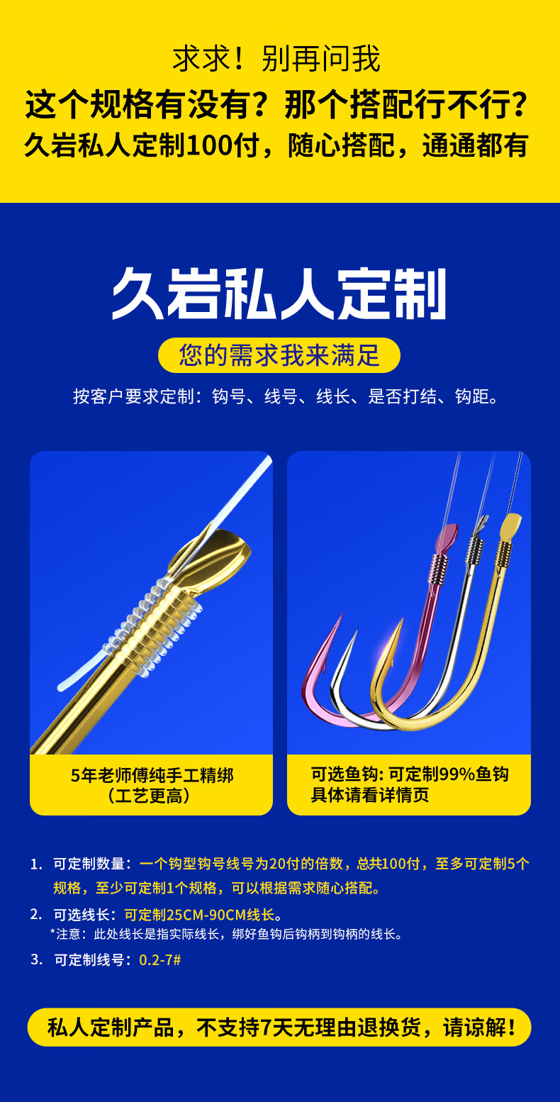 久岩私人定制子线双钩成品纯手工订制手绑子线金袖岩牙绑好的钩子鱼钩 100付金袖【搭配久顶鱼线】 100付私人定制可混拼