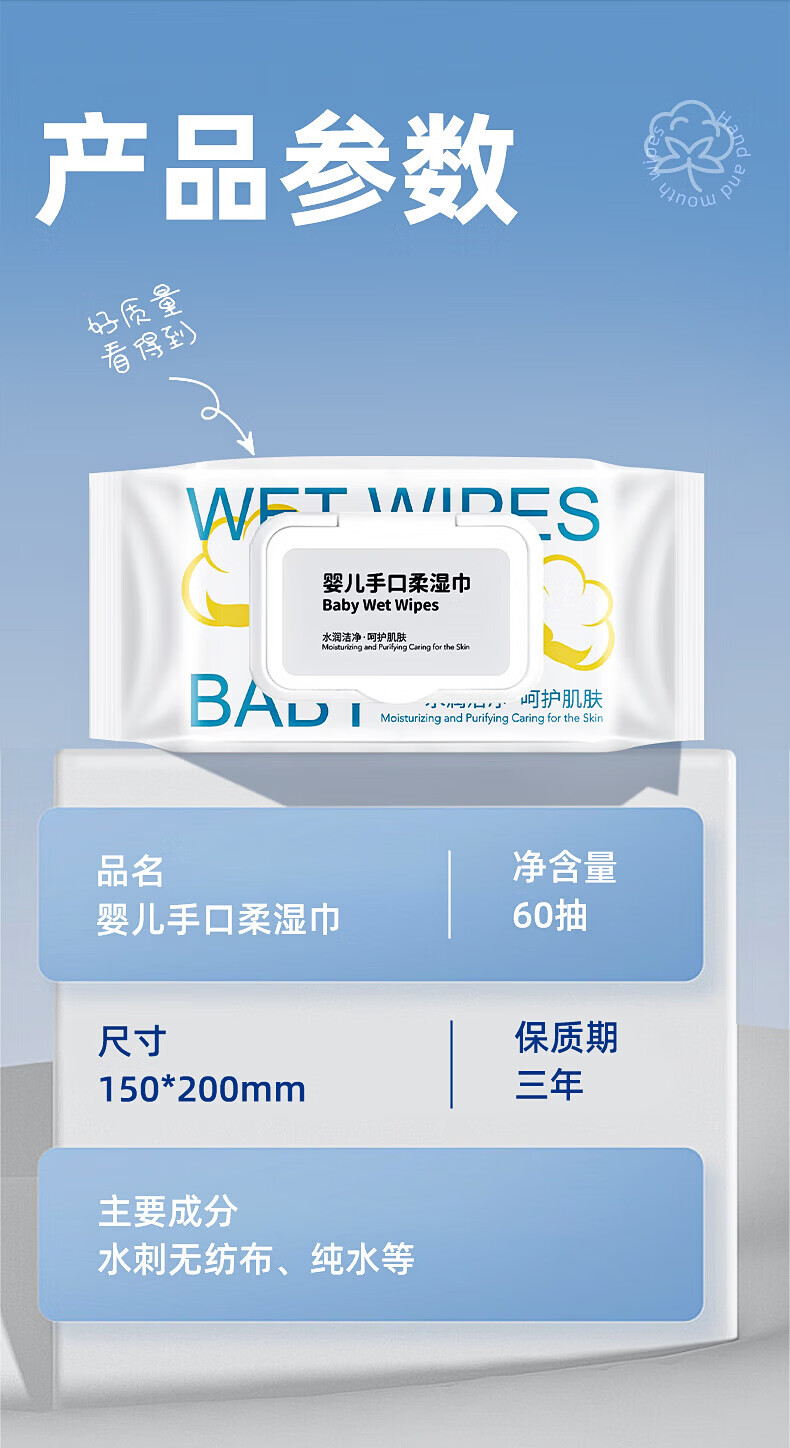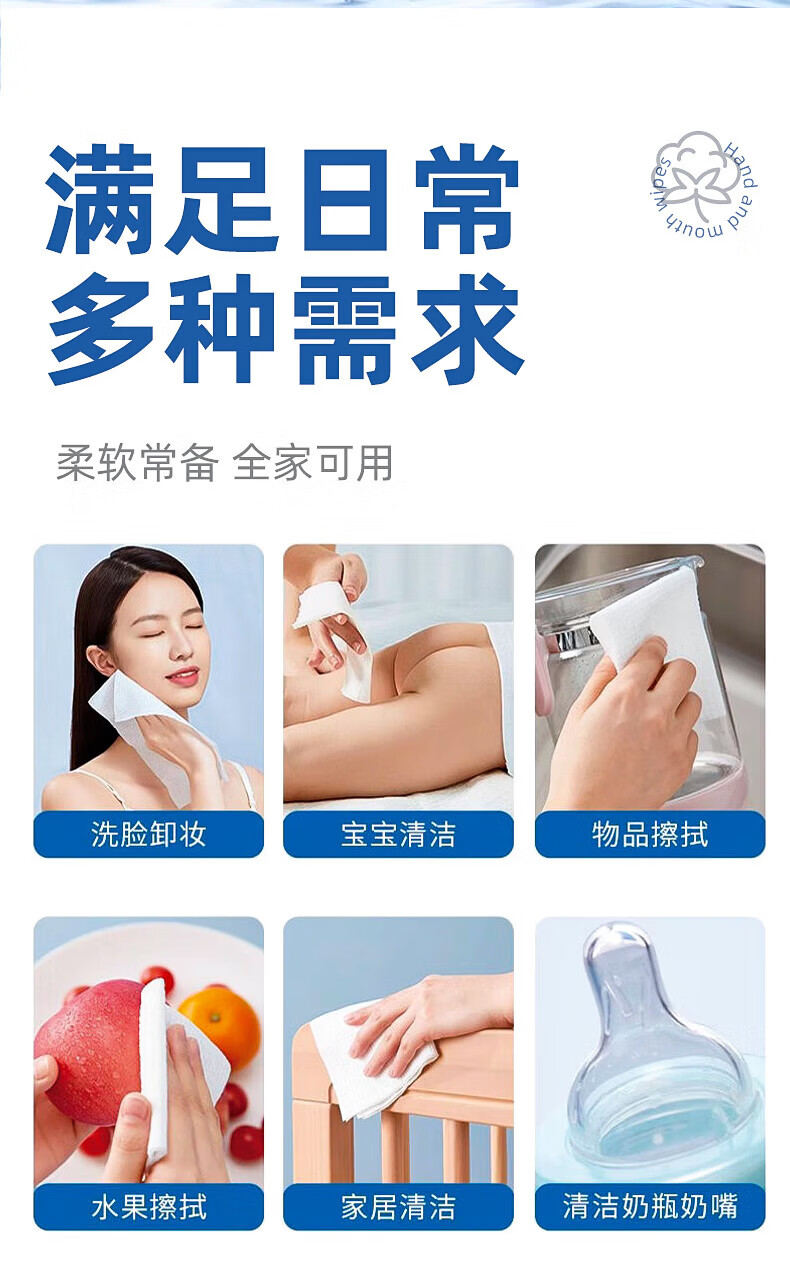 Kaooseen文教文化用品无纺布擦手手口柔加厚无添加洁面擦脸擦手多用途 1包60抽