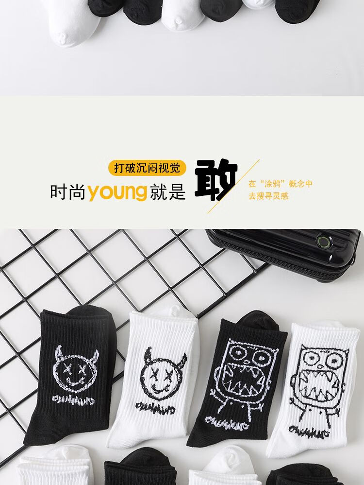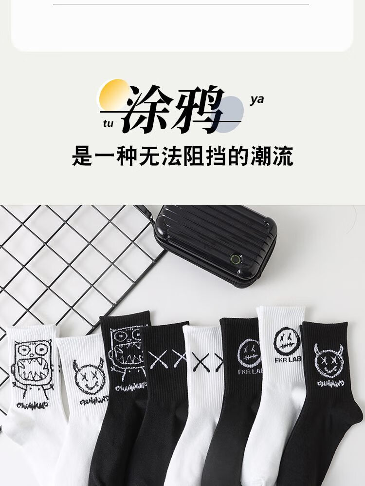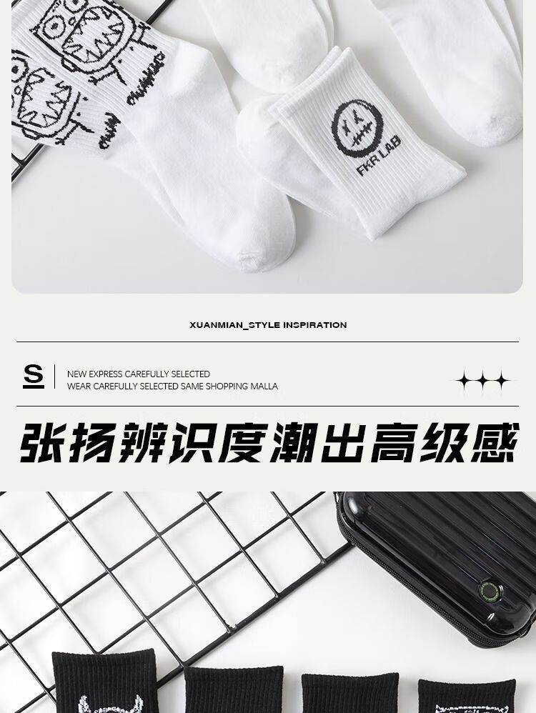 雅鹿袜子男款中筒袜加厚秋冬CP字母潮牌运动长袜青少年学生吸汗防臭袜 当季新款】CP字母潮袜-白色【1双】 均码 雅鹿 10A抑菌/高弹透气/抗起球