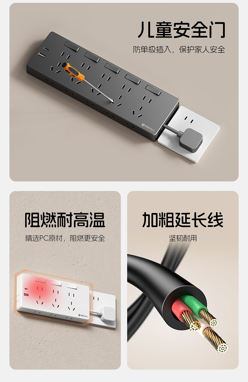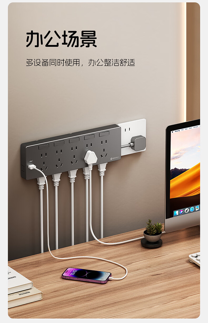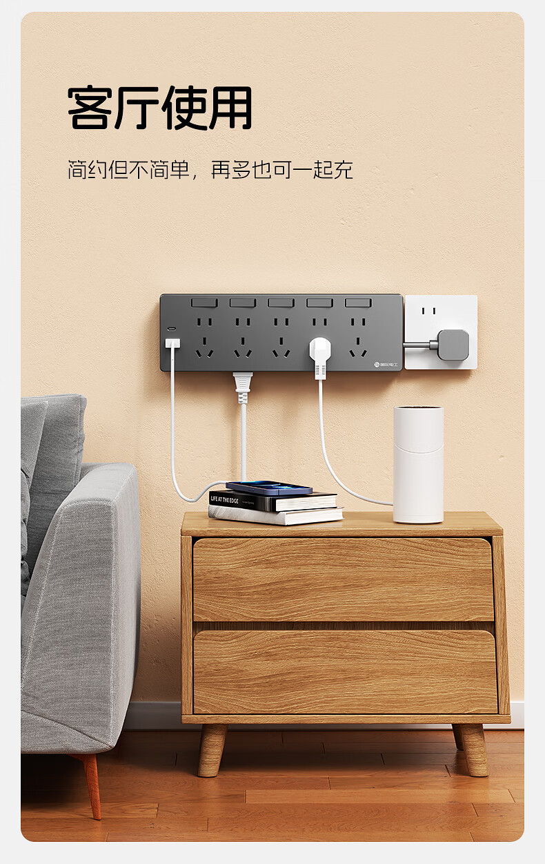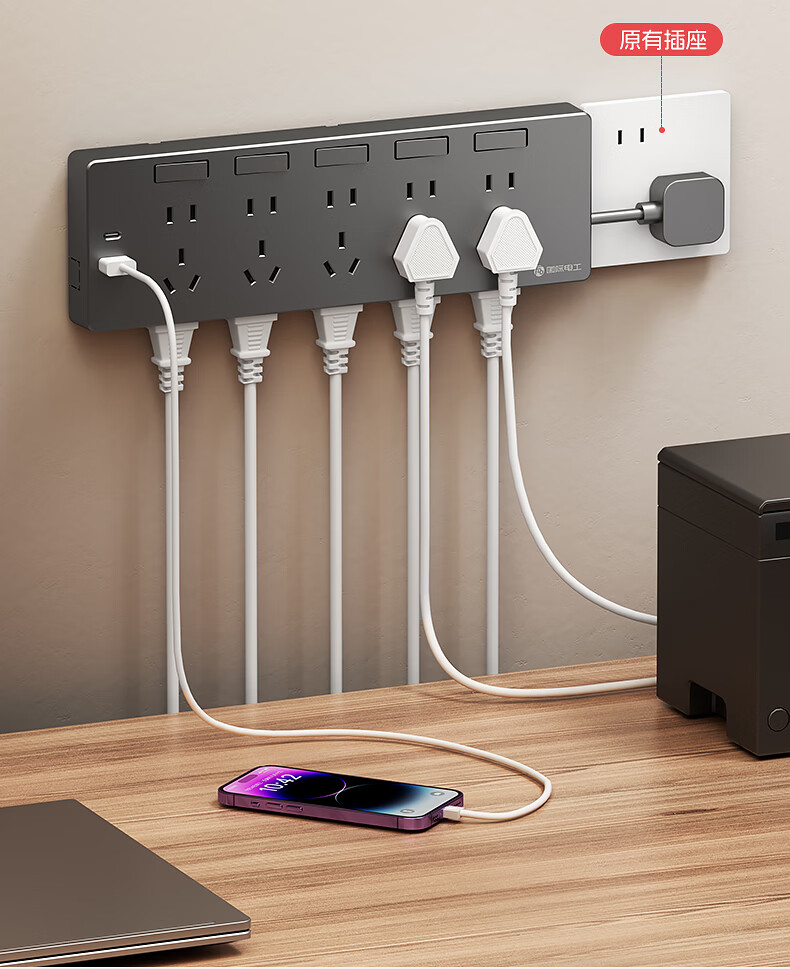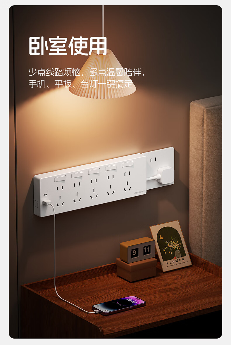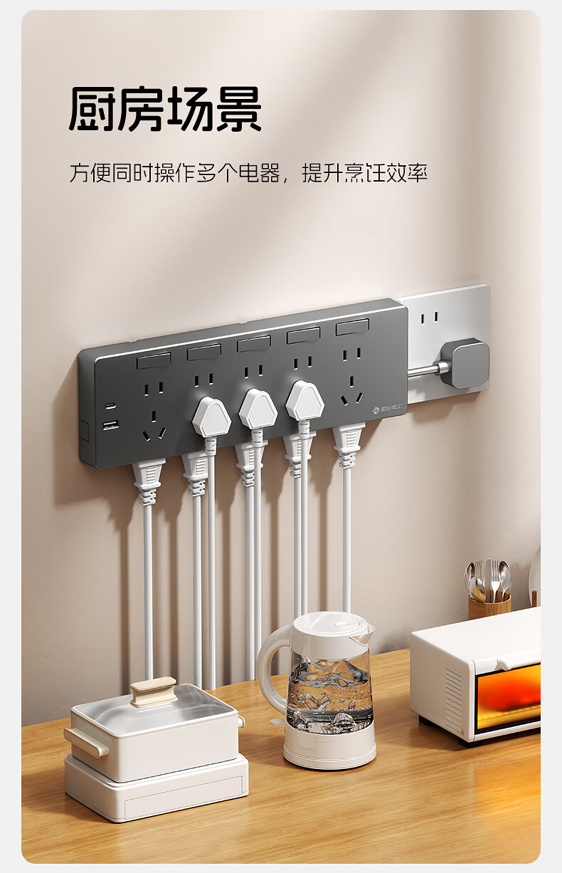 国际电工免接线扩展插座独立开关厨房家用排插多功能带线扩展插板一转多用 白色带线-3开21孔【U+C】2.1A-向左扩展