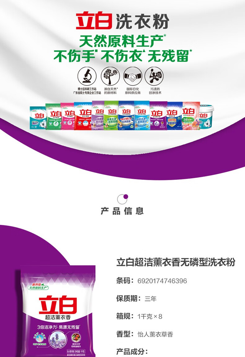 立白洗衣粉1kg超洁熏衣草香洗衣粉香味持久留香去污去渍 立白薰衣香洗衣粉1kg*1袋