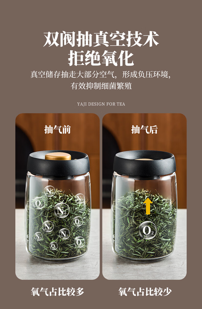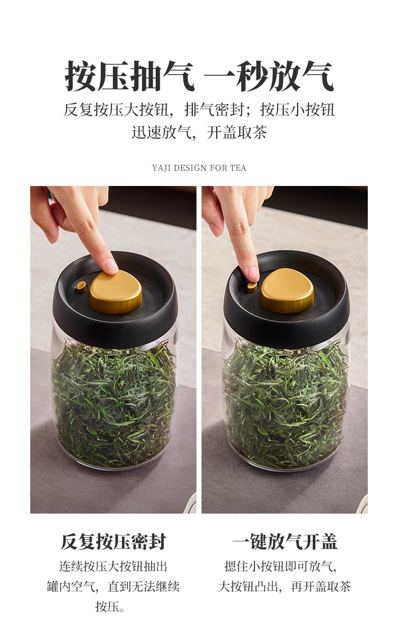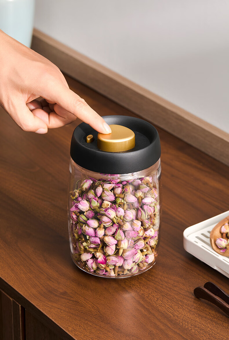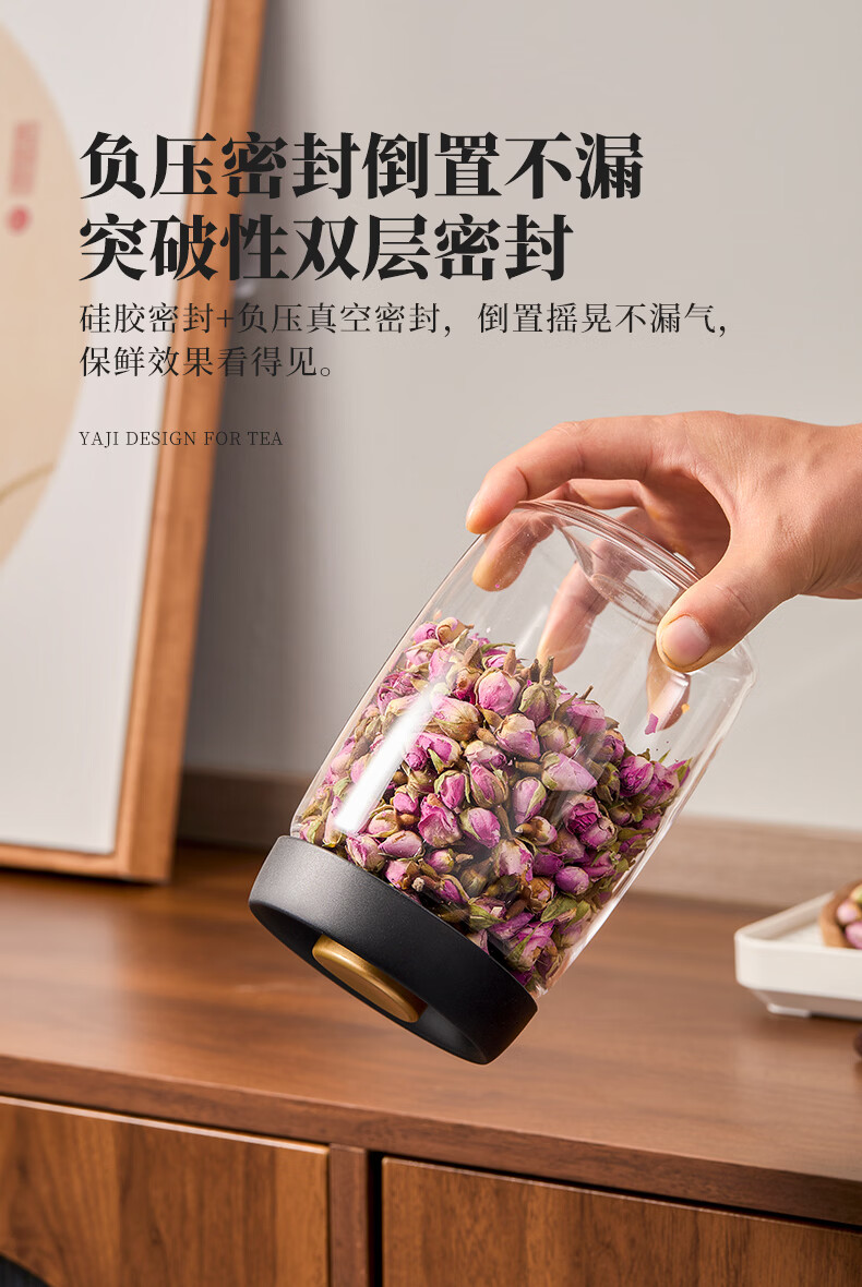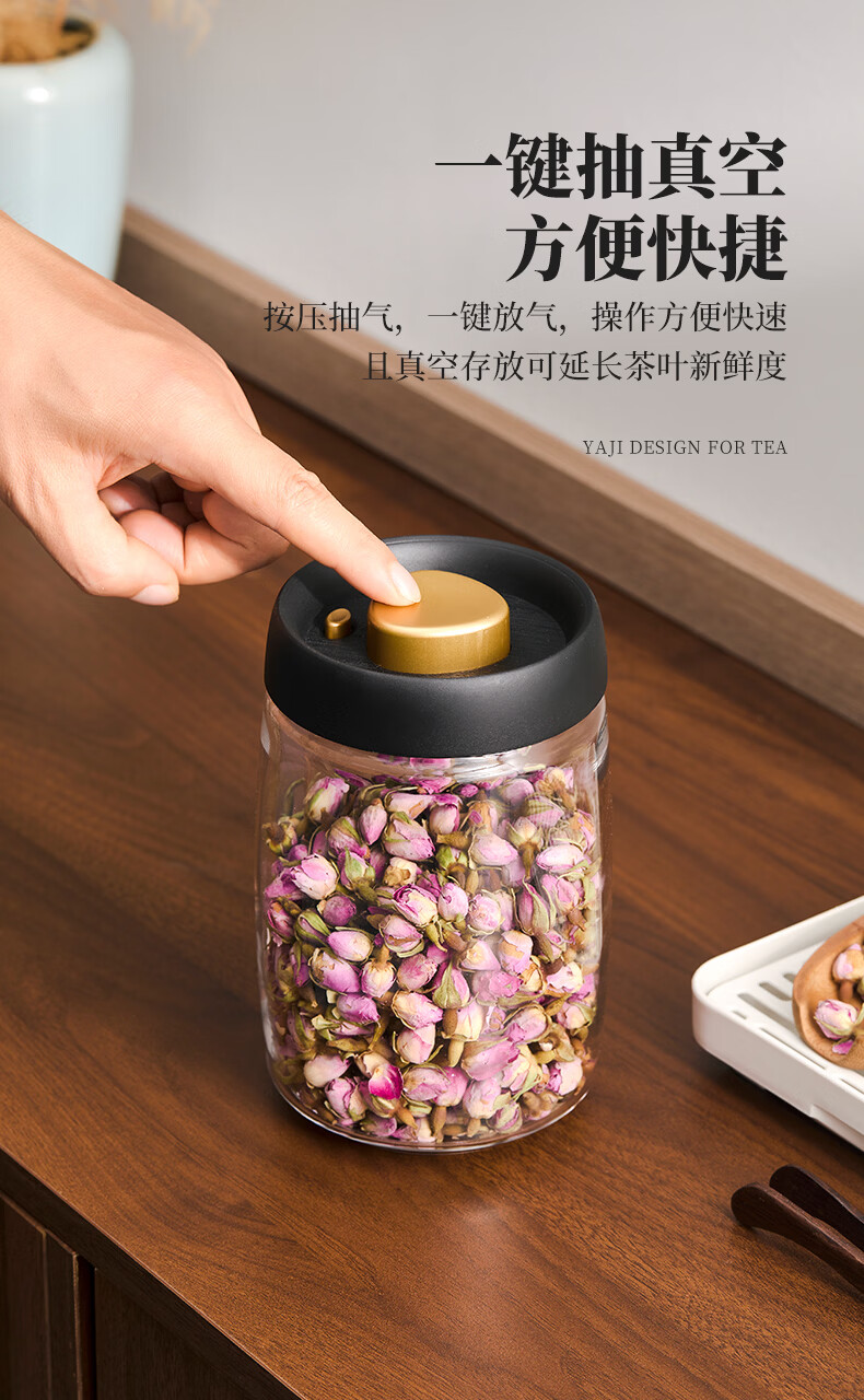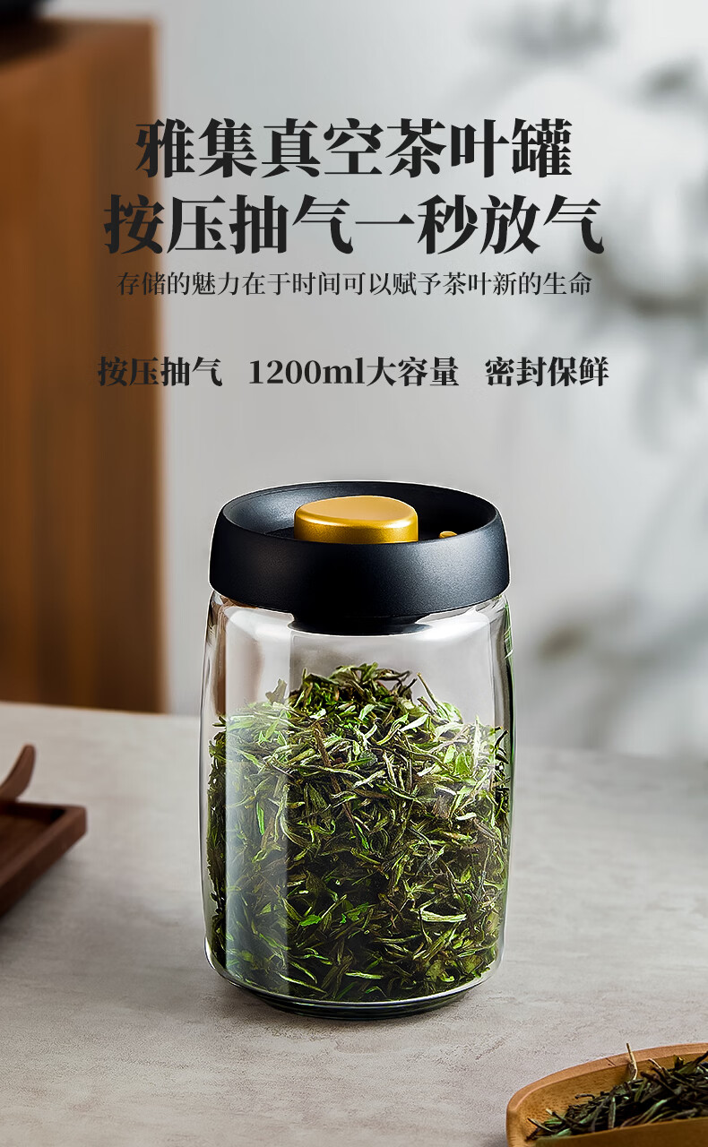 雅集茶具茶叶罐真空密封罐食品级储存茶叶咖啡豆防潮便携玻璃罐1200ml