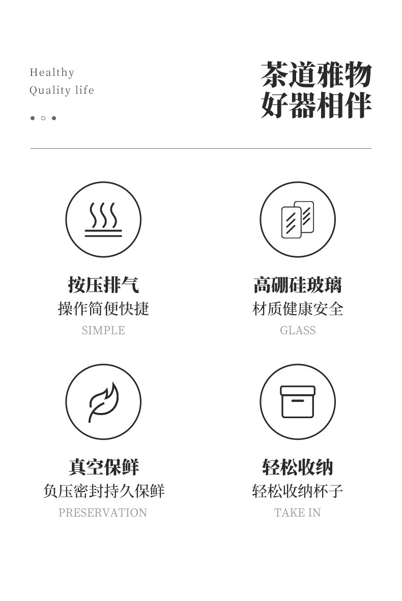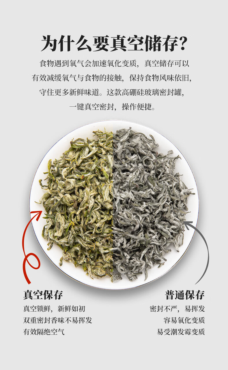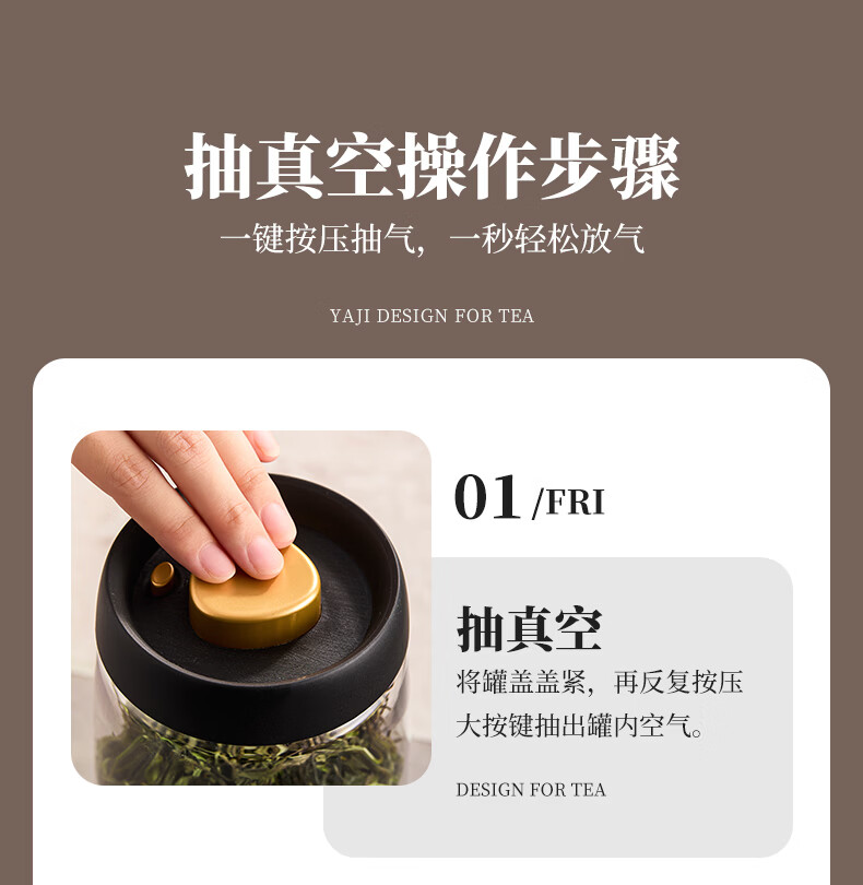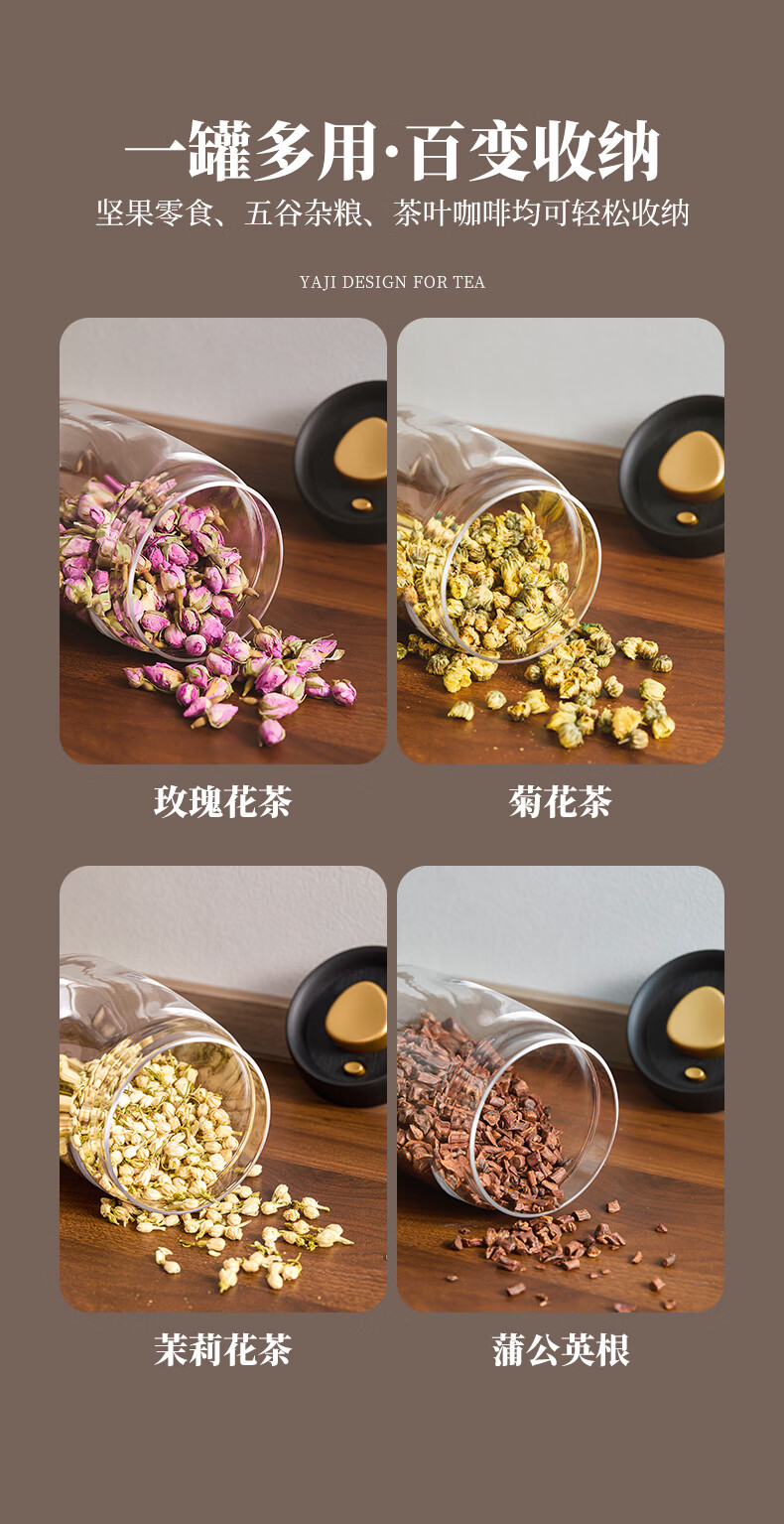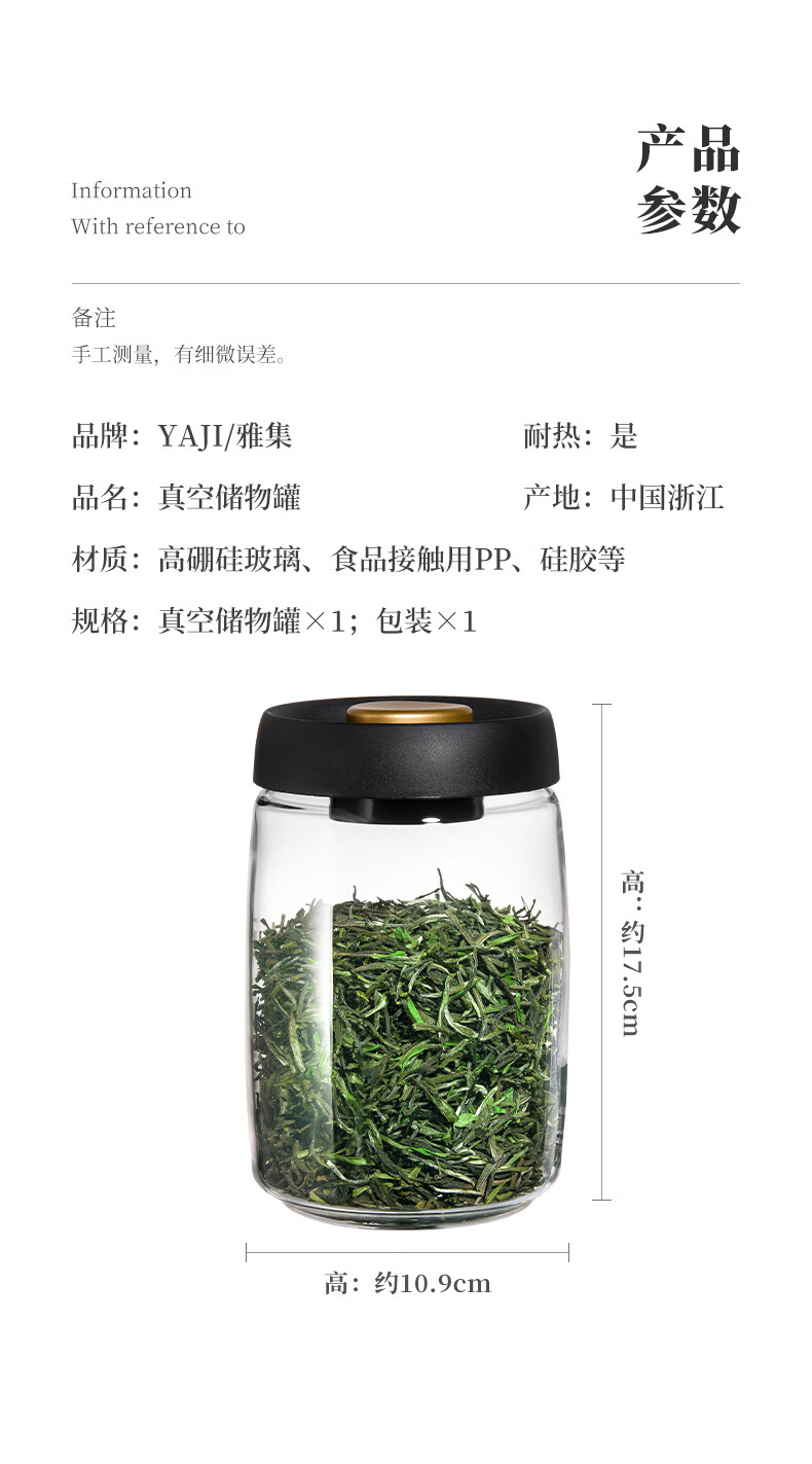 雅集茶具茶叶罐真空密封罐食品级储存茶叶咖啡豆防潮便携玻璃罐1200ml