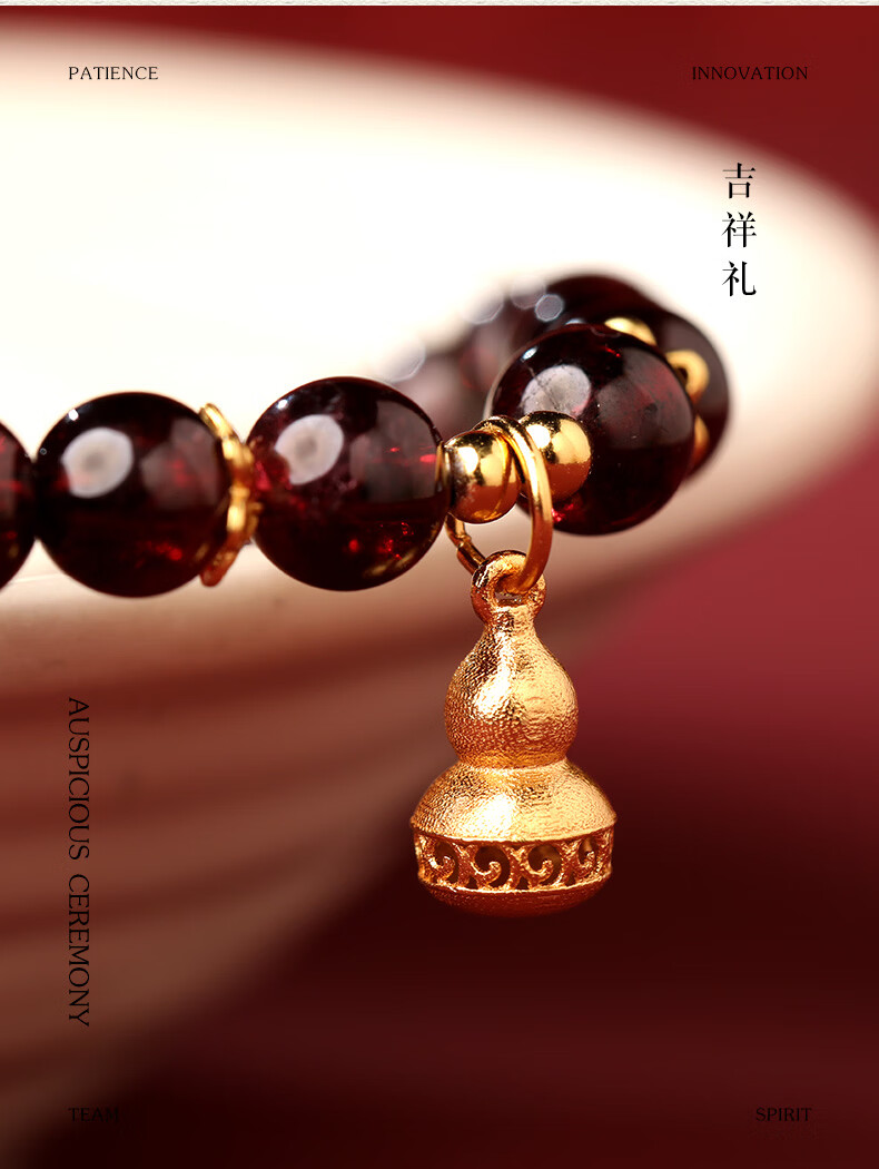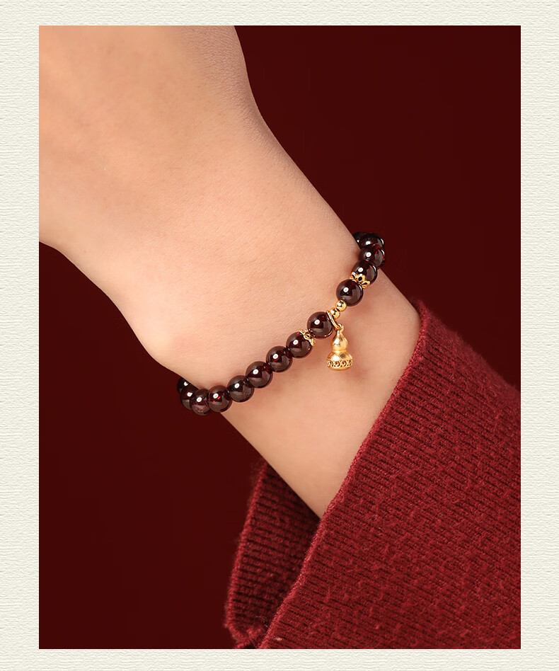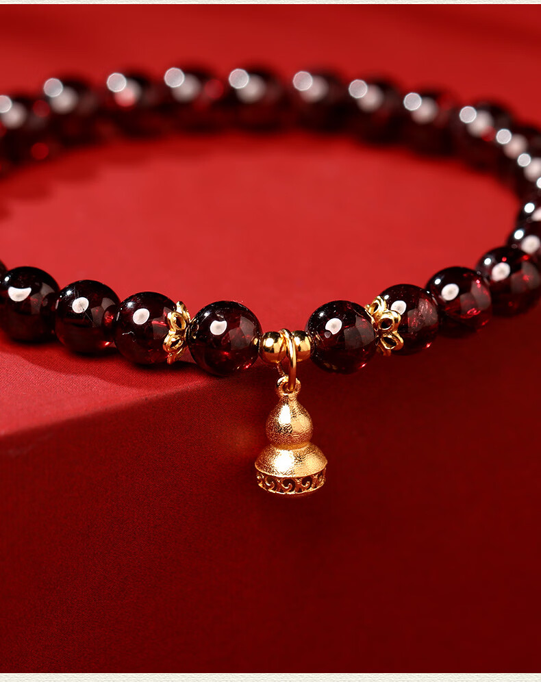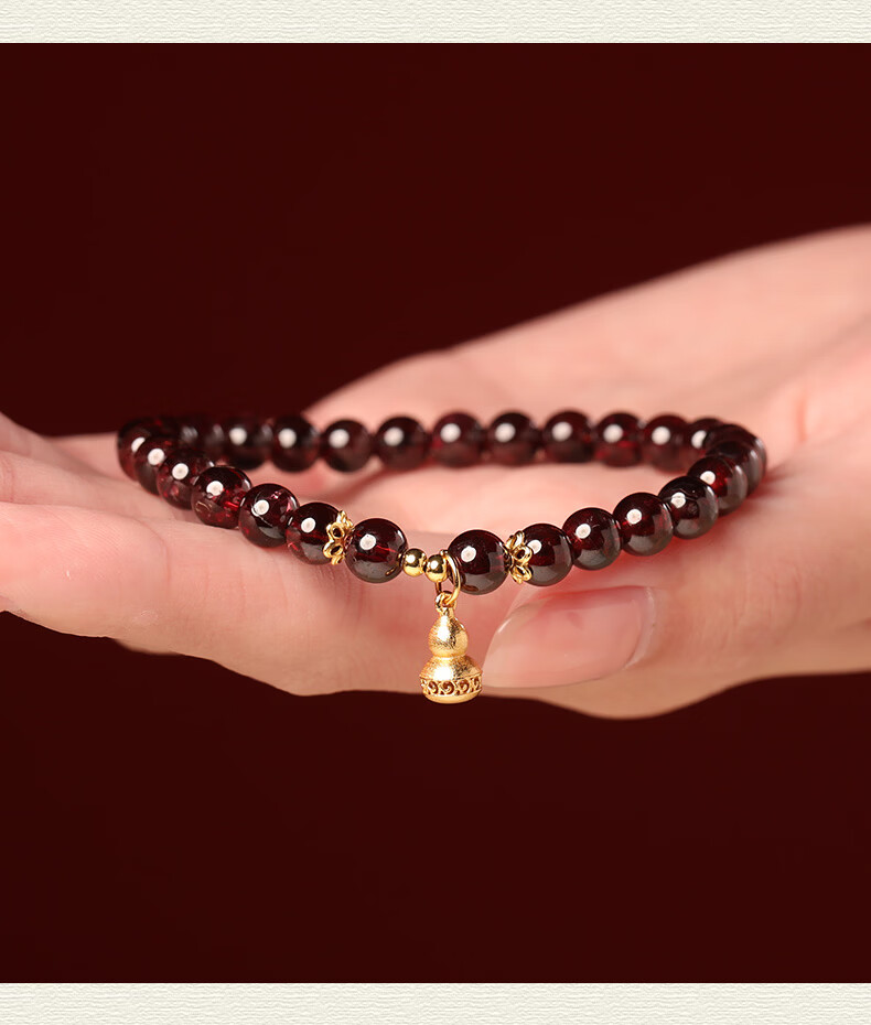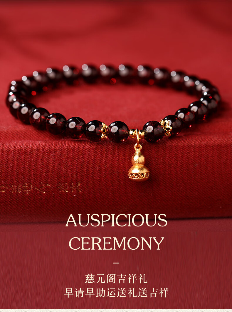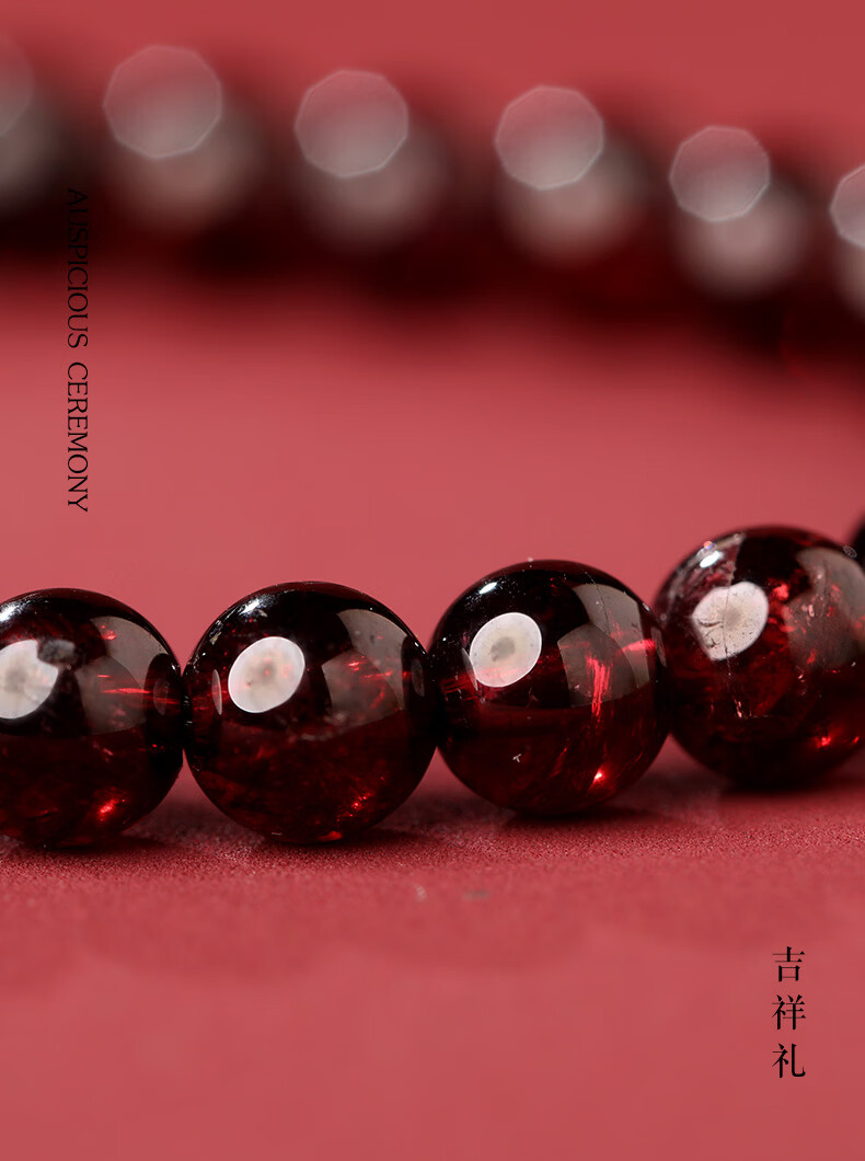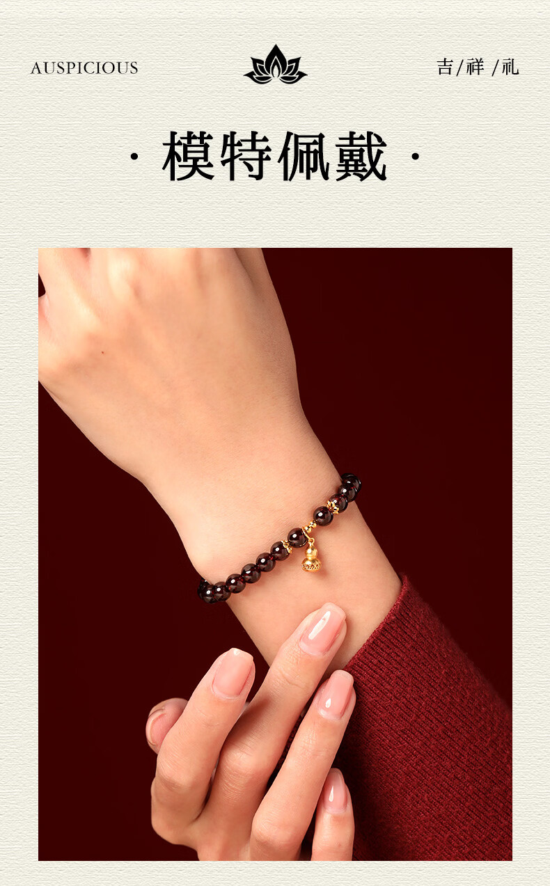 灵机生活馆麦玲玲代言2026马年开运招财手串素圈石榴石手链桃花生日礼物 【开运】升级版素圈石榴石手链(8mm带证书)