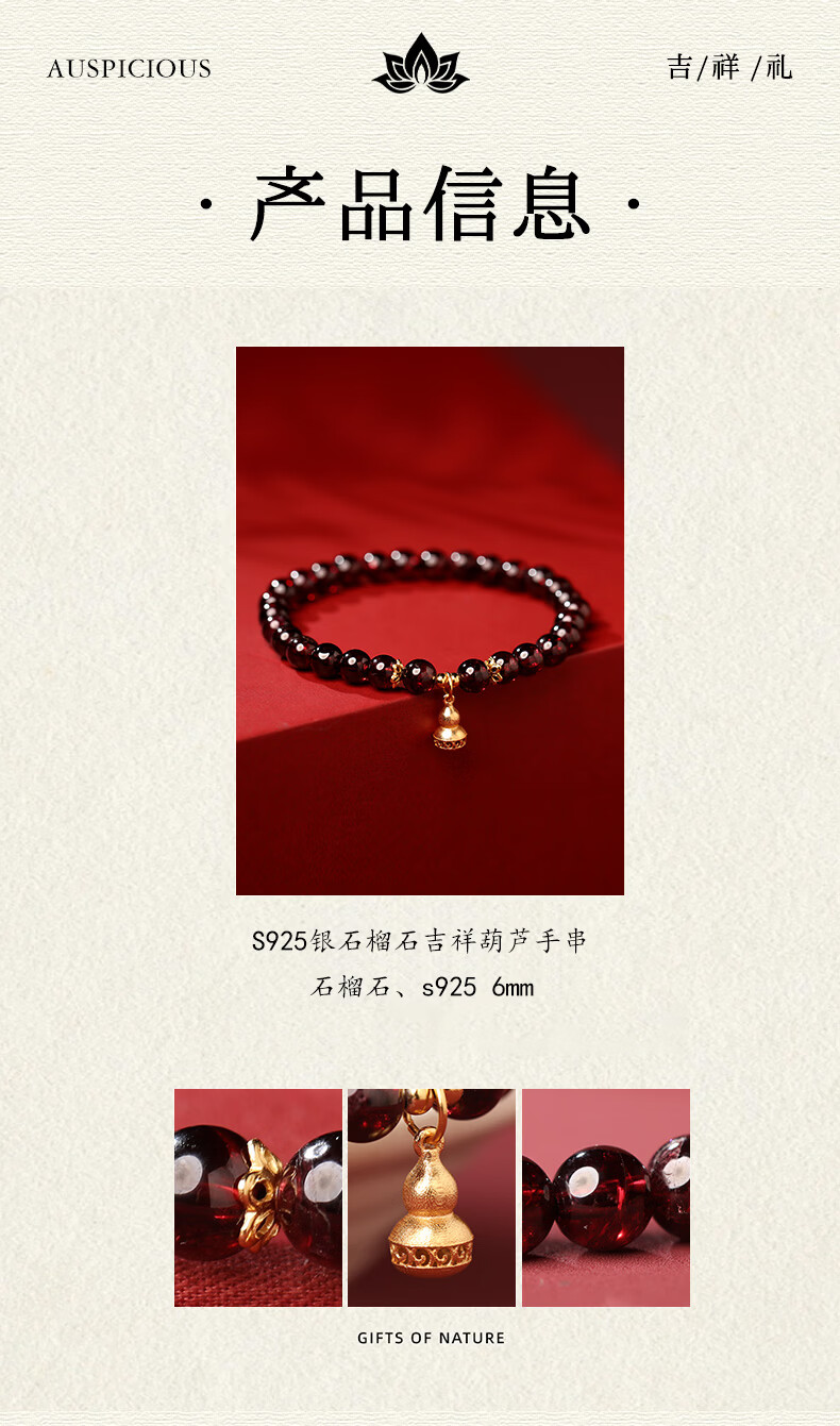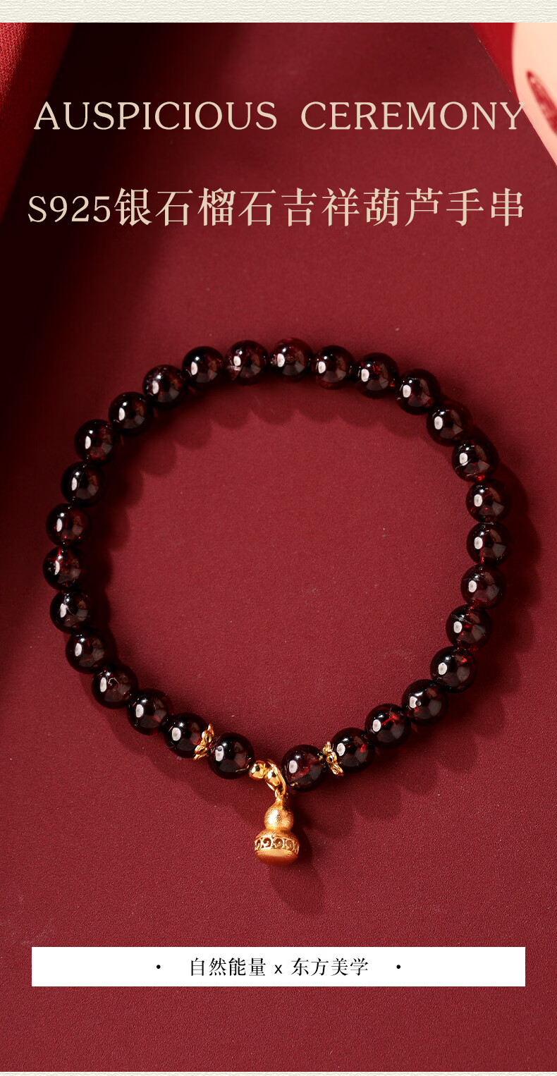 慈元阁马年s925银石榴石吉祥葫芦手串男女士清透情侣手链送女友生日礼物 珠径6mm