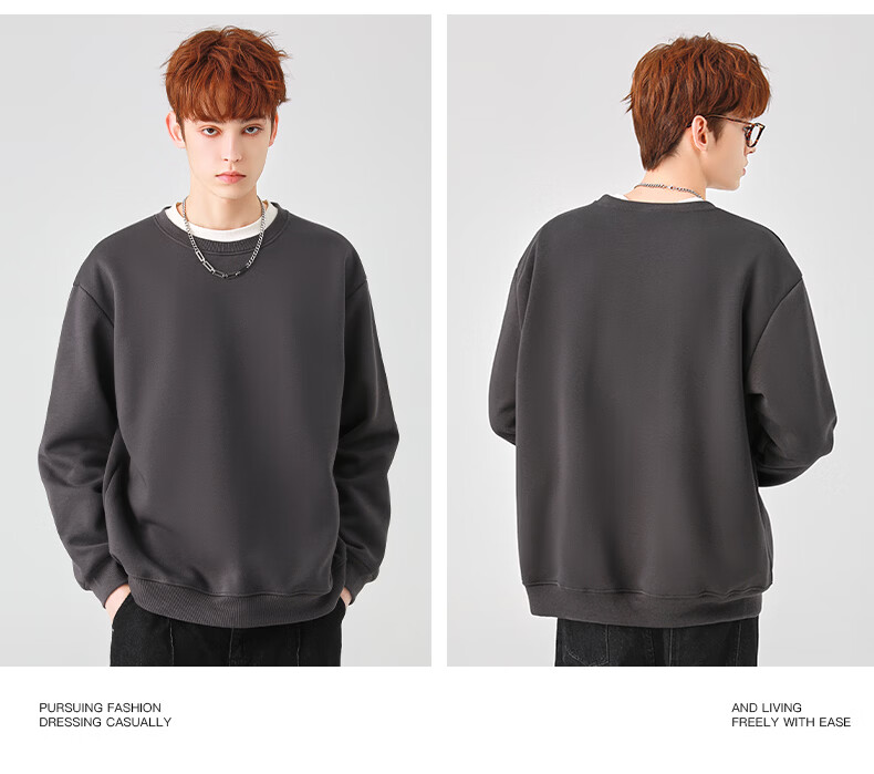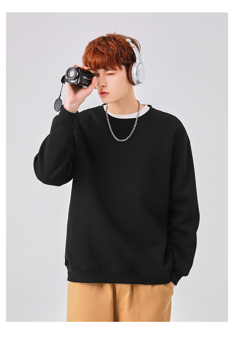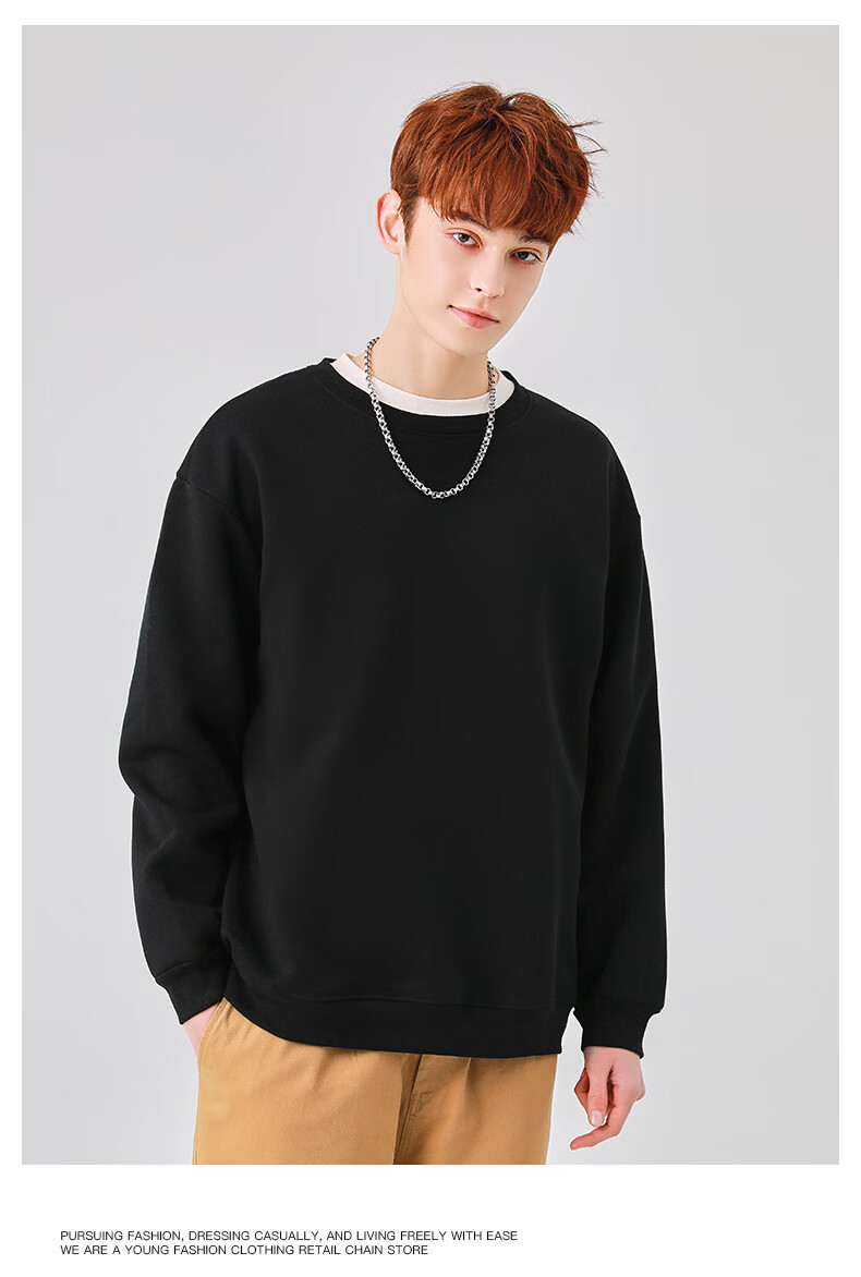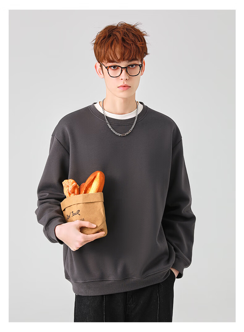 真维斯(Jeanswest)圆领卫衣男春秋款休闲宽松大码男生上衣春秋季2026新款青少年衣服 深紫 斜三角_K S