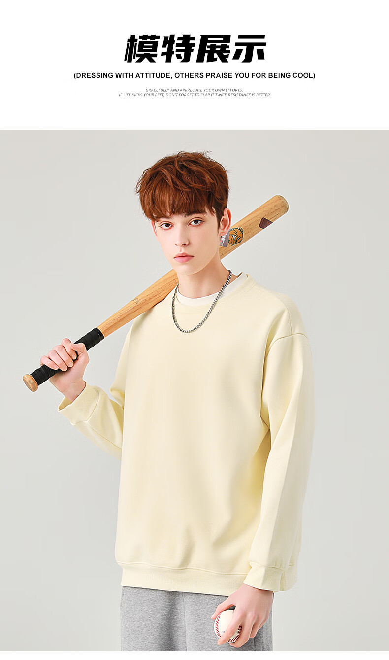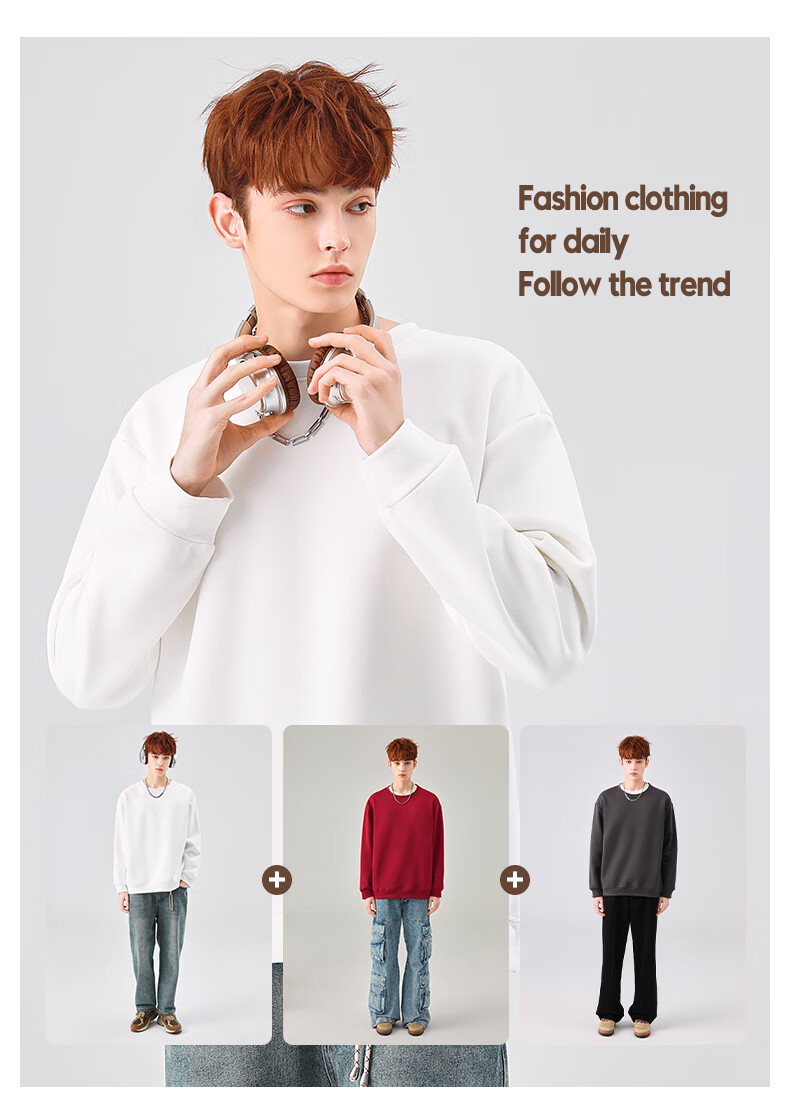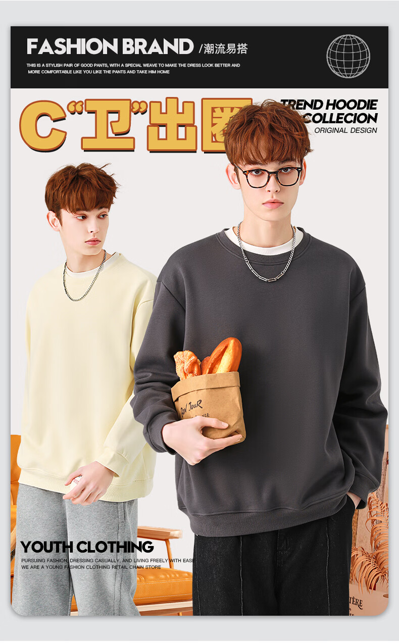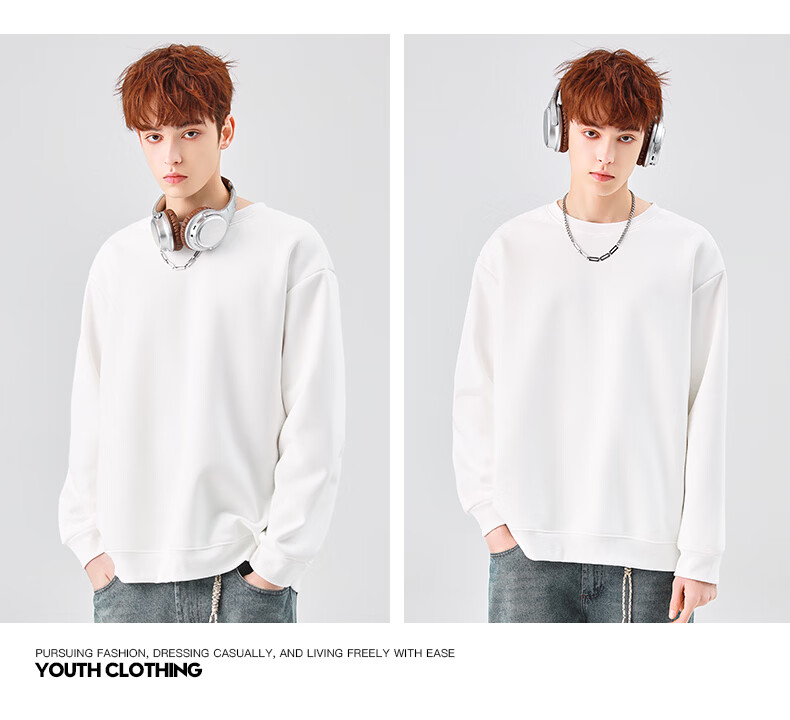 真维斯(Jeanswest)圆领卫衣男春秋款休闲宽松大码男生上衣春秋季2026新款青少年衣服 深紫 斜三角_K S