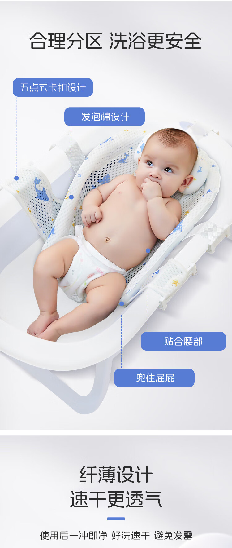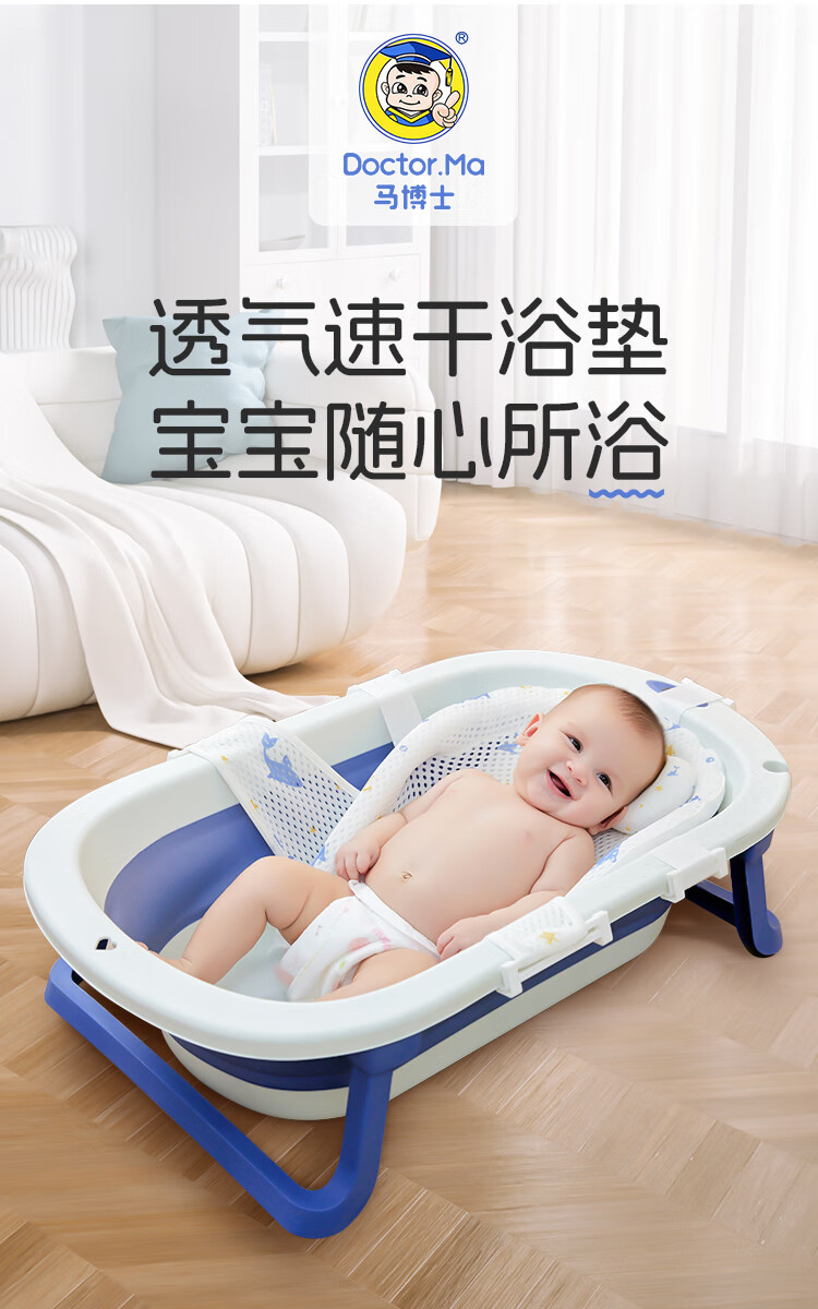马博士婴儿洗澡神器躺托新生儿浴垫宝宝洗澡网兜搭配婴儿洗澡盆通用鲸鱼