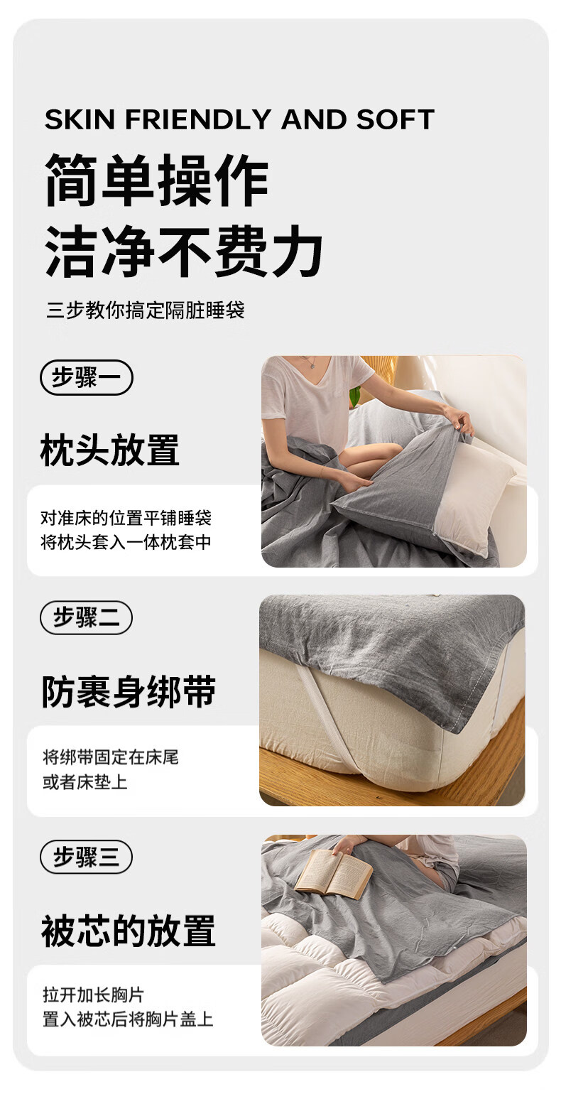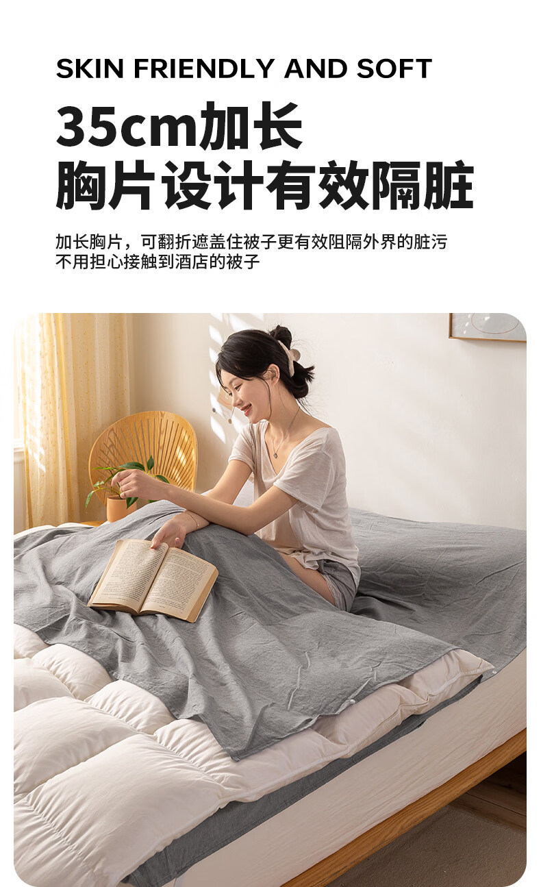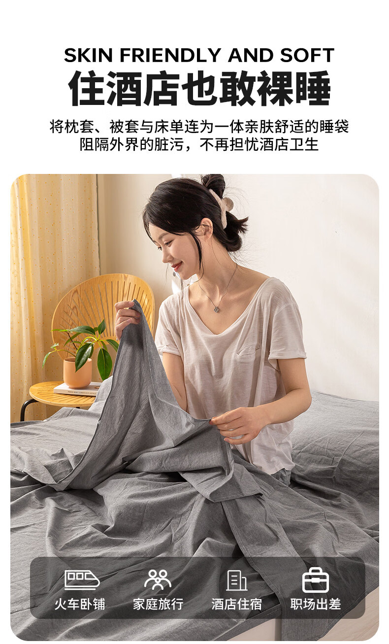 名创优品(MINISO)全棉旅行睡袋 出差旅行便捷式酒店隔脏被单床单被套一体式 miniso-浅灰 80cm*210cm