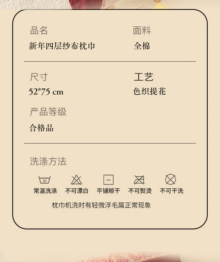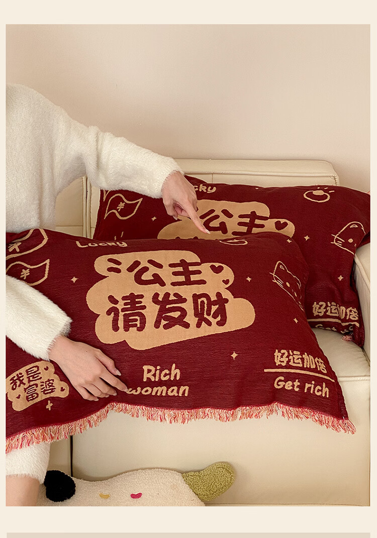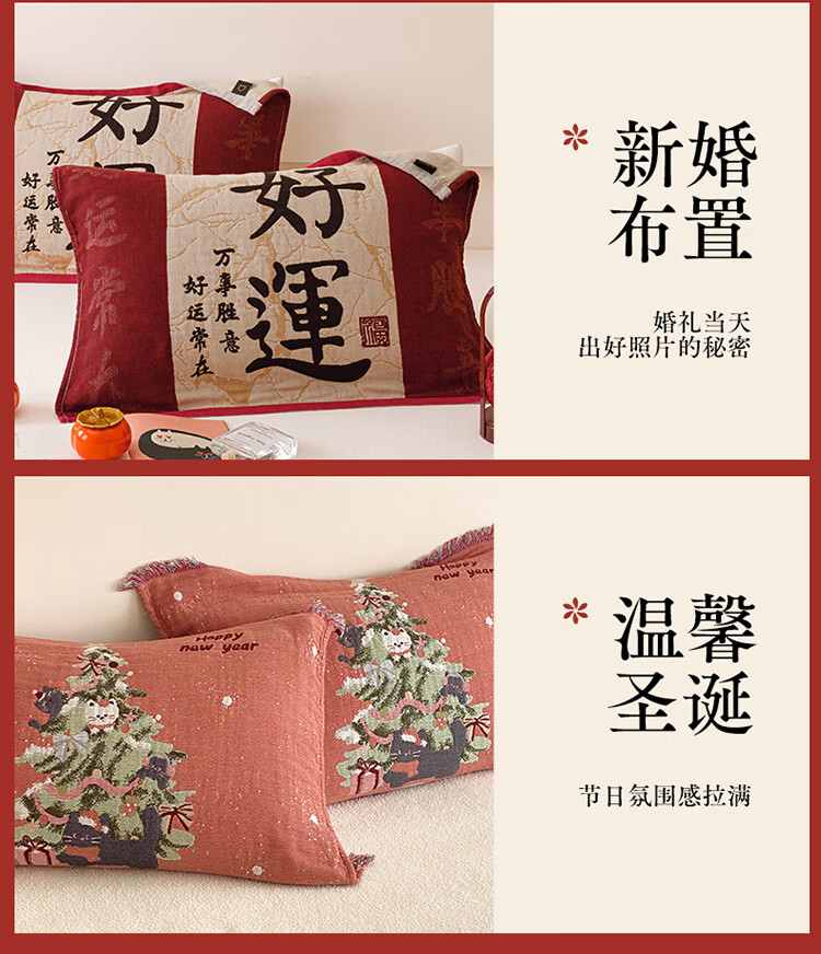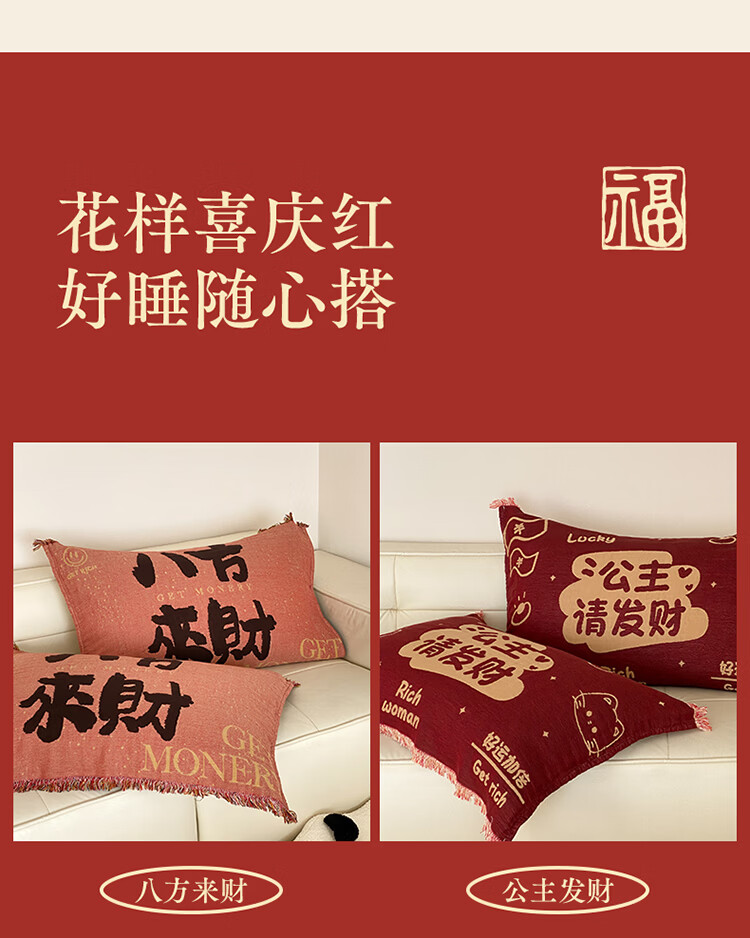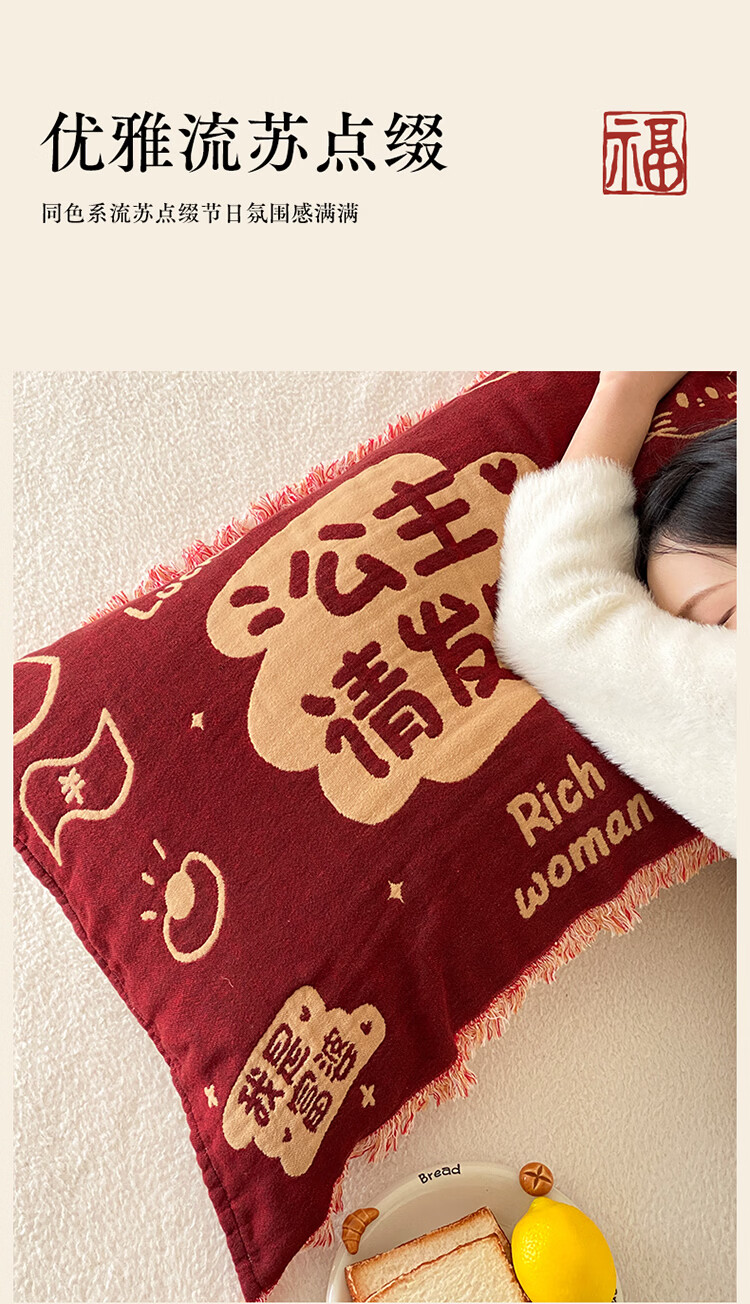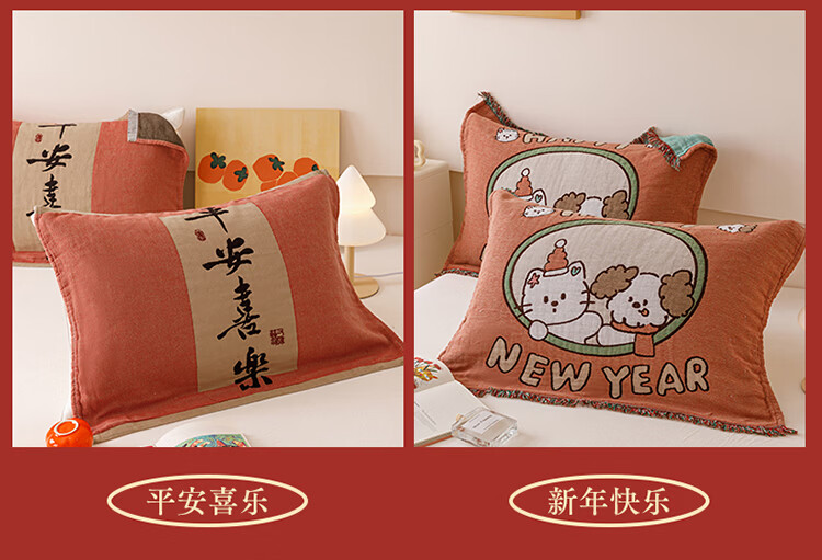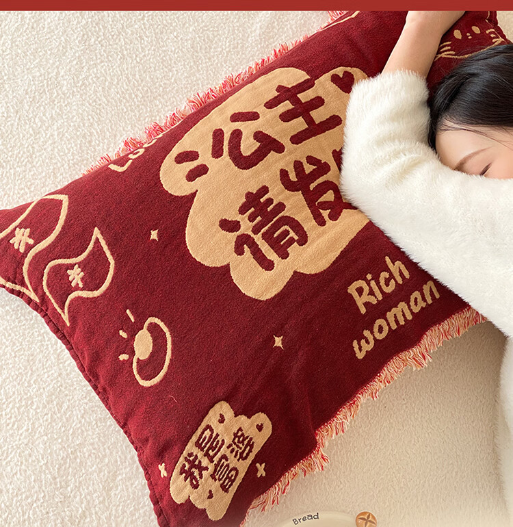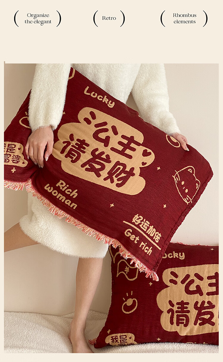 无印良品加厚枕巾全棉一对装100%纯棉纱布百福枕头巾2026新年款喜庆枕头套 公主发财【加厚全棉 四层纱布】 52cm*75cm 枕巾一对
