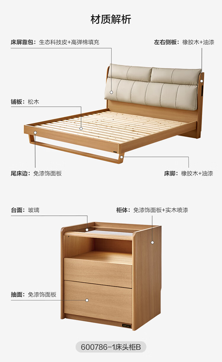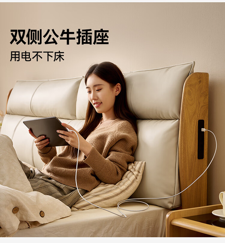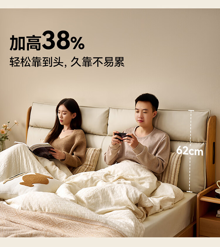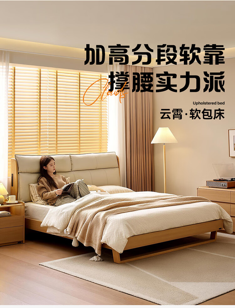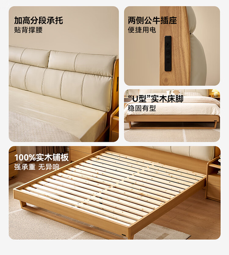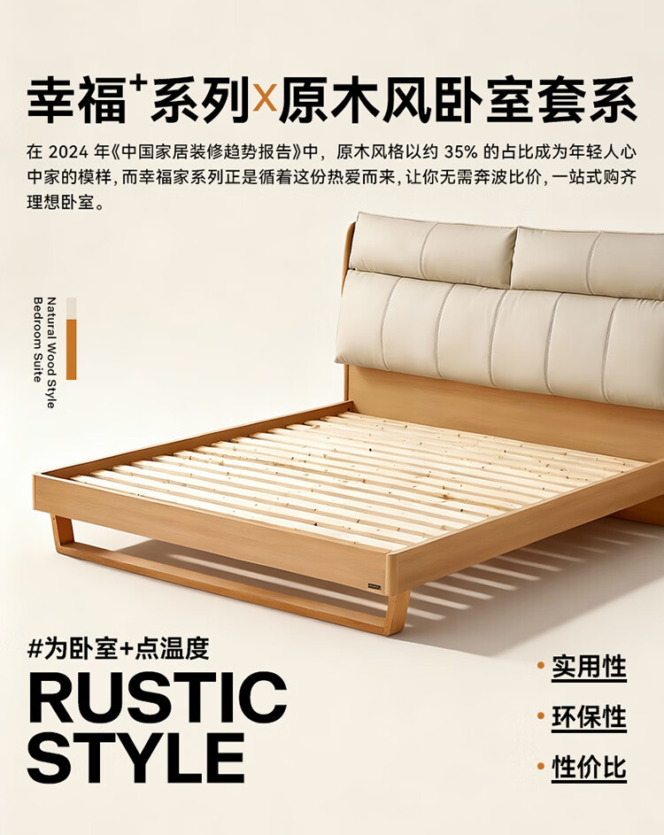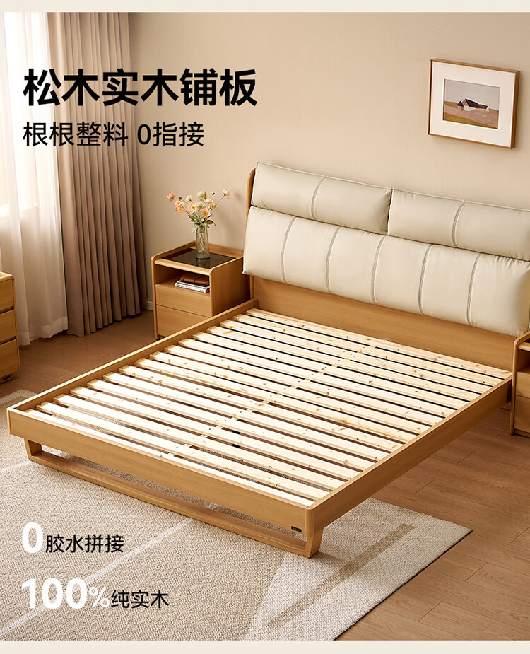 全友家居原木风床头软包靠背多功能床2026新款卧室双人床高脚储物大床 【公牛插座 | 松木铺板】 1.8米x2米 单床
