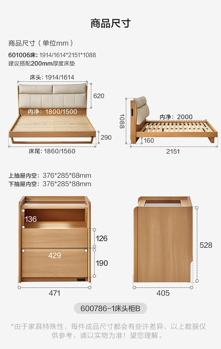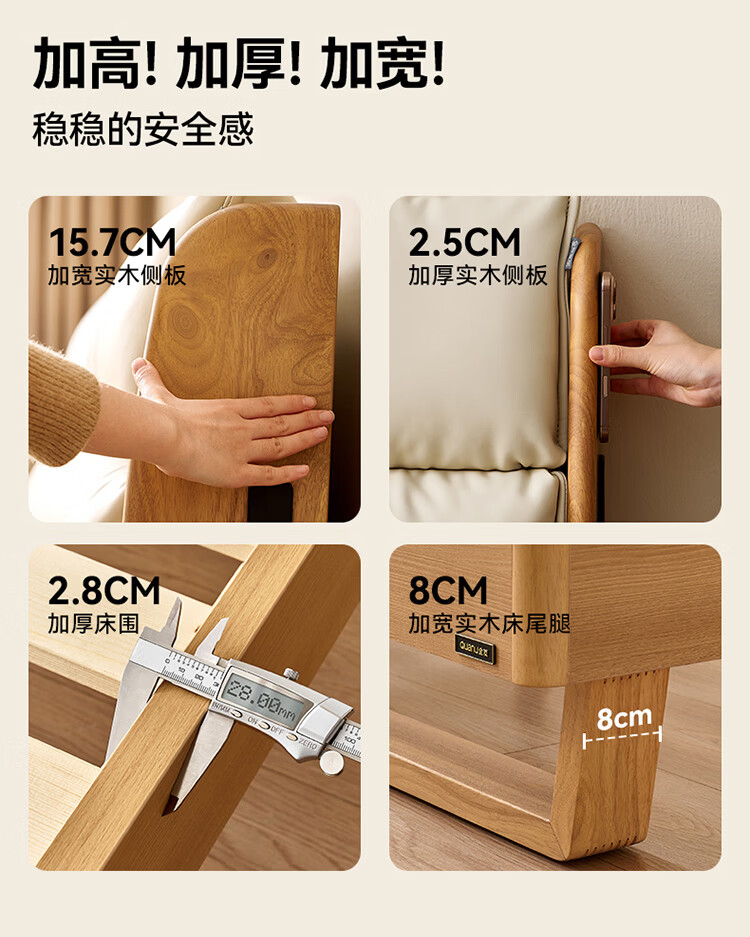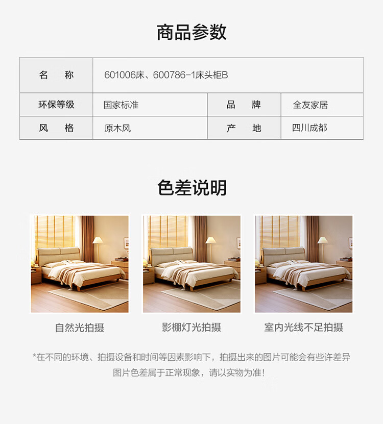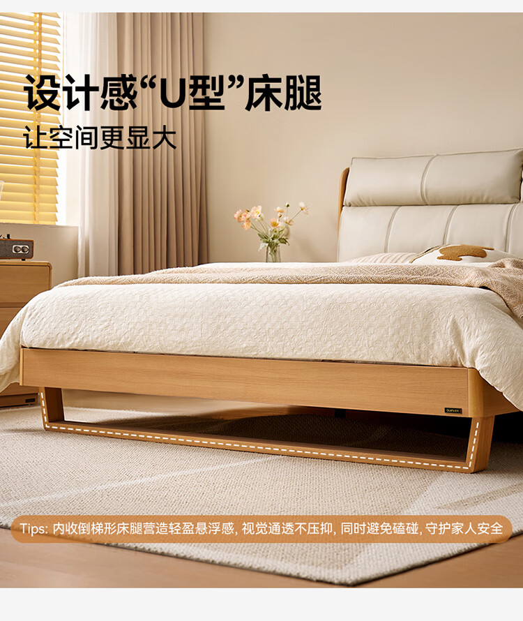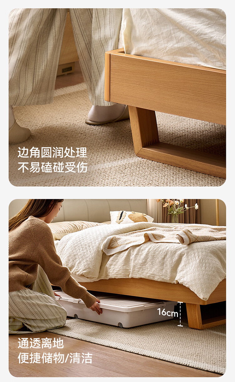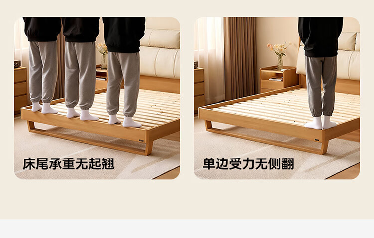 全友家居原木风床头软包靠背多功能床2026新款卧室双人床高脚储物大床 【公牛插座 | 松木铺板】 1.8米x2米 单床