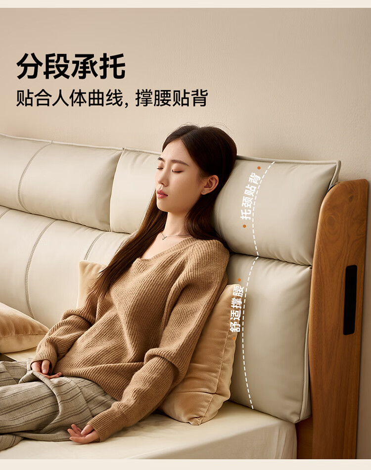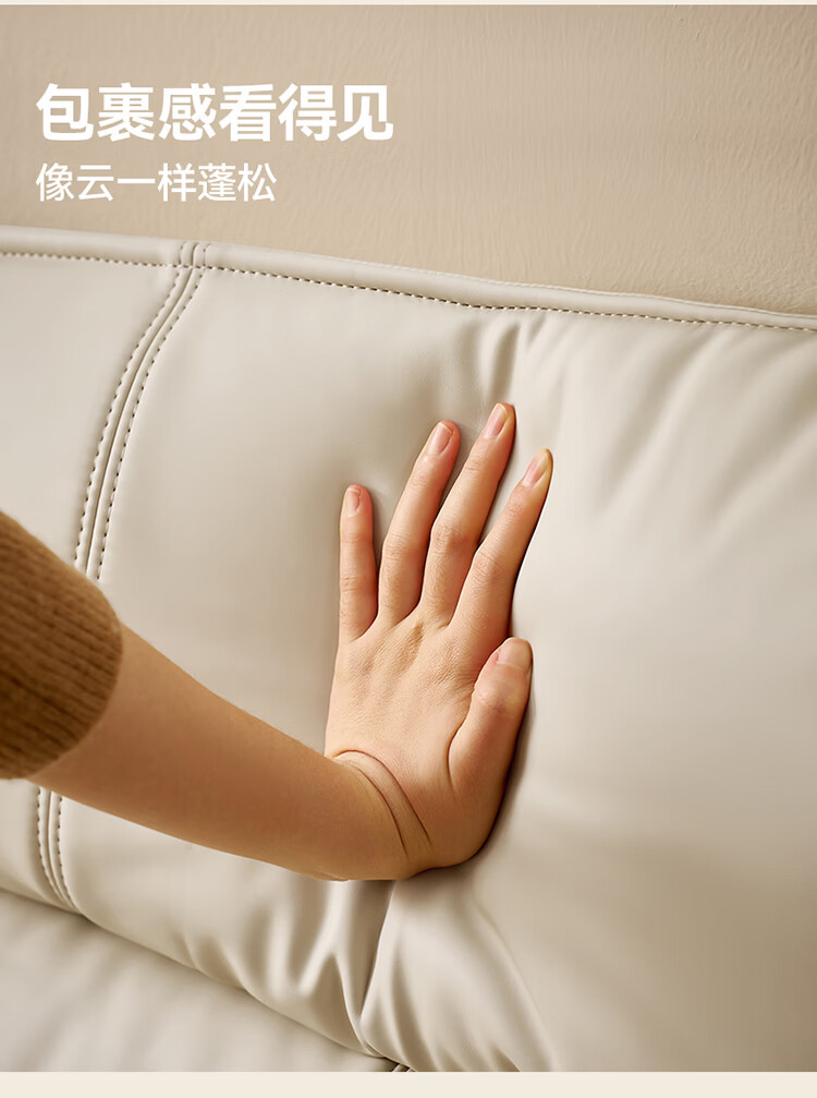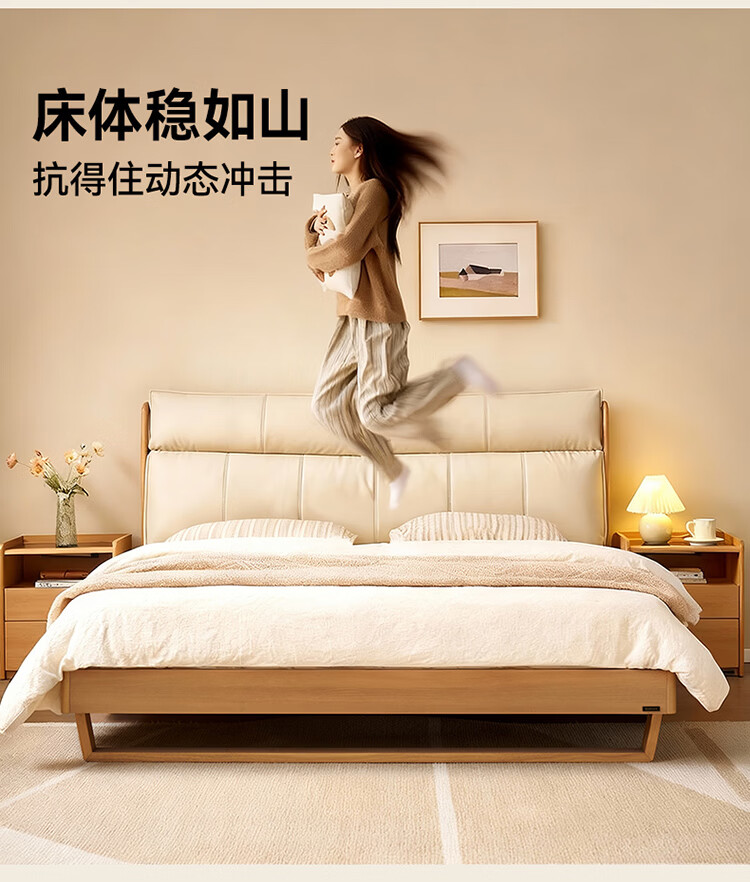 CBD家居现代简约真皮软包床双人主卧大床奶油风婚床头层牛皮甜心悬浮 甜心悬浮-奶油白单床 卷帘排骨架 1500*2000