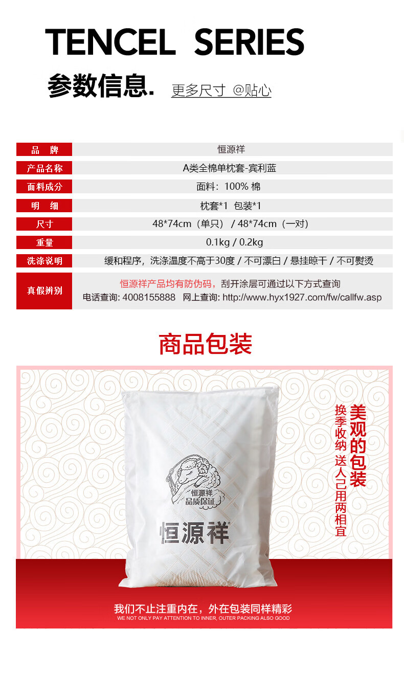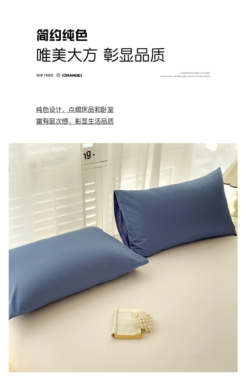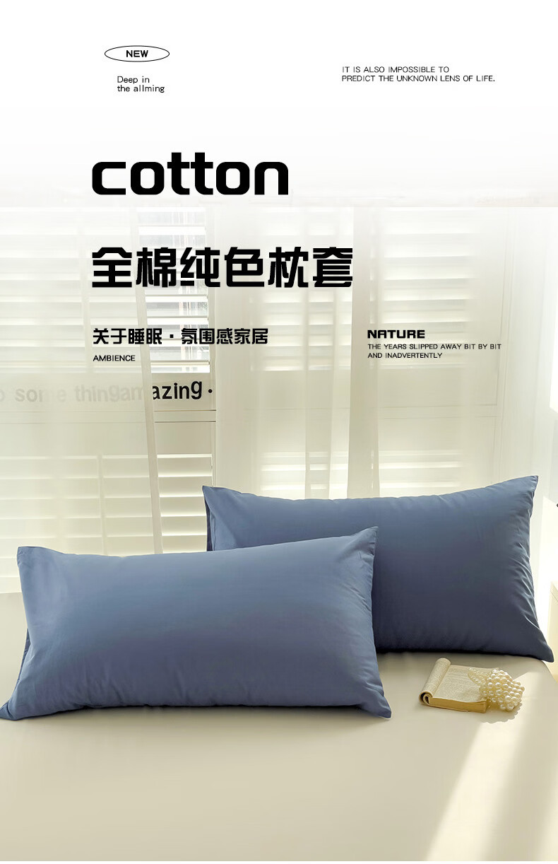 恒源祥 枕套 A类100%棉简约纯色枕套舒适透气可机洗家用学生宿舍单枕套 柔雾粉 48*74cm/单只