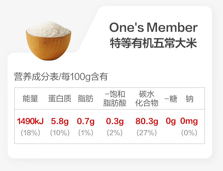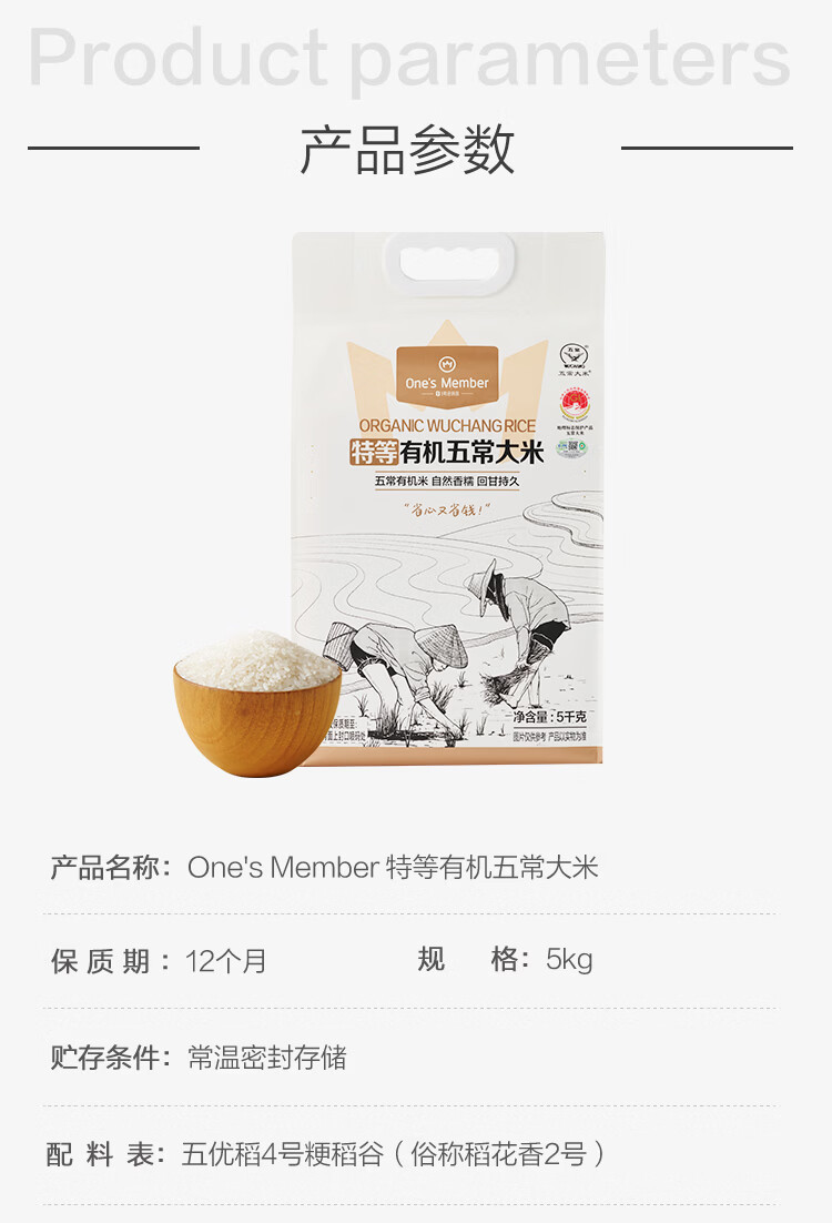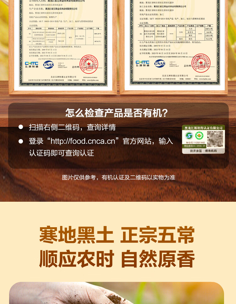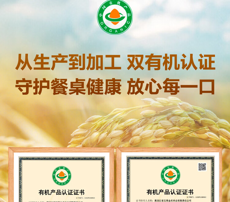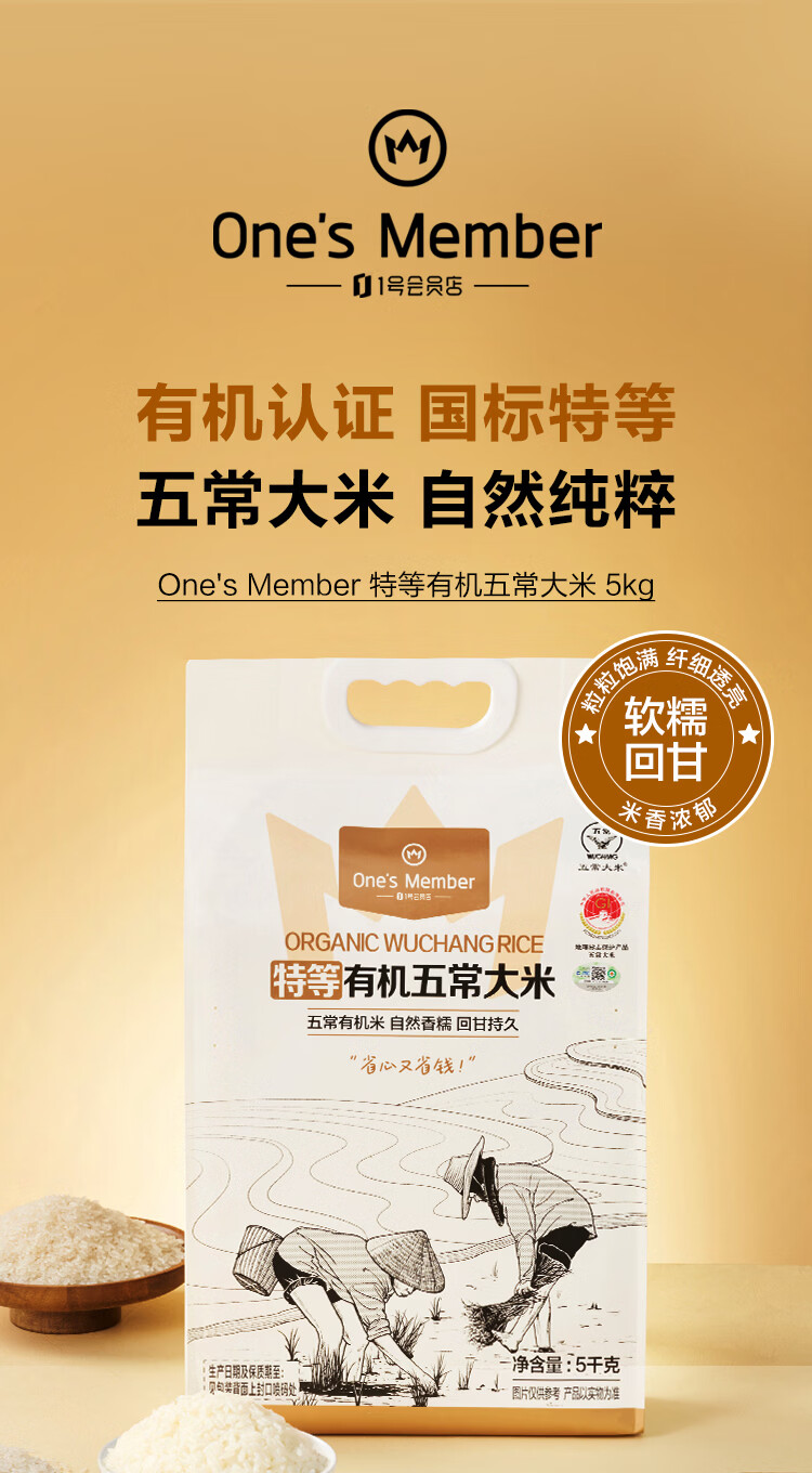 1号会员店特等有机五常大米 5kg 原粮稻花香2号 GB/T19266 【25年新米】
