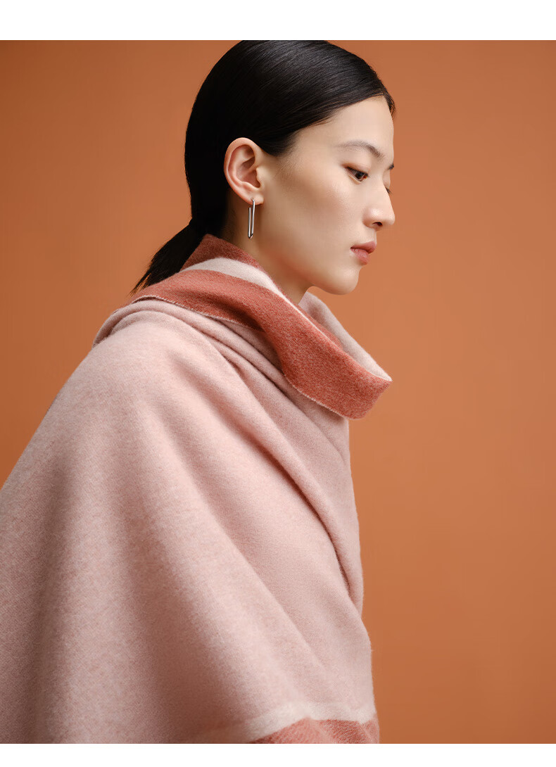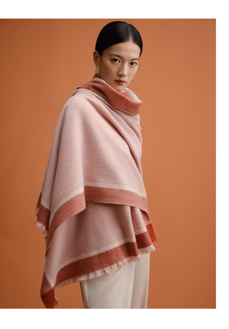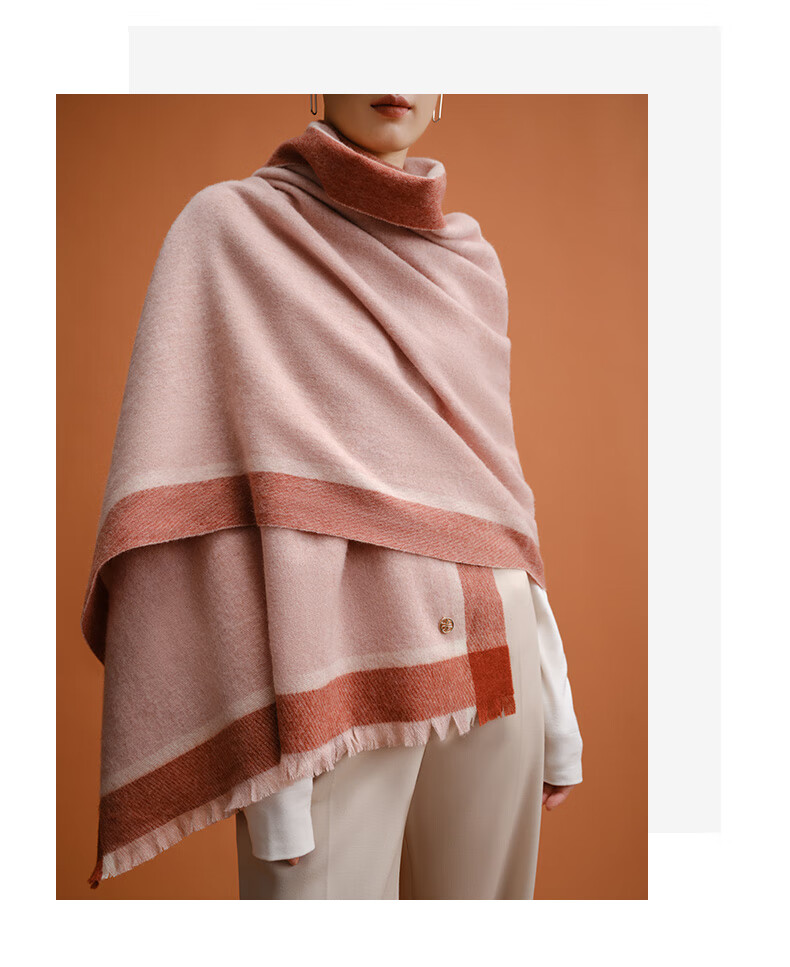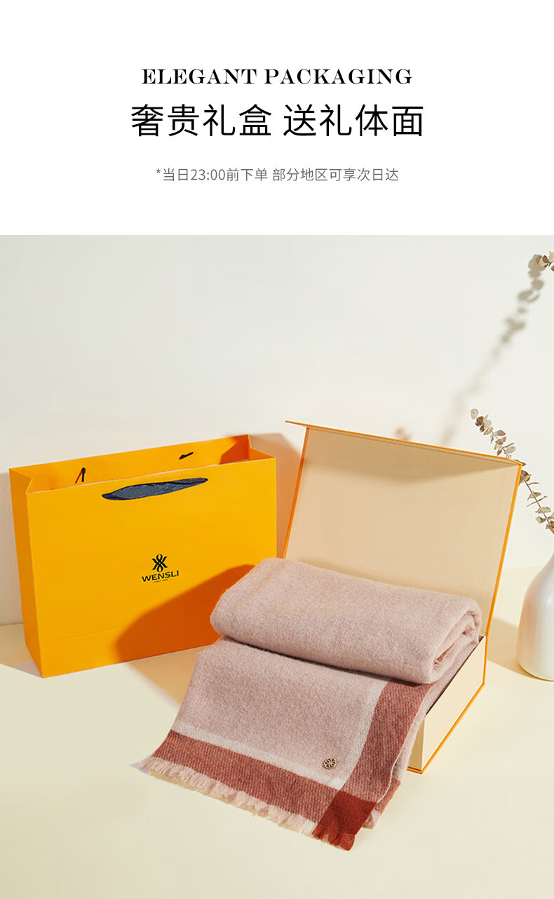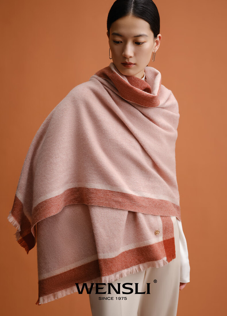 万事利WENSLI羊毛围巾女士冬款披加厚围脖红围巾送妈妈礼盒装 淳净 粉色