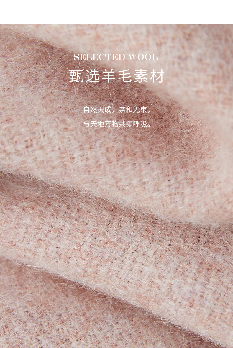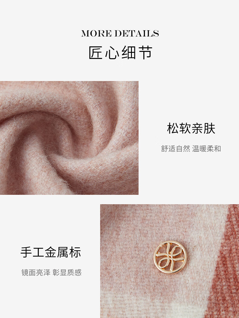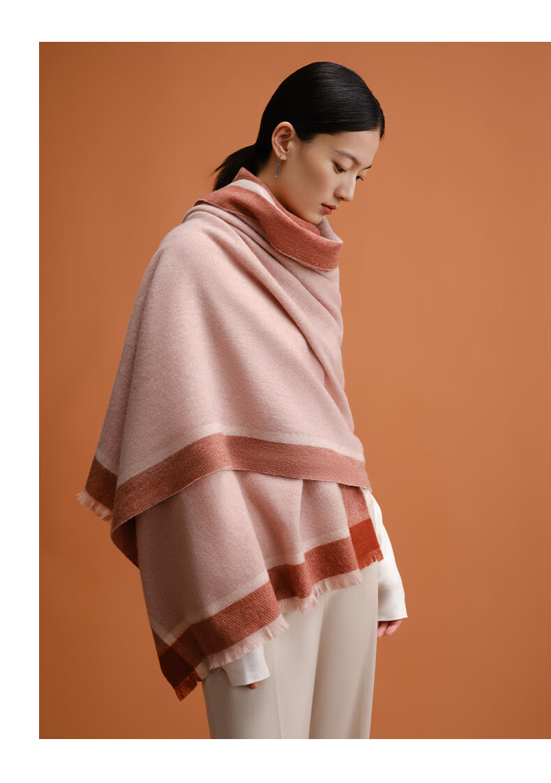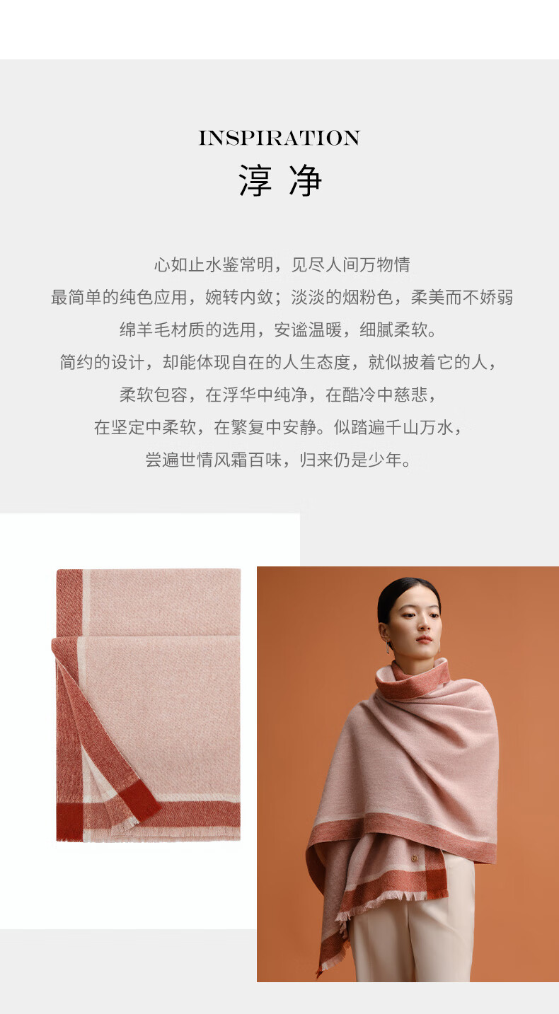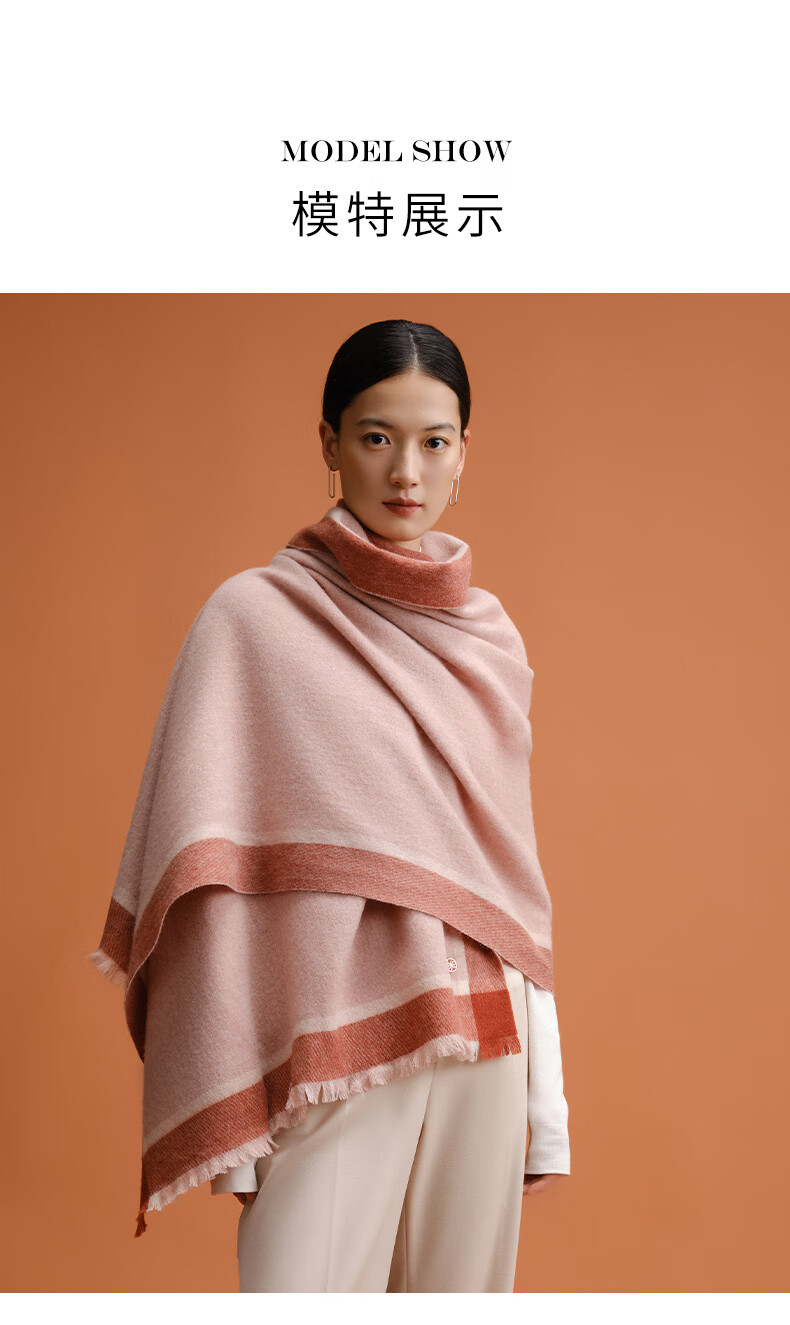 万事利WENSLI羊毛围巾女士冬款披加厚围脖红围巾送妈妈礼盒装 淳净 粉色