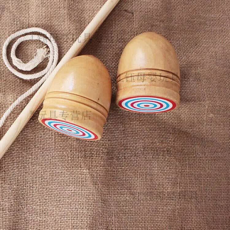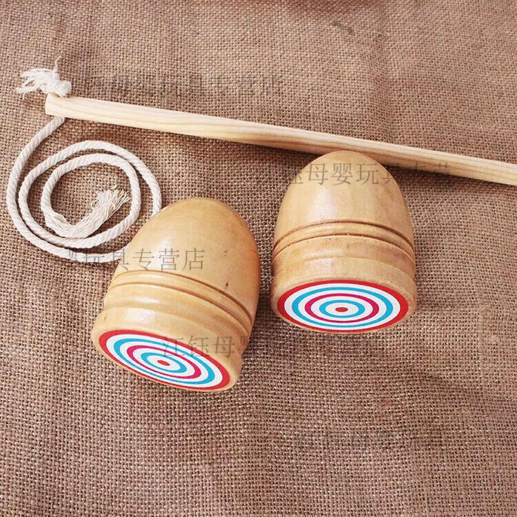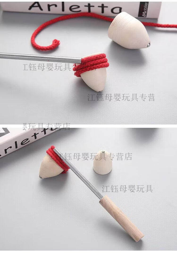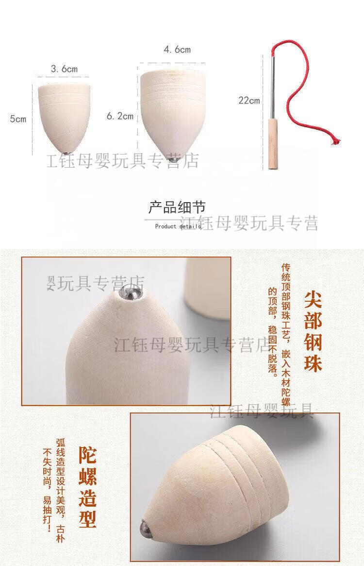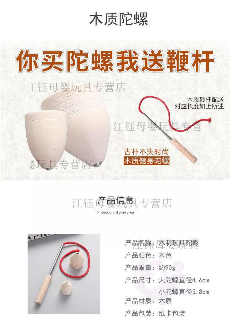 卡佰索实木大号陀螺带鞭怀旧健身玩具 (共四个)小号赠送鞭子
