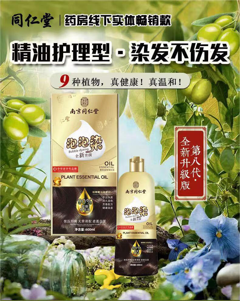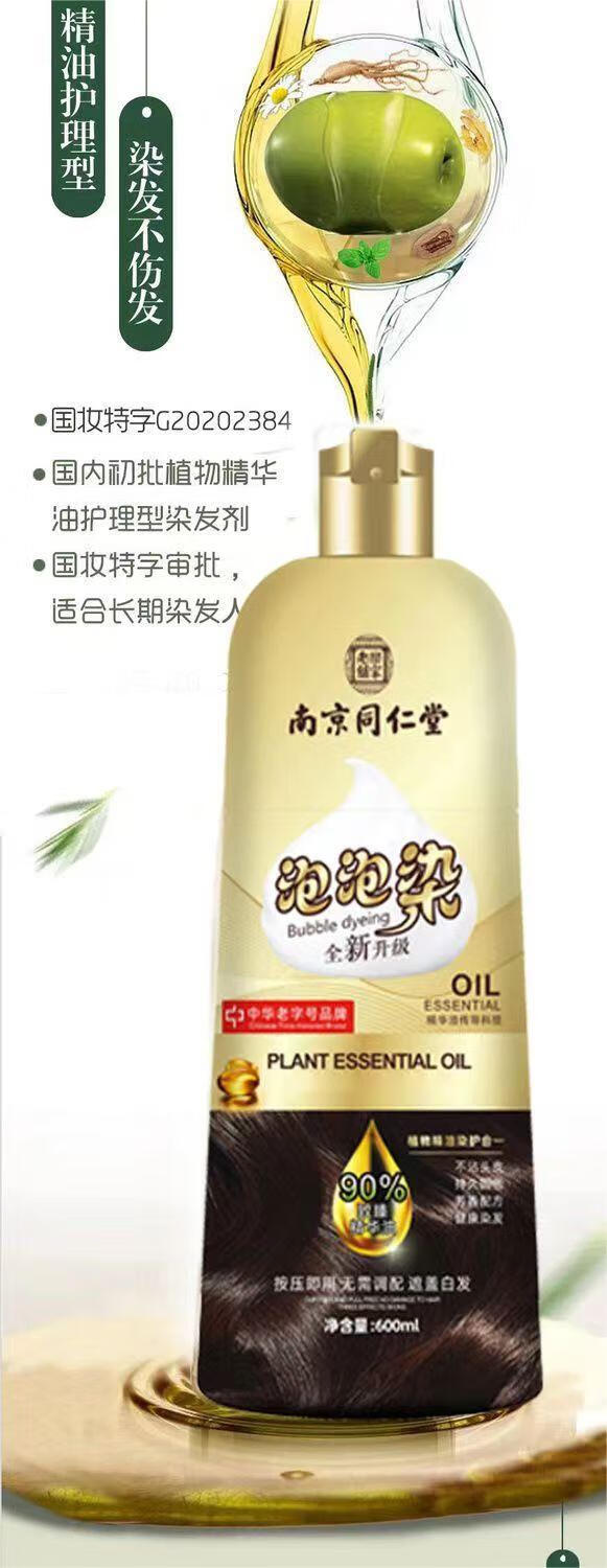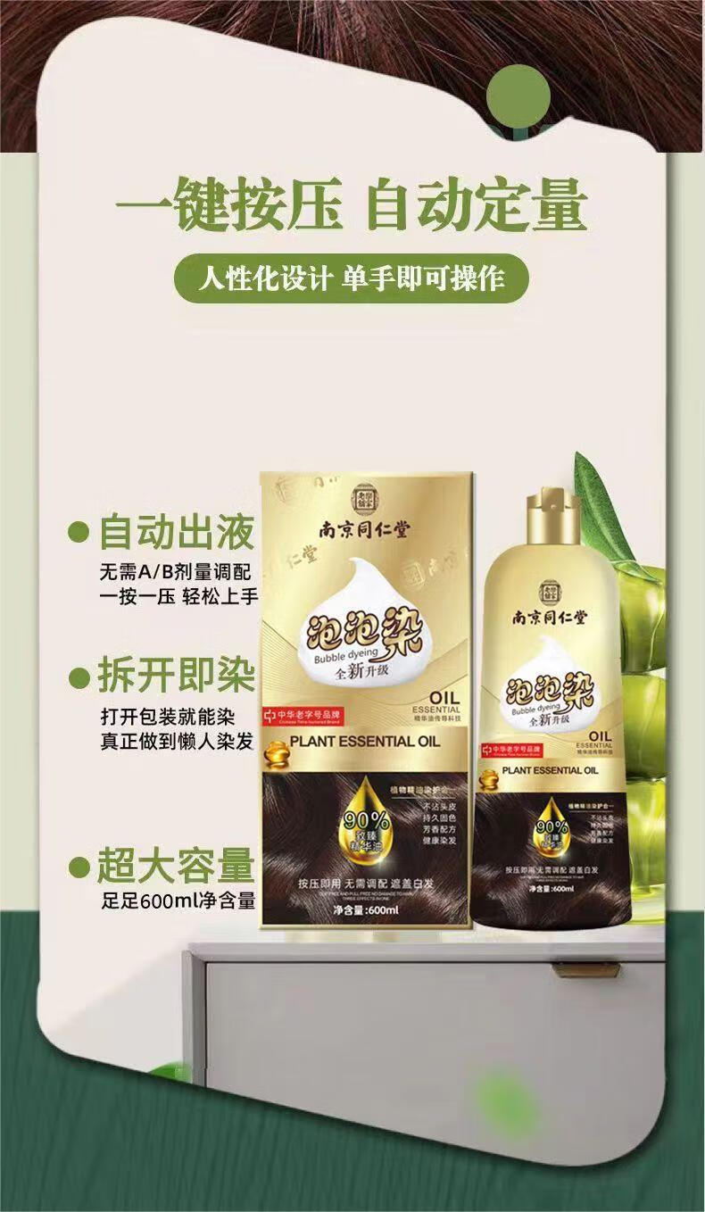 同仁堂孕妇可用染发剂植物精油泡泡染天然无刺激纯染发膏不沾头皮 咖啡色泡泡染健康遮盖 600mL