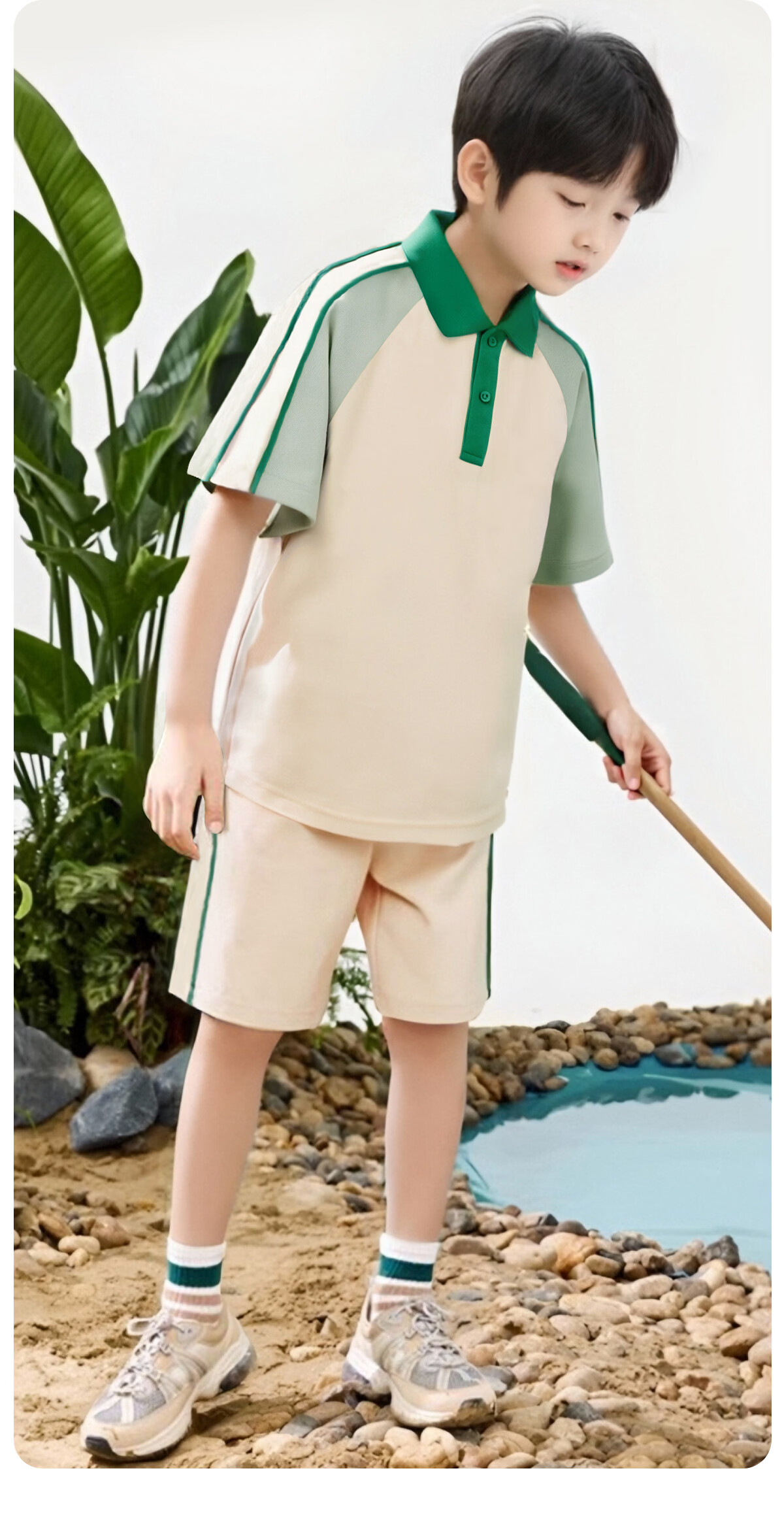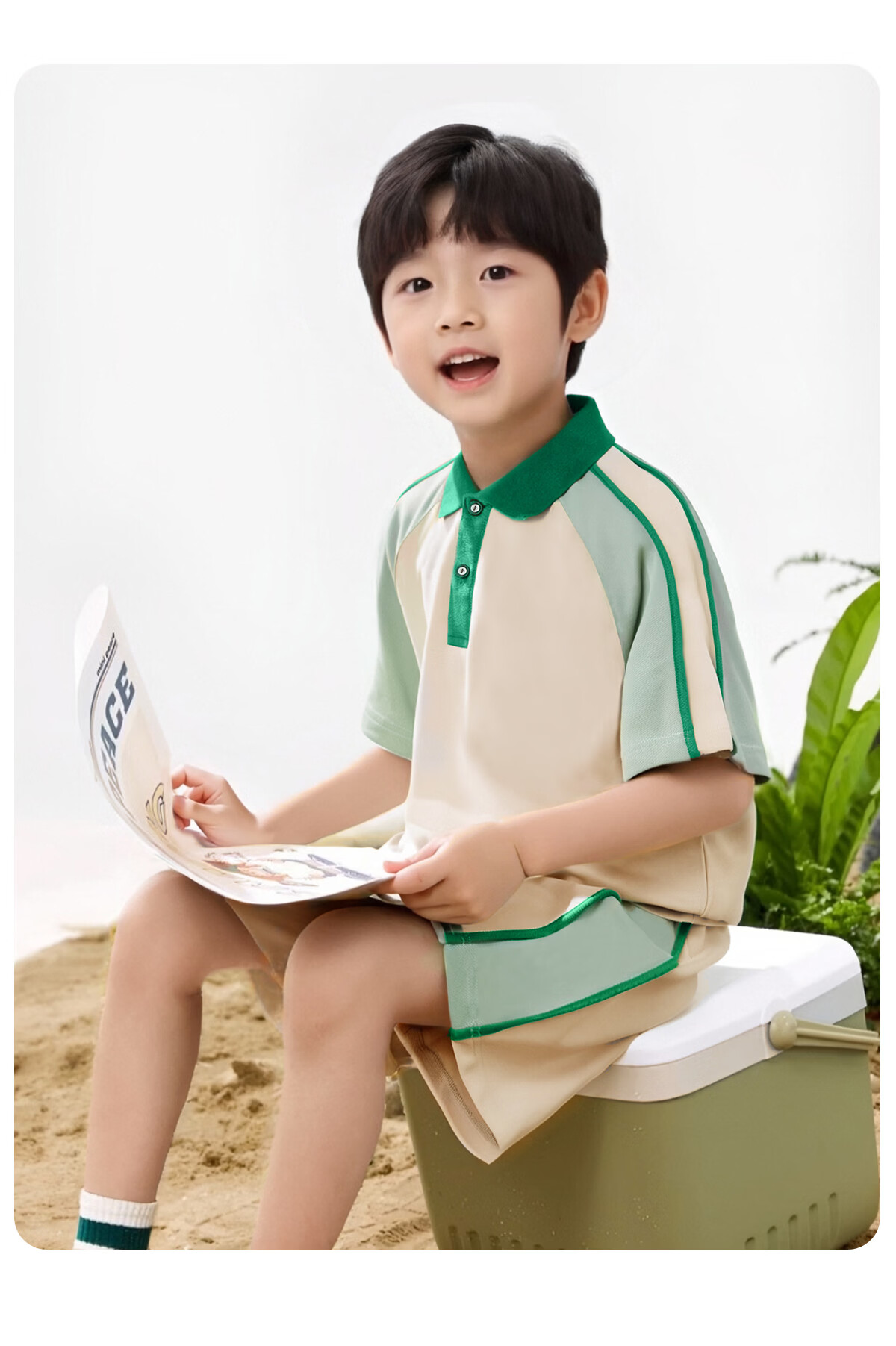 马克华菲(MARK FAIRWHALE)童装男女童凉感polo衫儿童t恤2026新款中大童速干套装 M脆脆鲨K绿白+纯色绿白 120