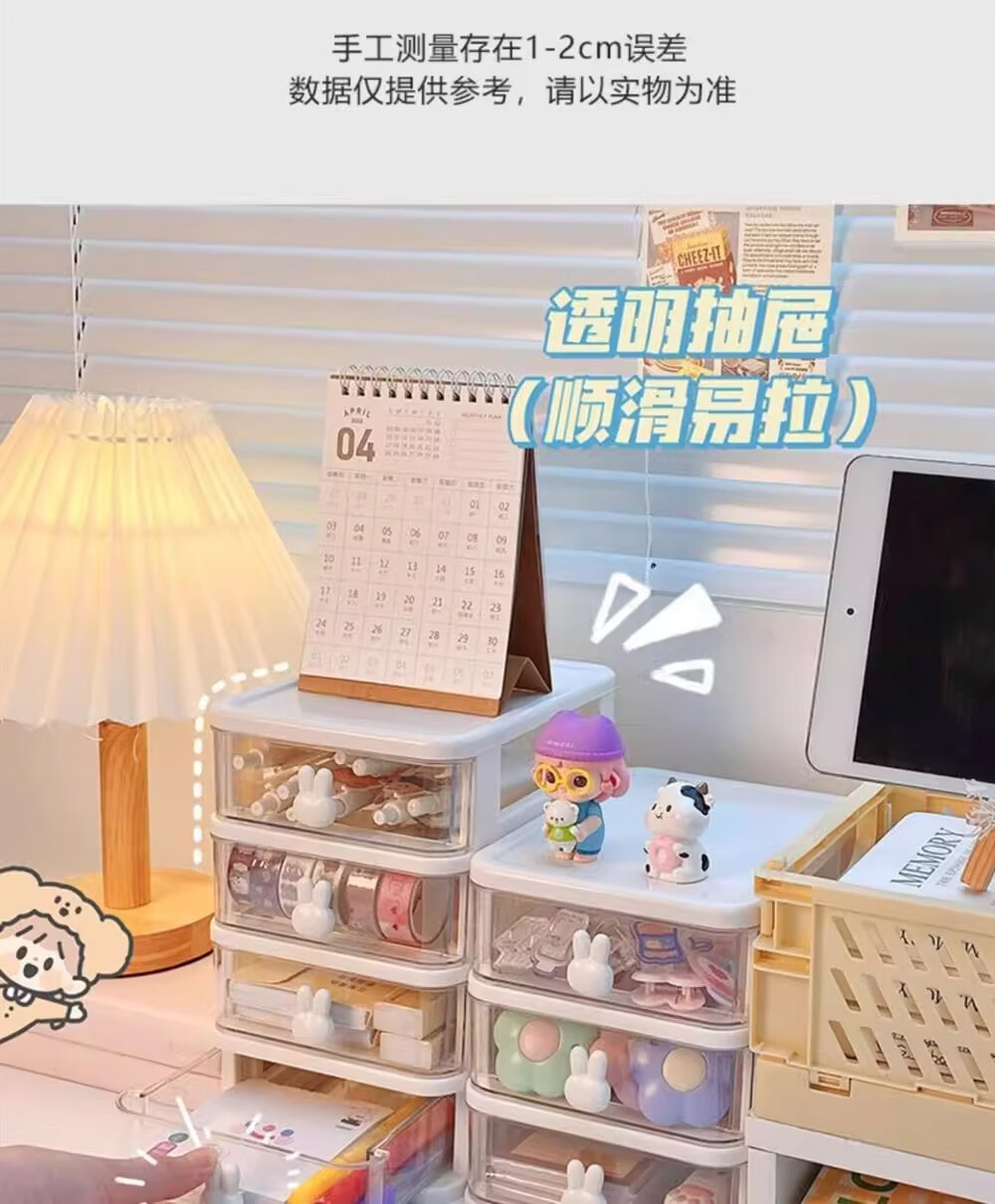 纳有风收纳卡通桌面盒透明小抽屉式书桌塑料迷你储物盒兔子文具整理盒 颜色随机发货【3层】