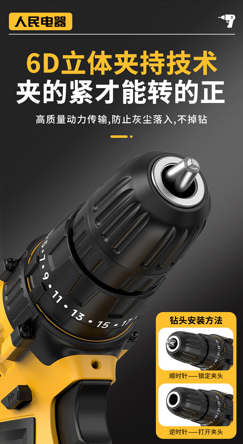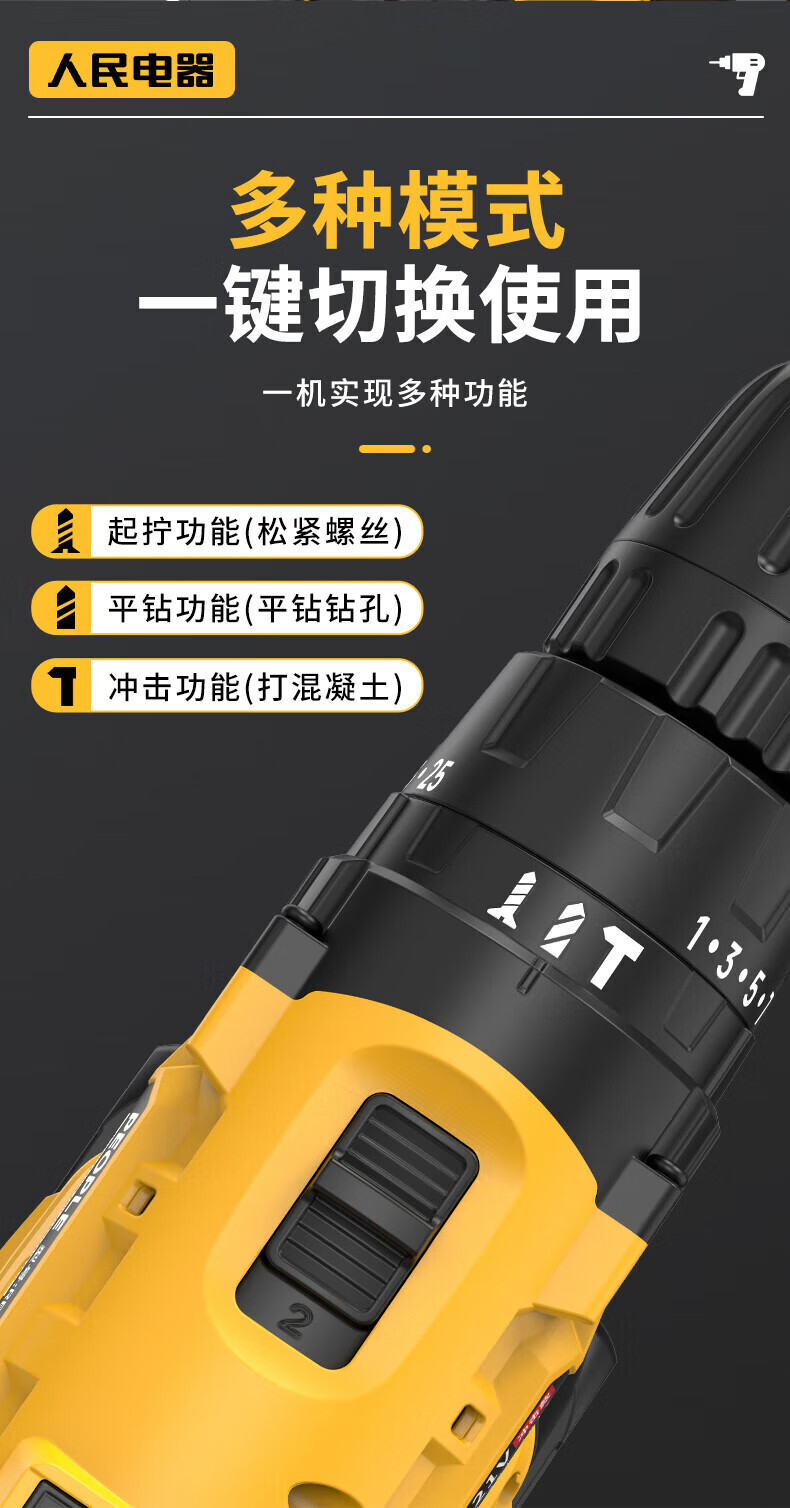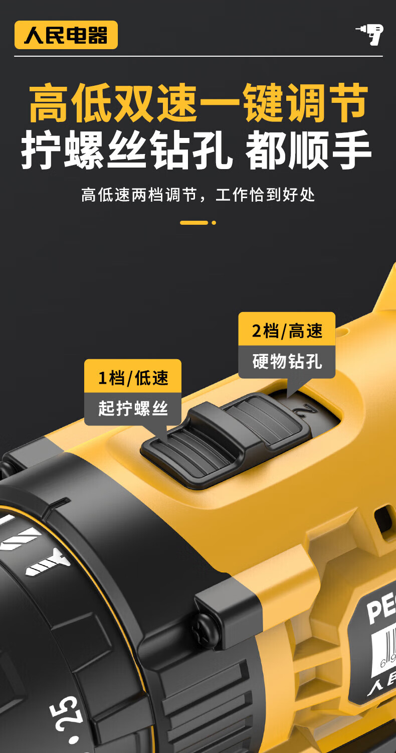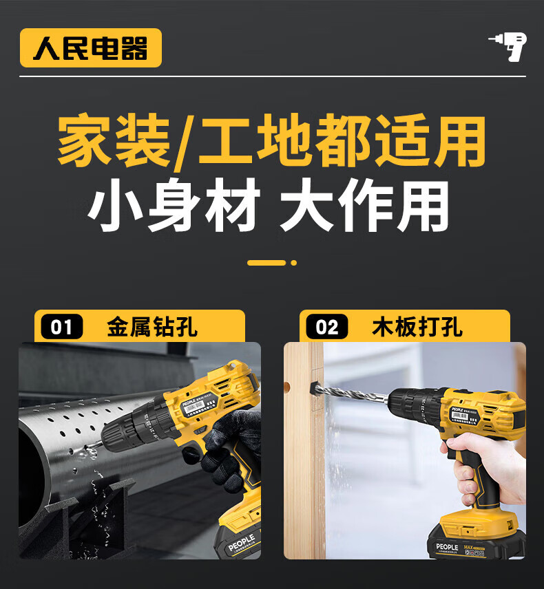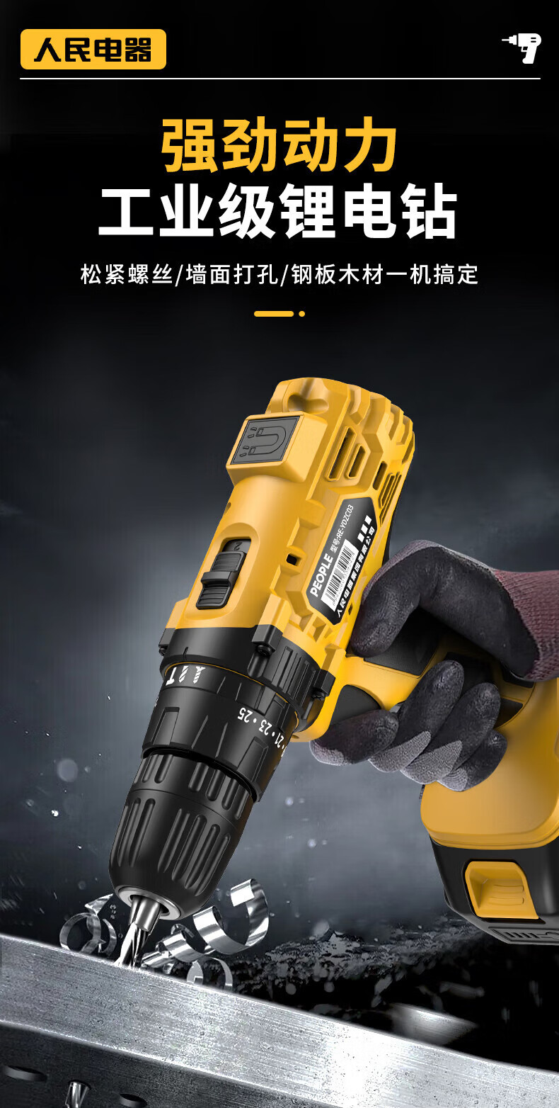 人民冲击无刷锂电钻钻墙打孔家用多功能12V/16.8V/21V充电双速手电钻 【工业级】12V-2电1充